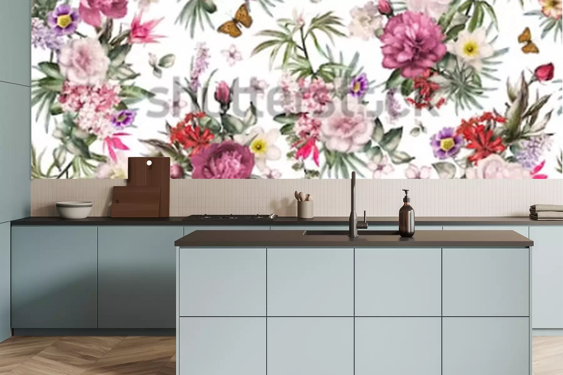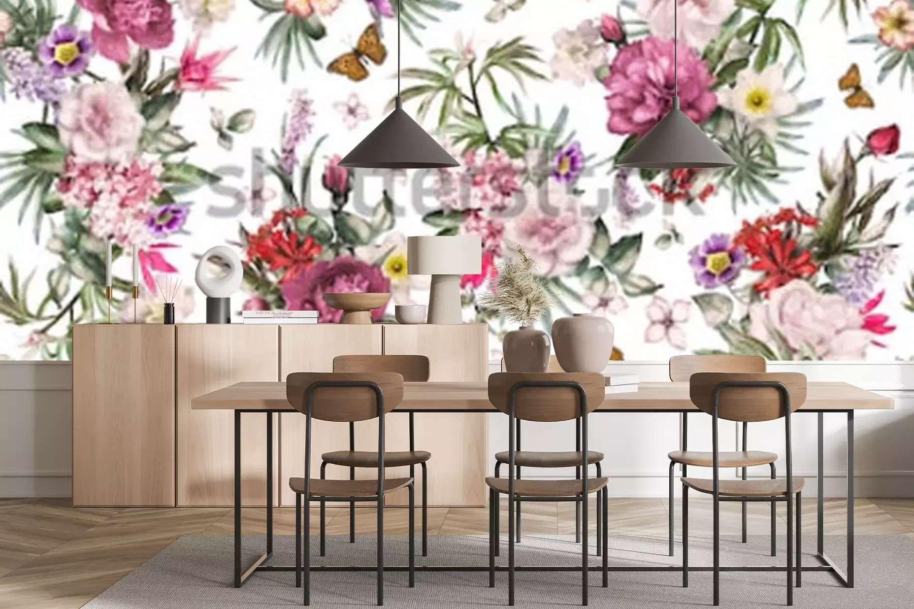 Sticker Romantische Komposition mit Blumen und Schmetterlingen