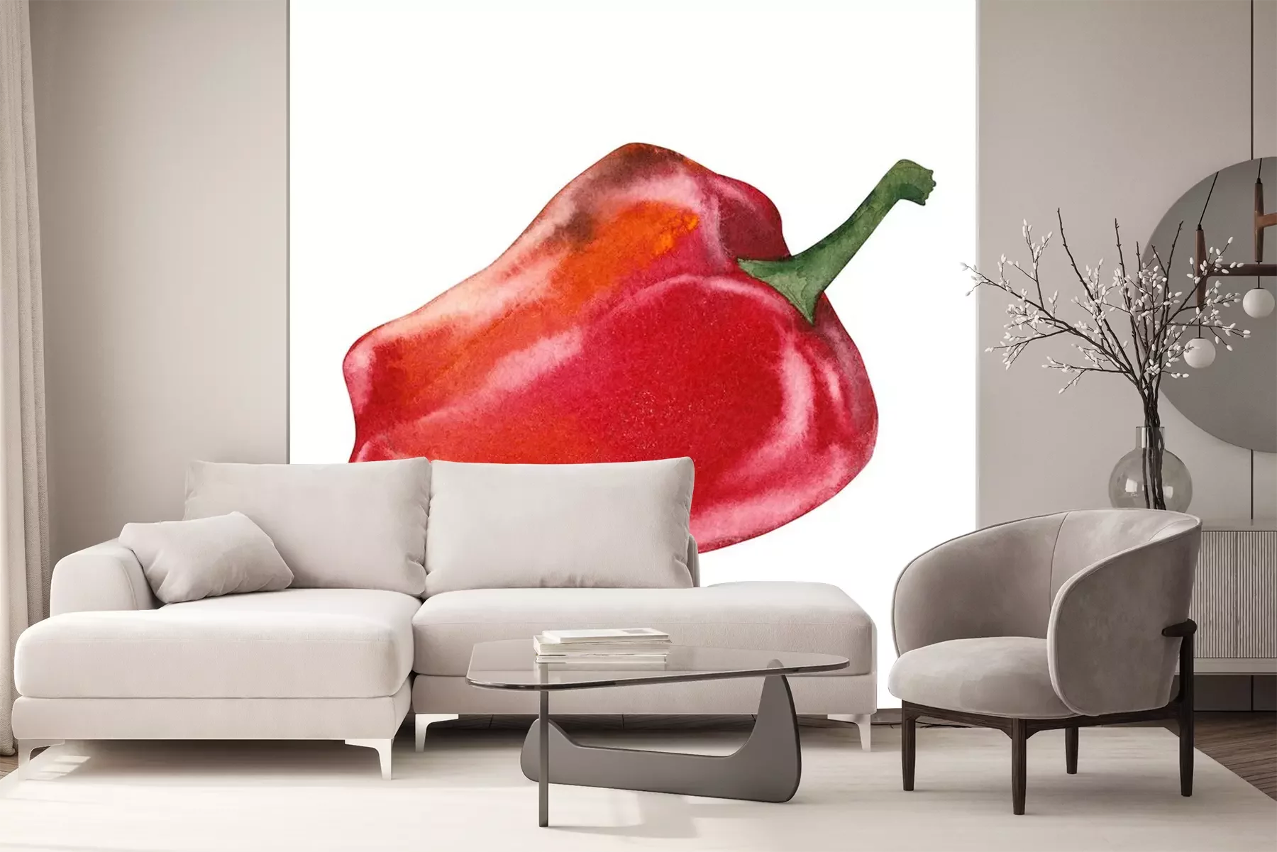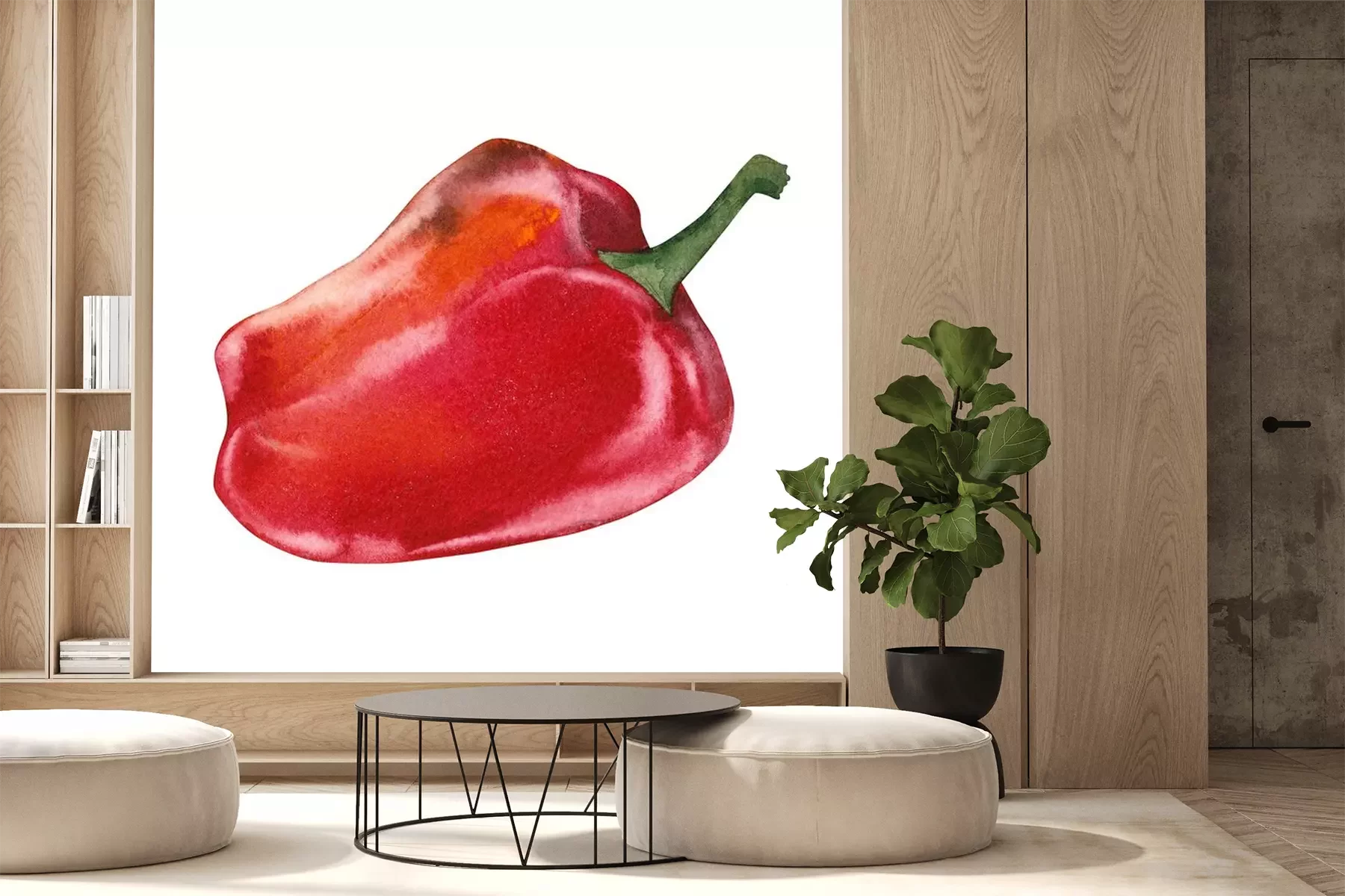 Sticker Rote Paprika mit Aquarellfarben gemalt
