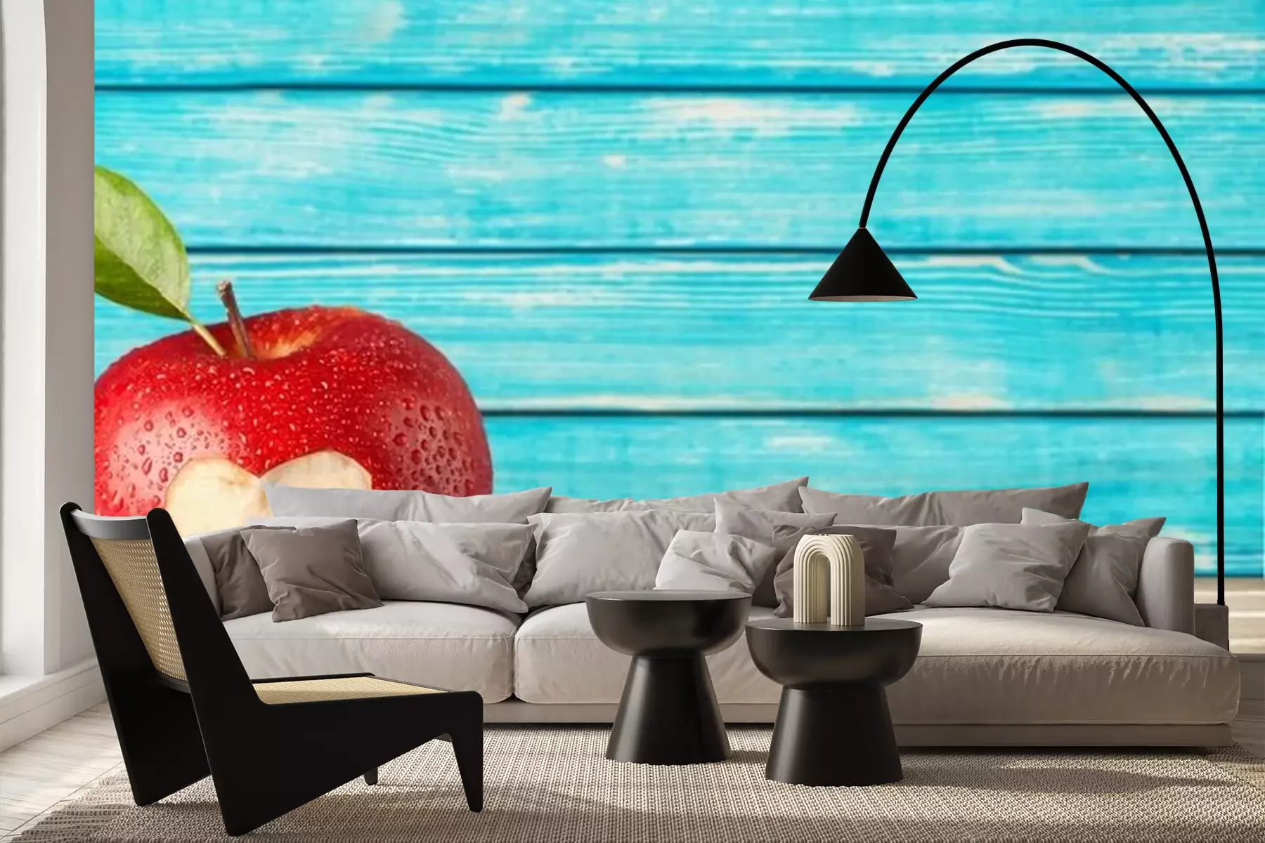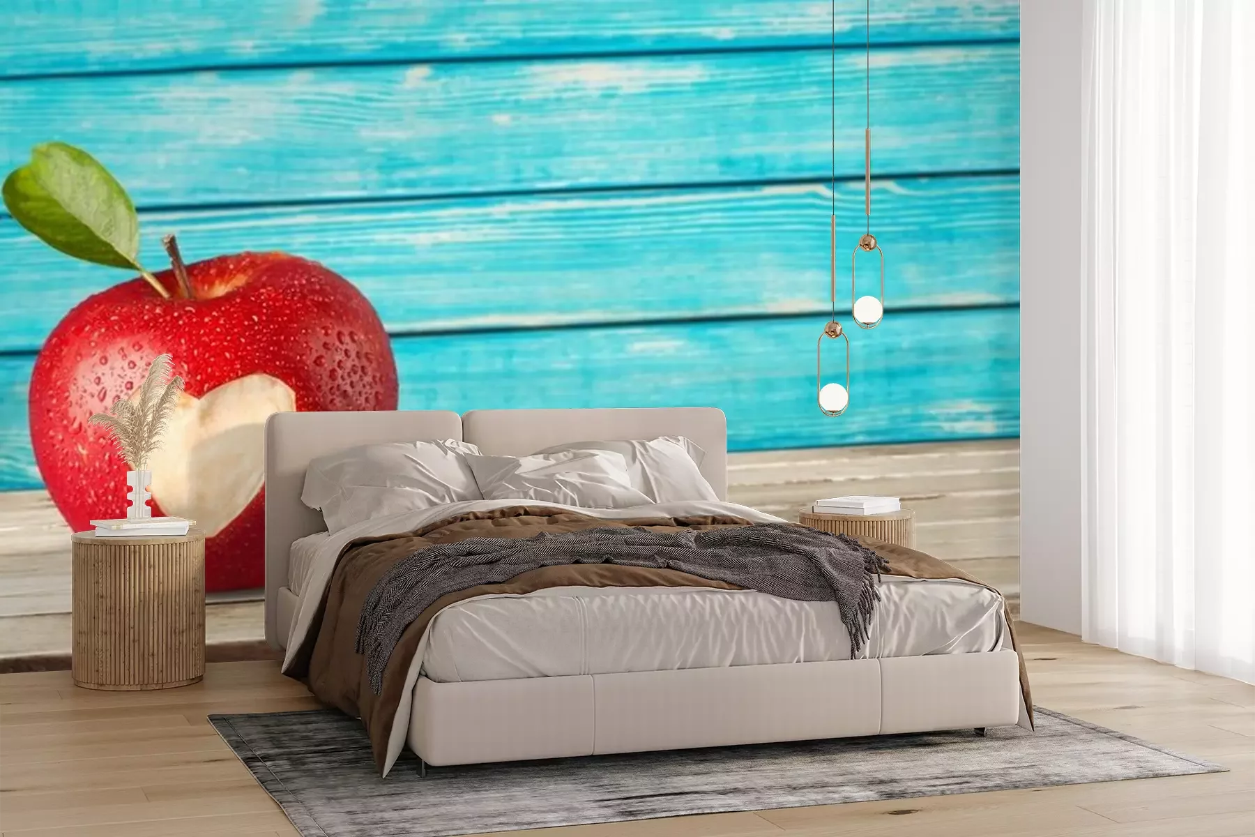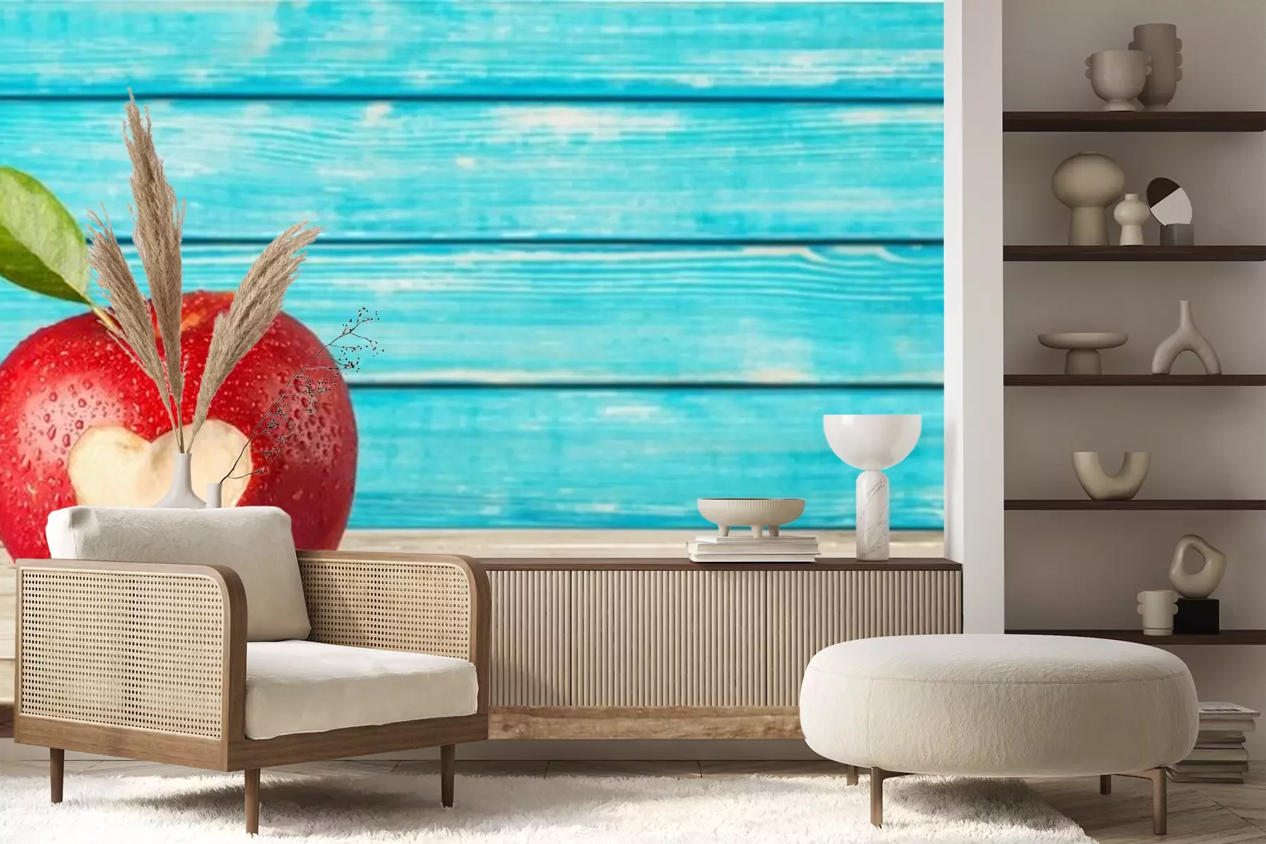 Sticker Roter Apfel mit Herz auf einem Tisch