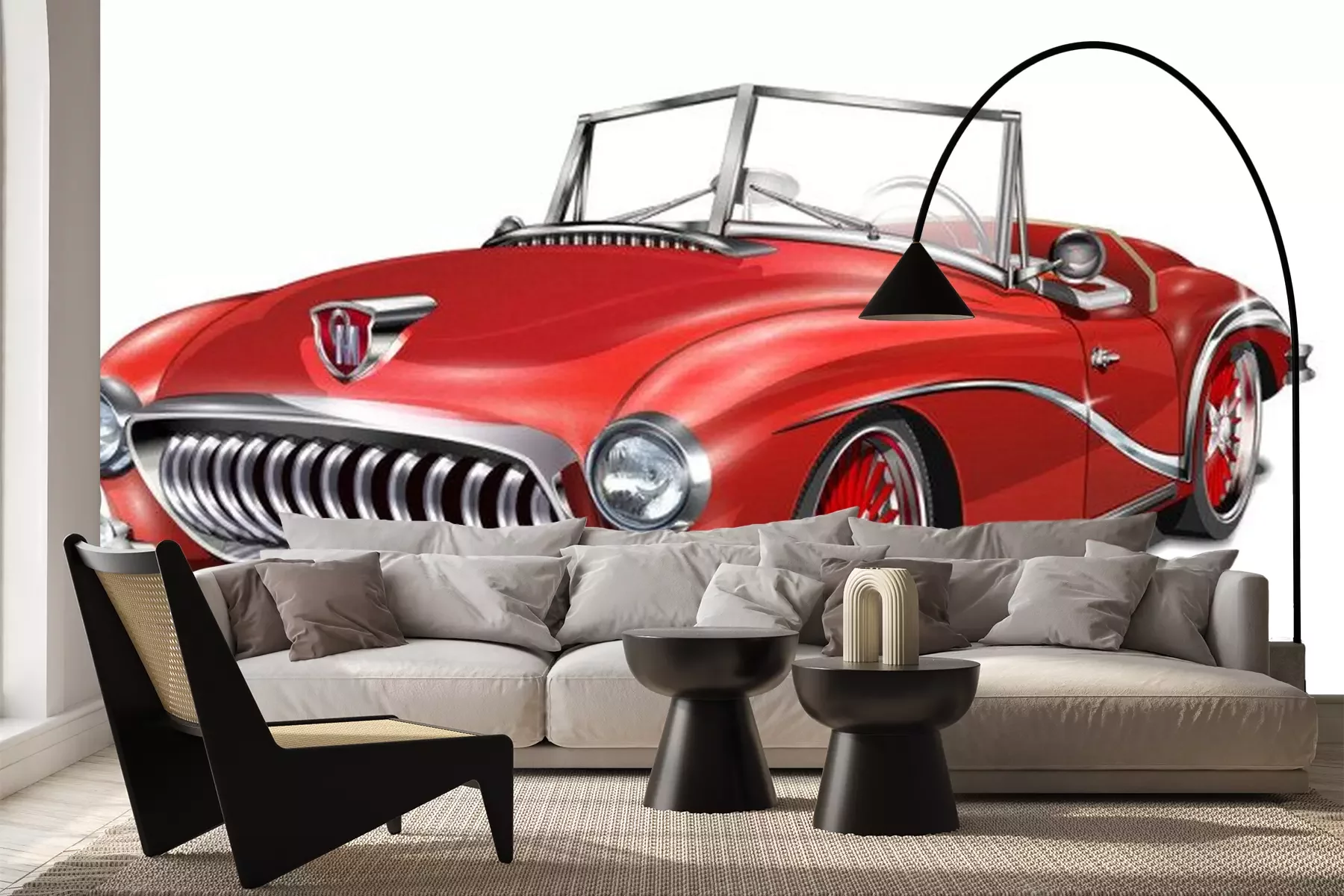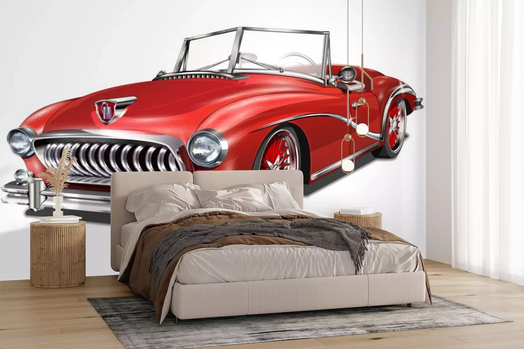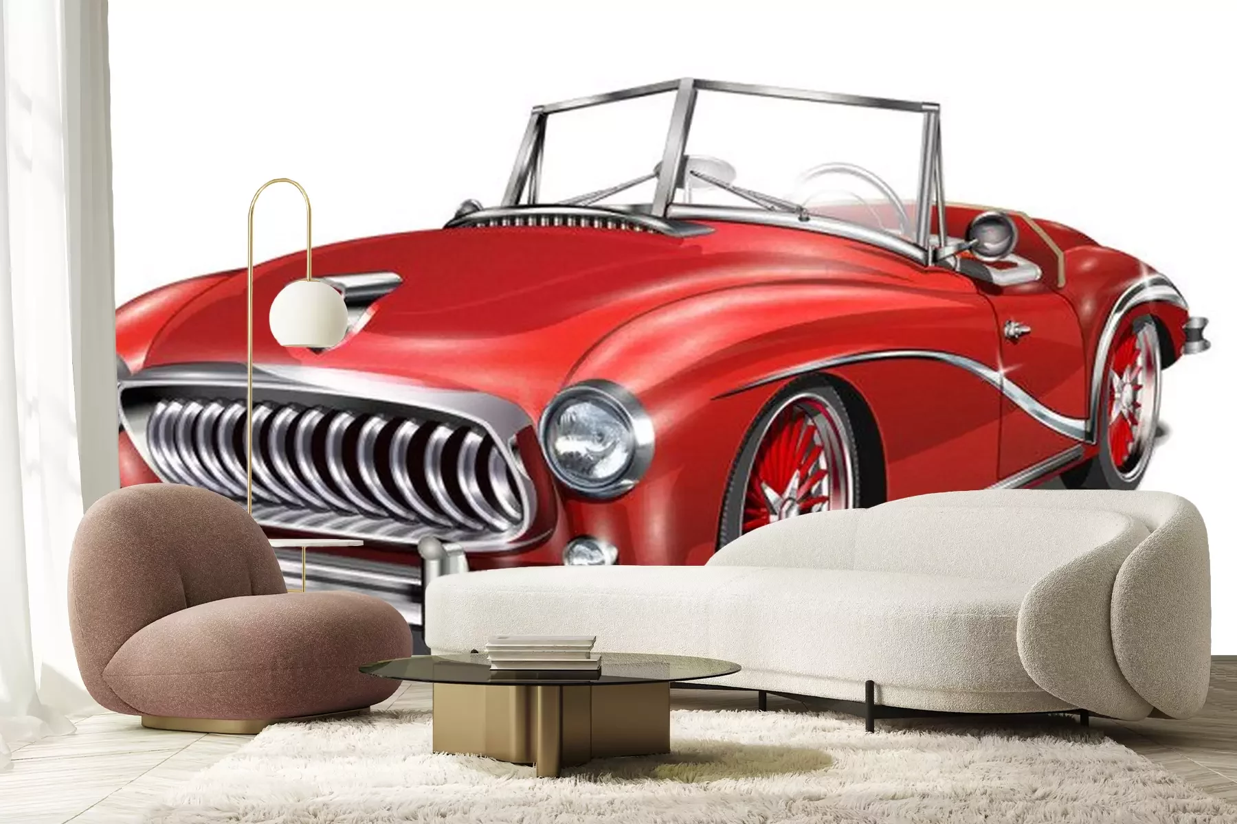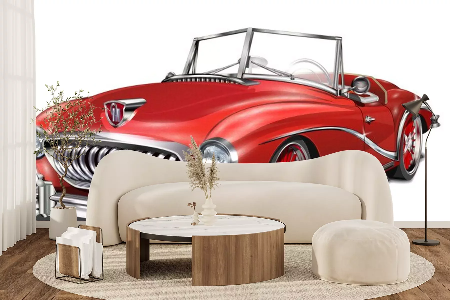 Sticker Rotes Cabrio Retro auf weißem Hintergrund