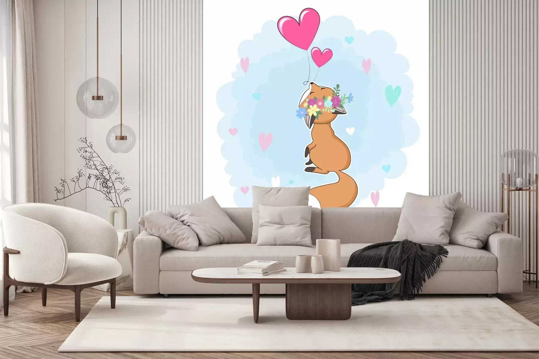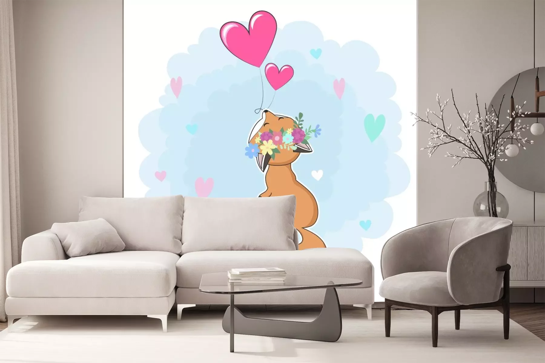 Rotfuchs umgeben von rosa HerzenProblemlose Lieferung durch vertrauenswürdige Spediteure