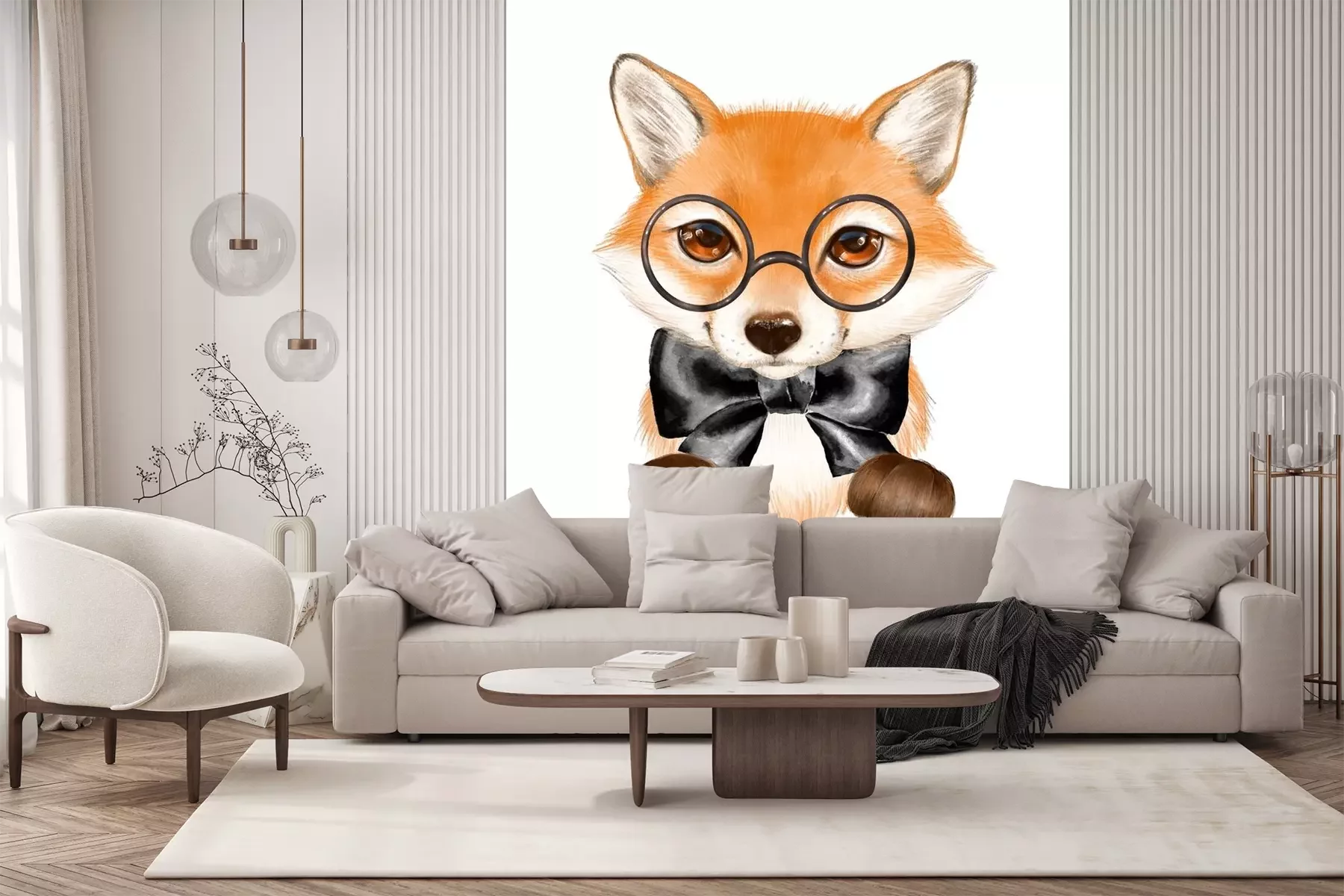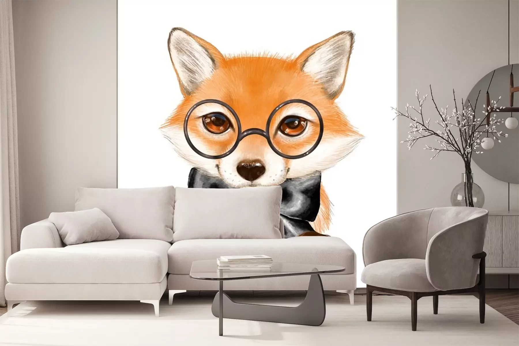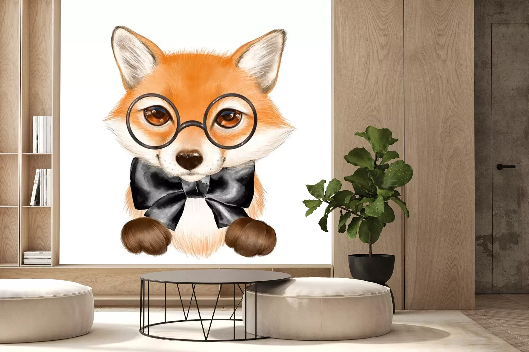 Sticker Rotfuchs mit schwarzer Brille und schwarzer Fliege