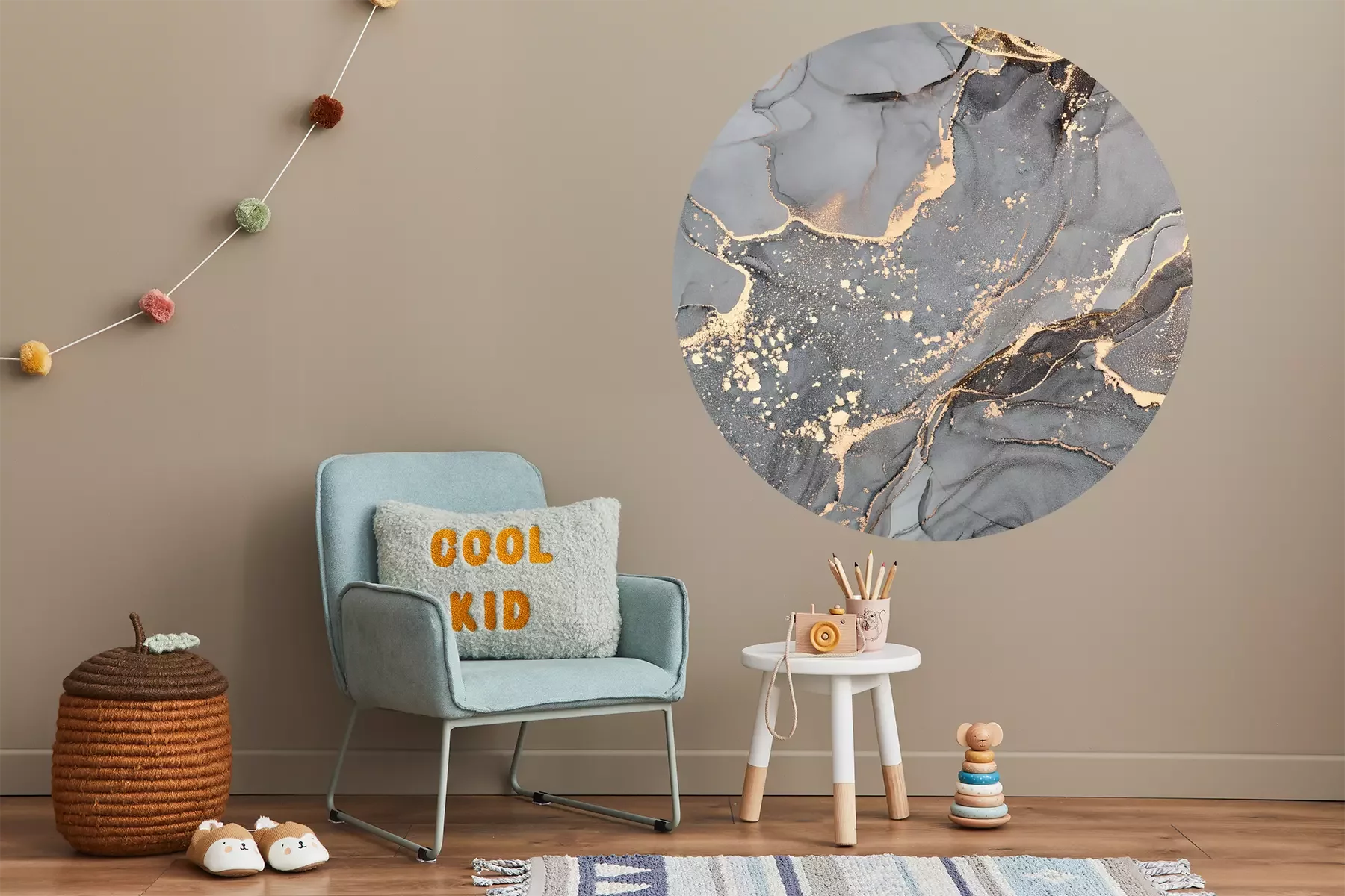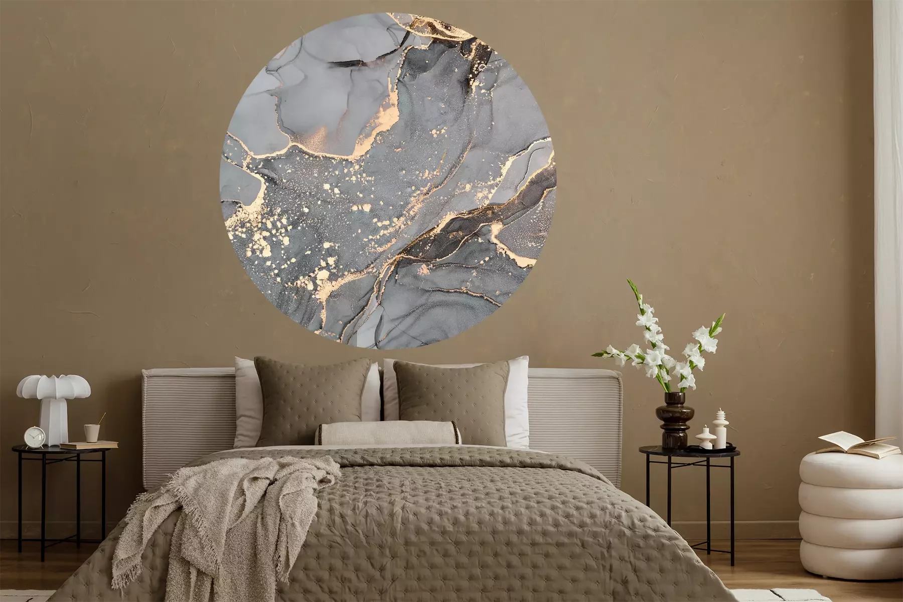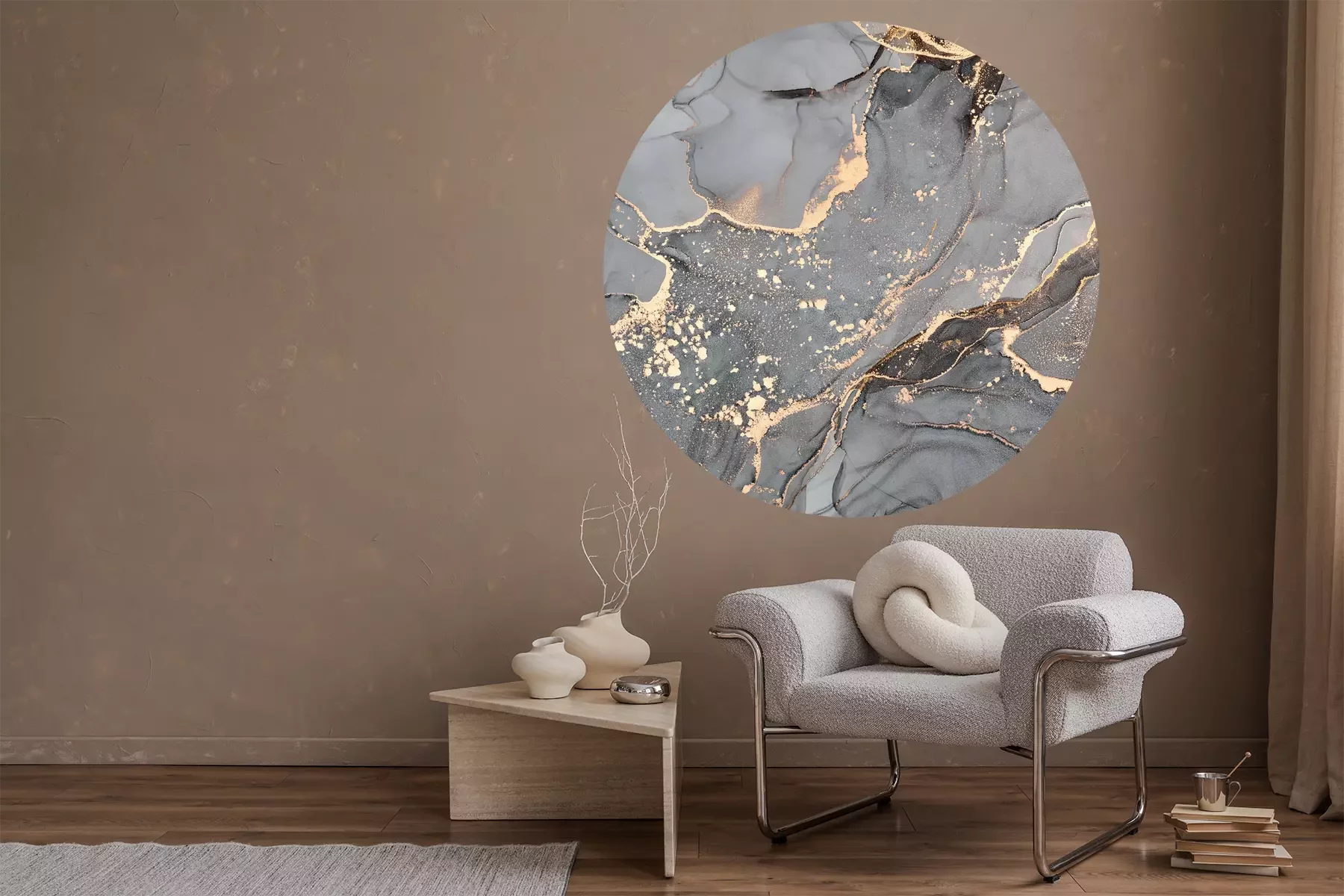 Runder goldgrauer marmor