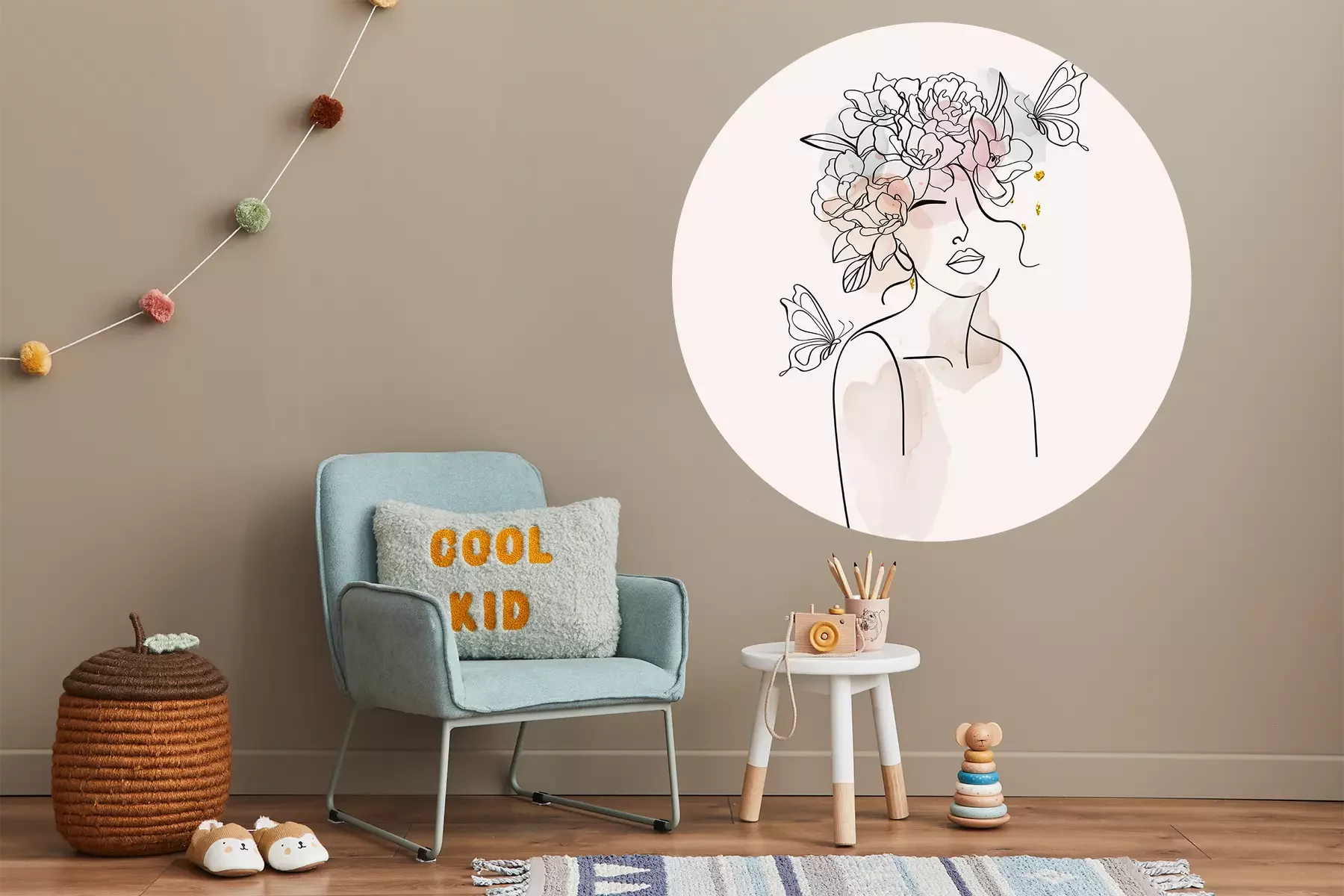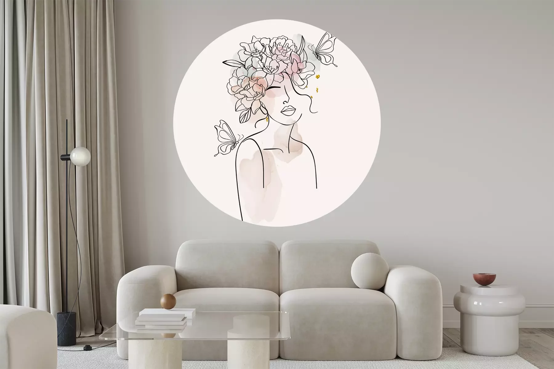 Rundes frauenporträt line art