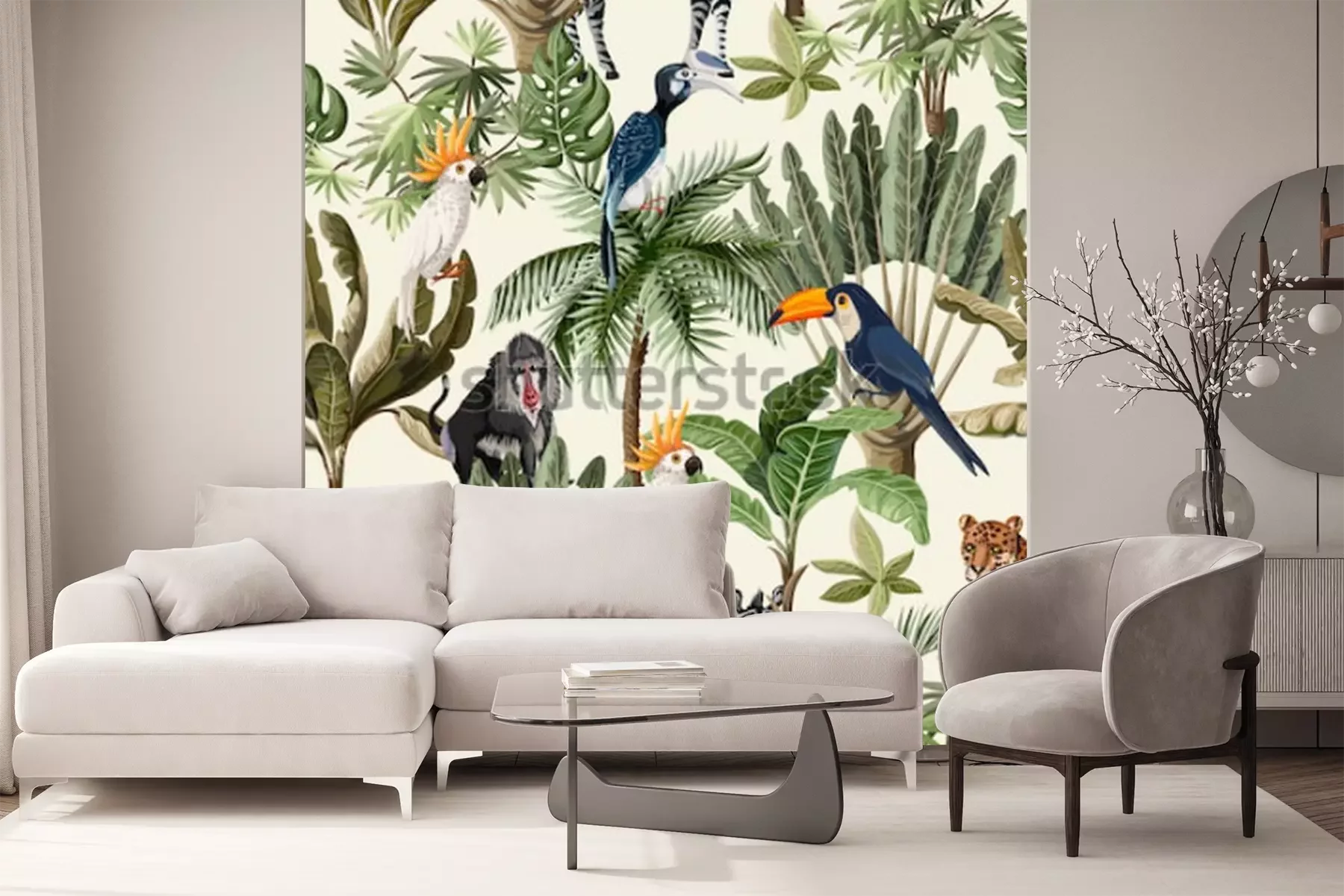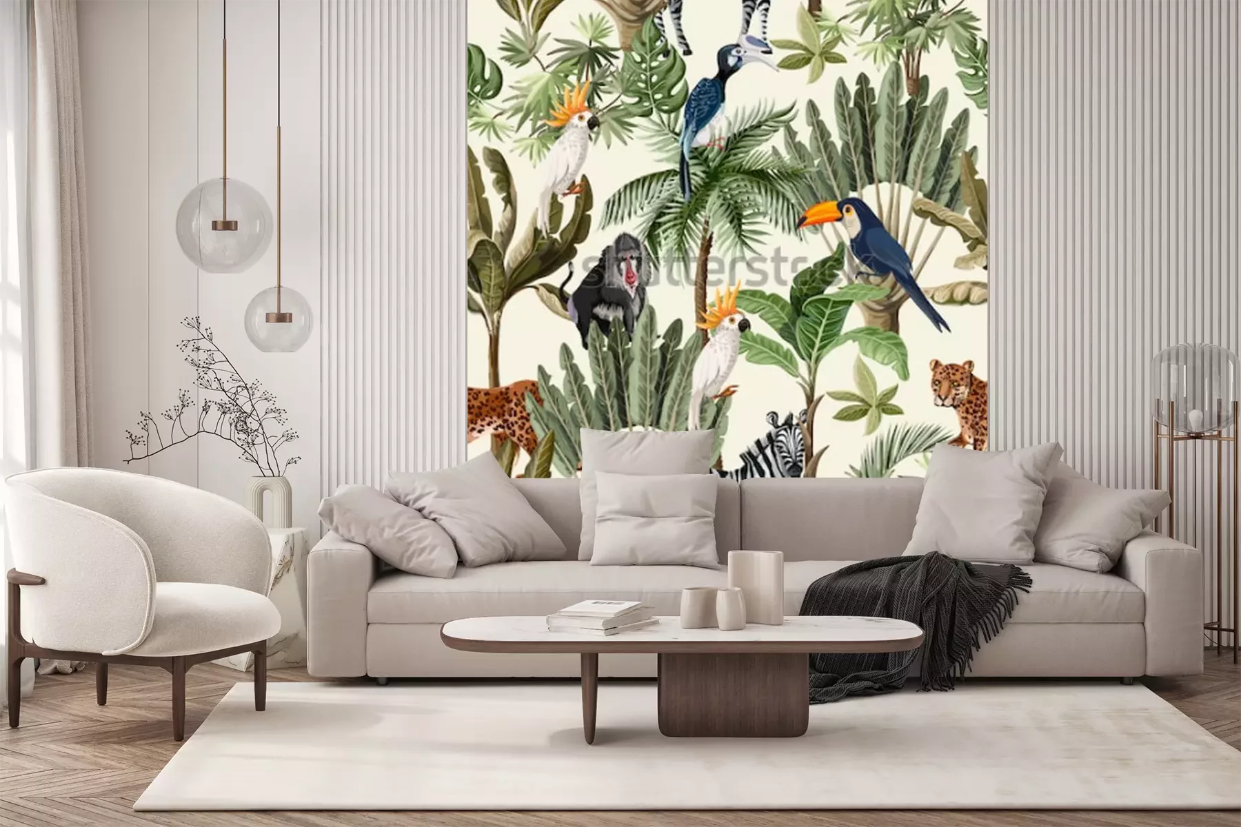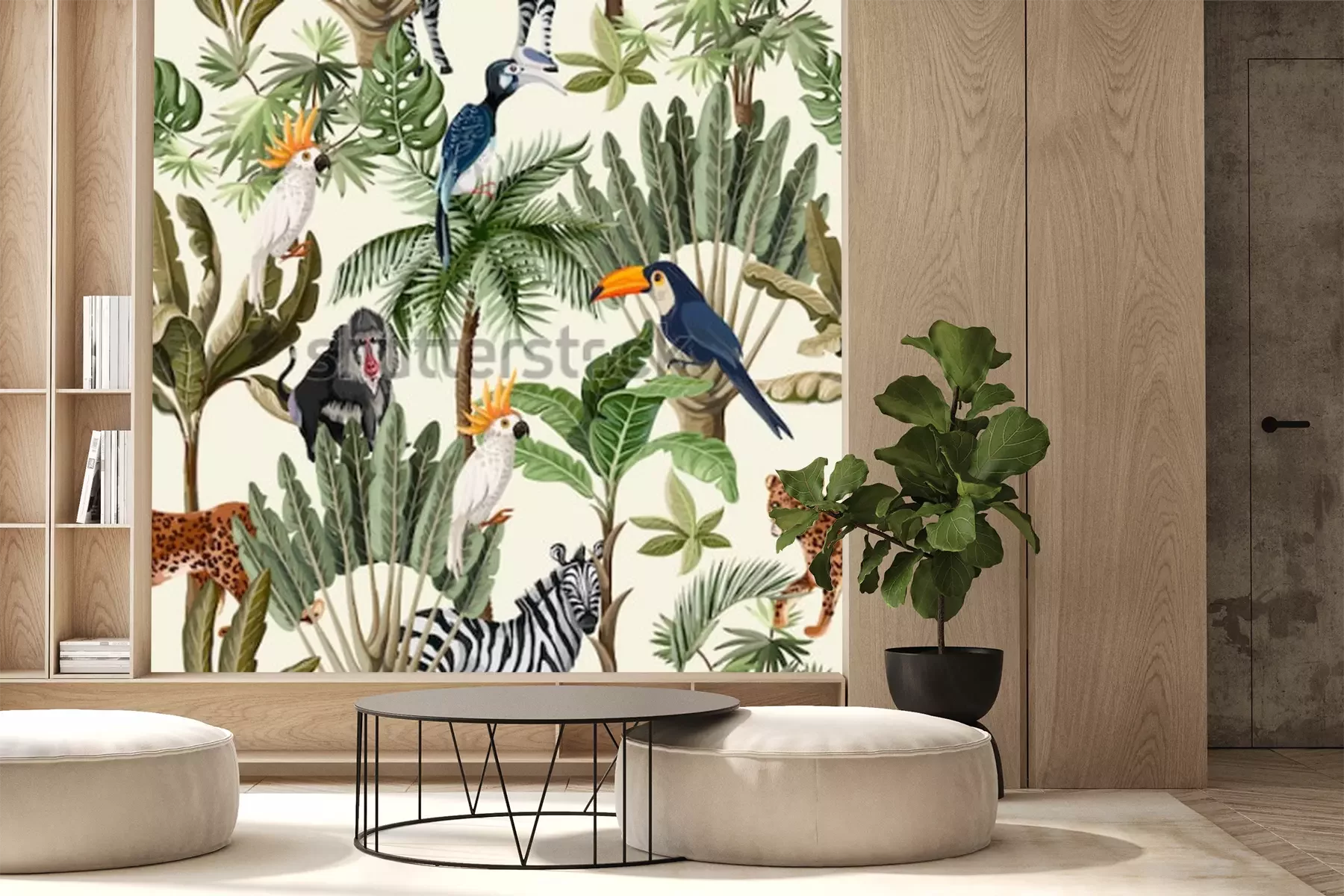 Sticker Safari-Tiere inmitten von exotischen Pflanzen