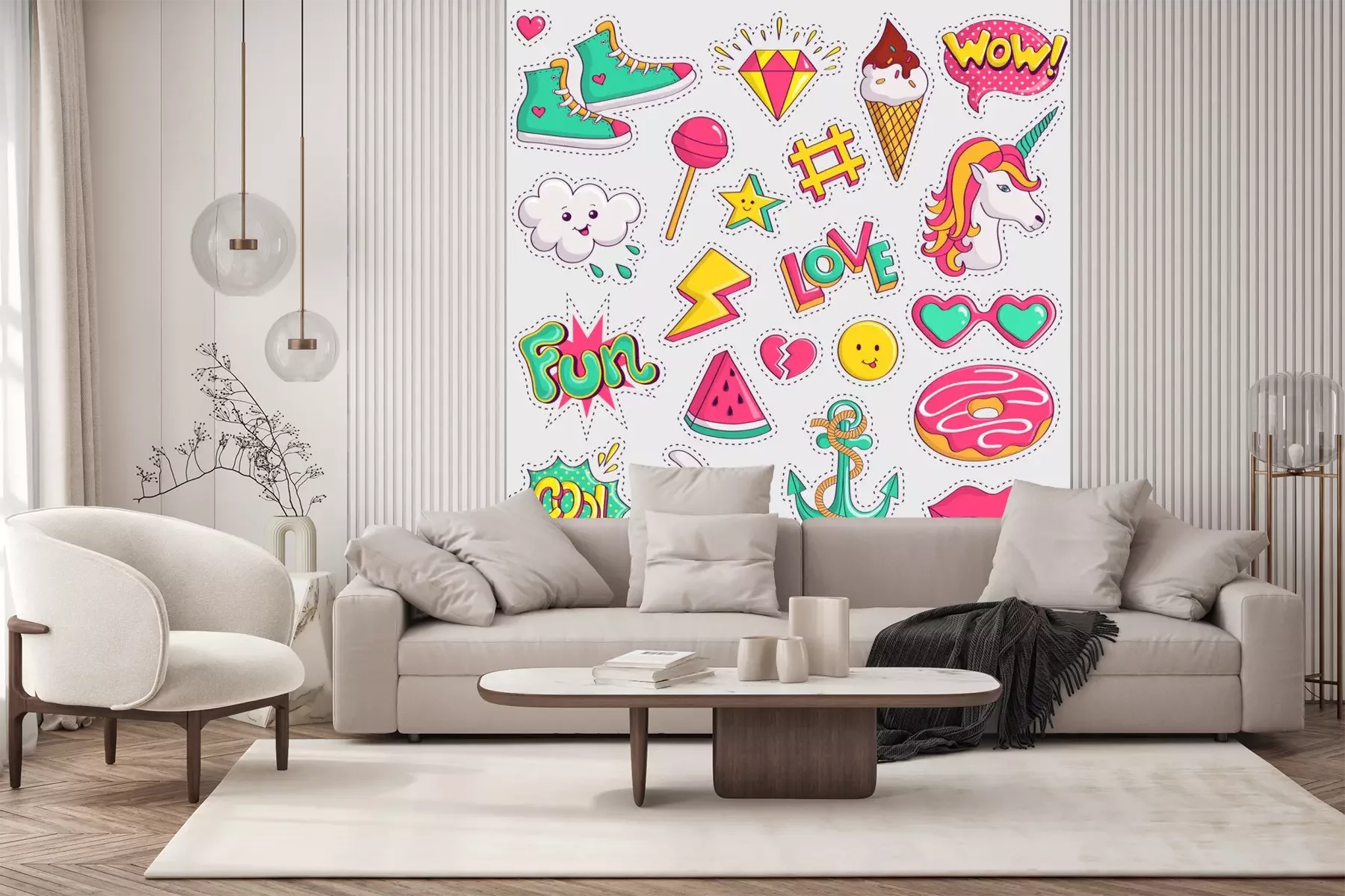 Sticker Sammlung von fröhlichen Jugendgrafiken