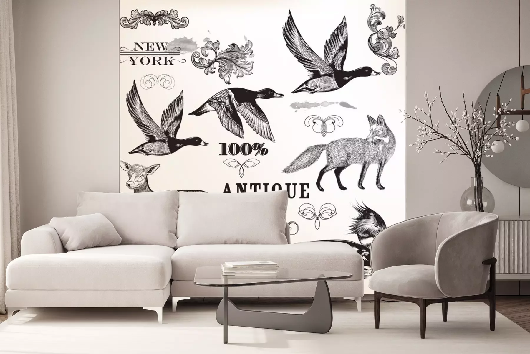 Sticker Sammlung von Vektor Hand gezeichnete Tiere und Schnörkel