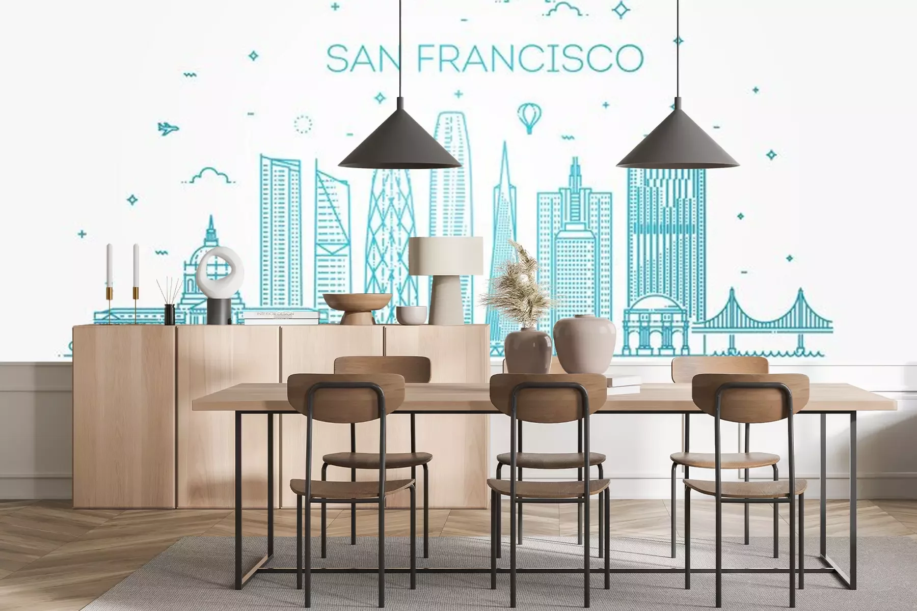 Sticker San Francisco Stadt Skyline Vektor Hintergrund