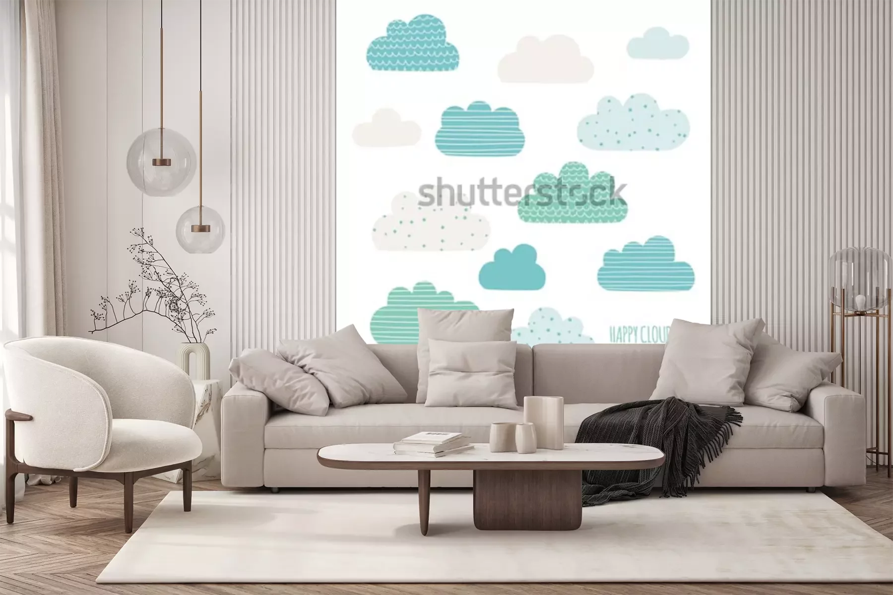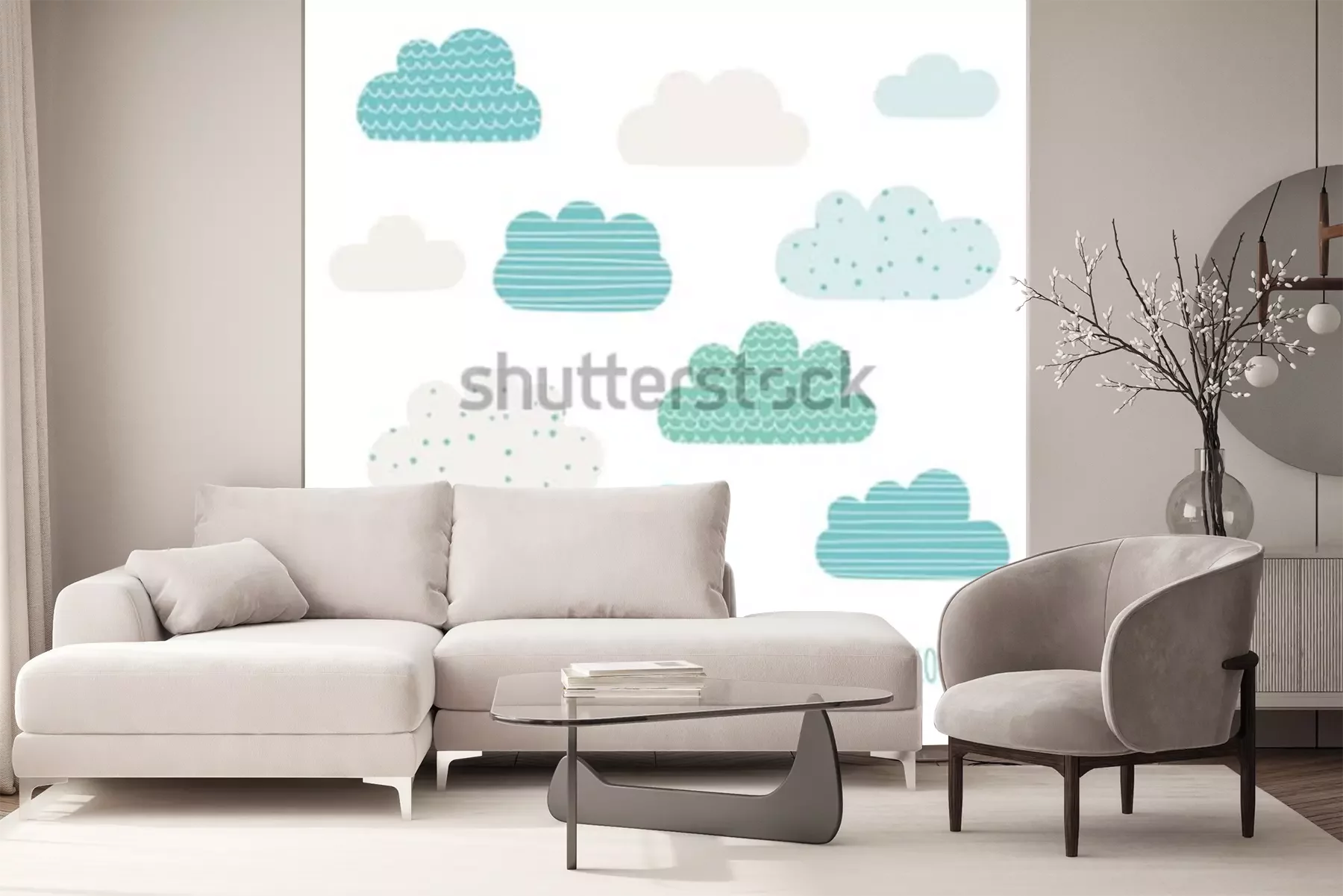 Sticker Satz niedliche Wolken. Design für Kinder. Vektorillustration