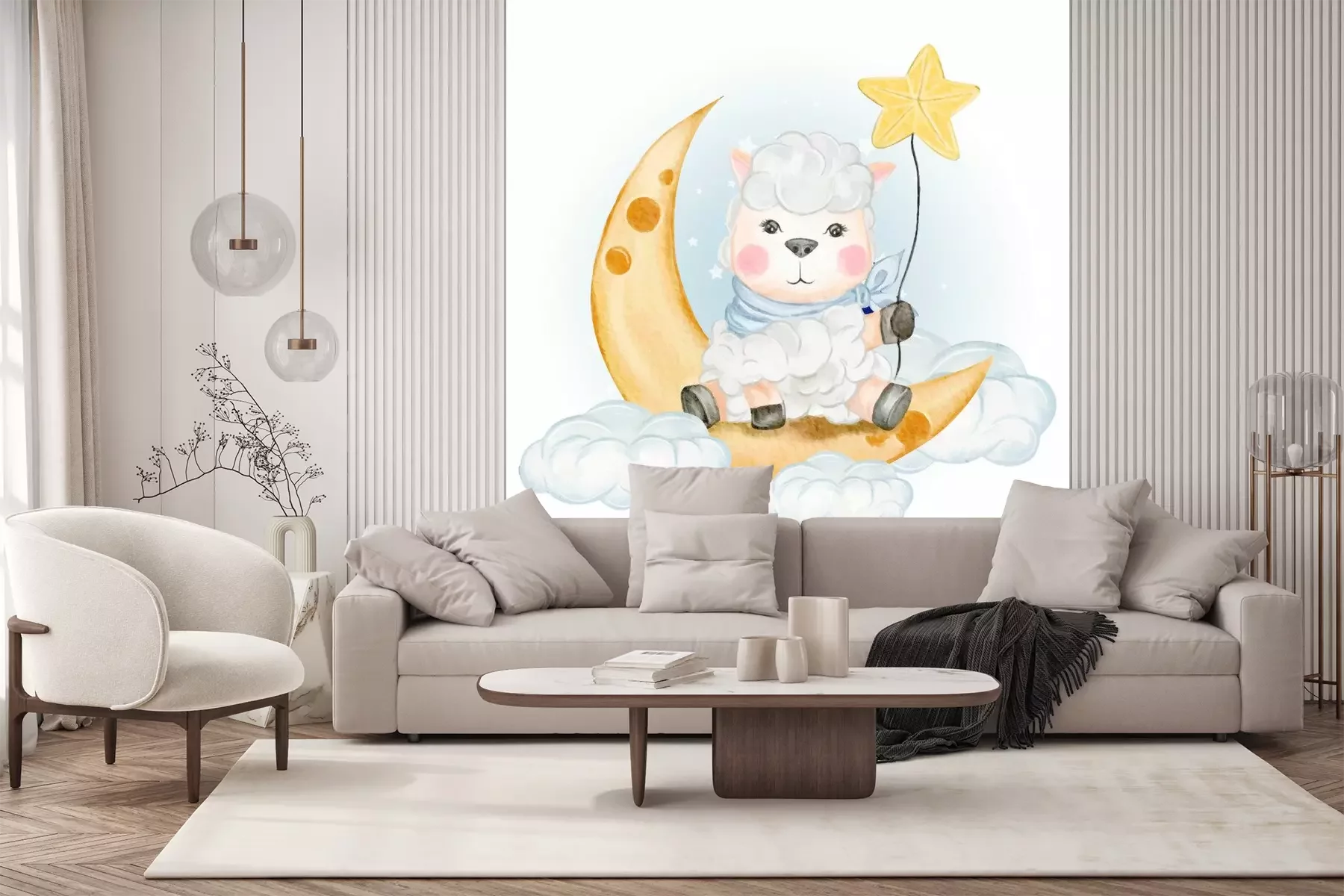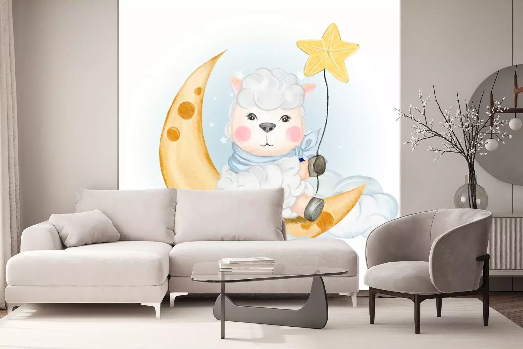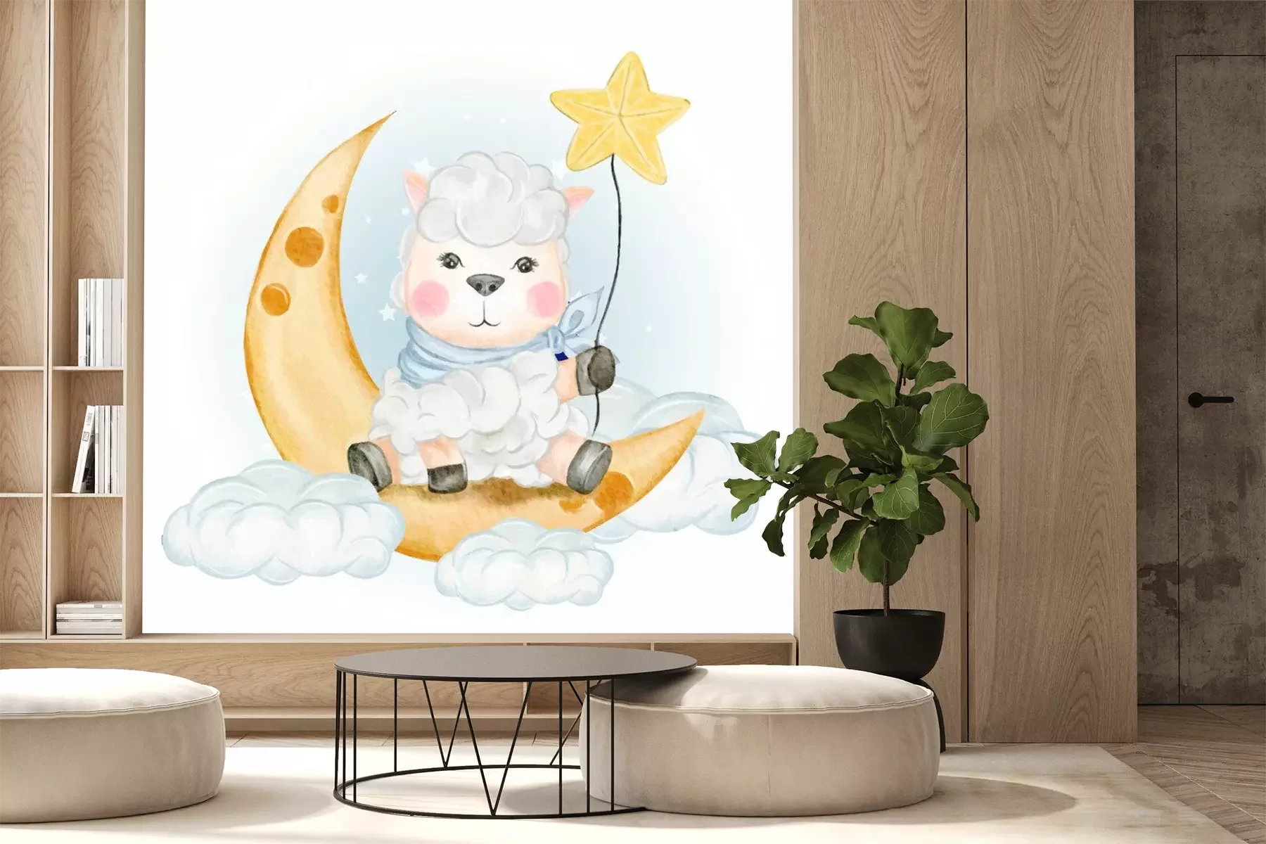 Sticker Schafe auf dem Mond inmitten von flauschigen Wolken