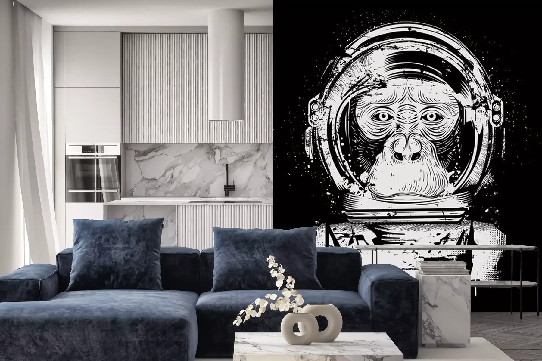 Sticker Schimpanse mit Astronautenhelm Grafik