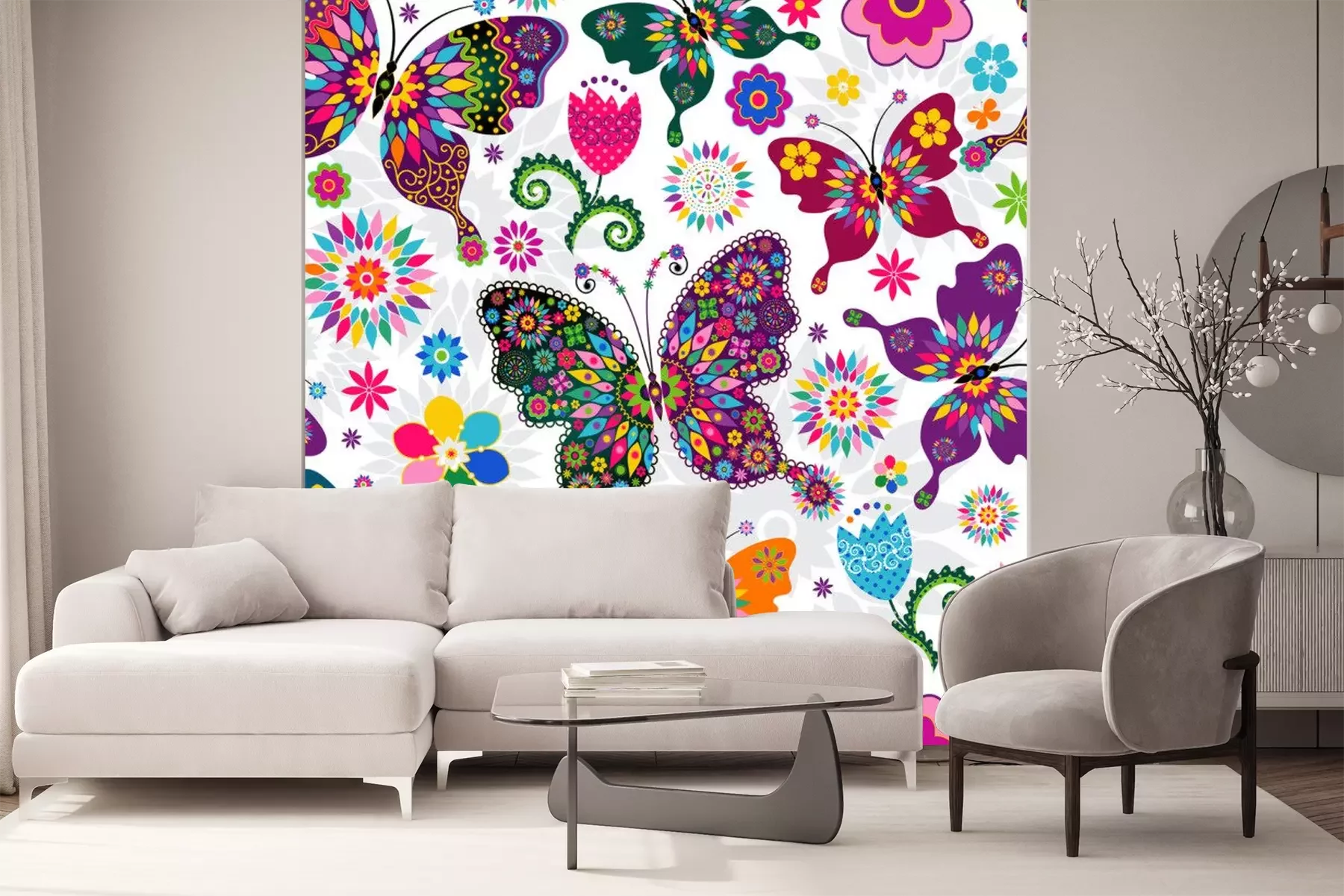 Sticker Schmetterlinge für ein Mädchen mit Blumen