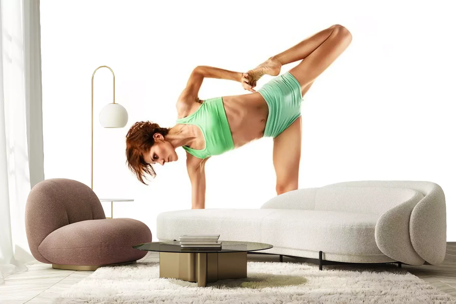 Sticker Schöne junge Mädchen, die in Yoga, Gymnastik, Fitness