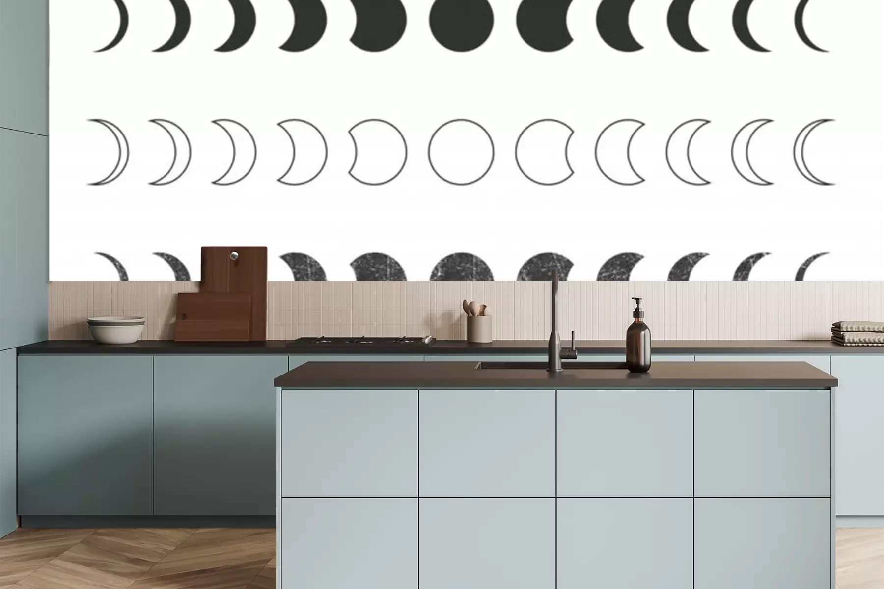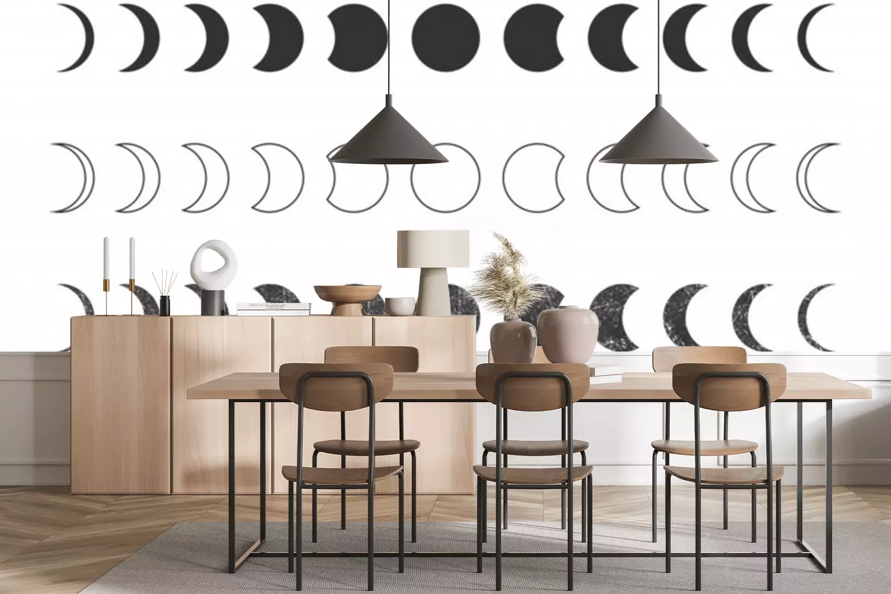 Sticker Schwarz-Weiß-Grafiken, die die Mondphasen darstellen