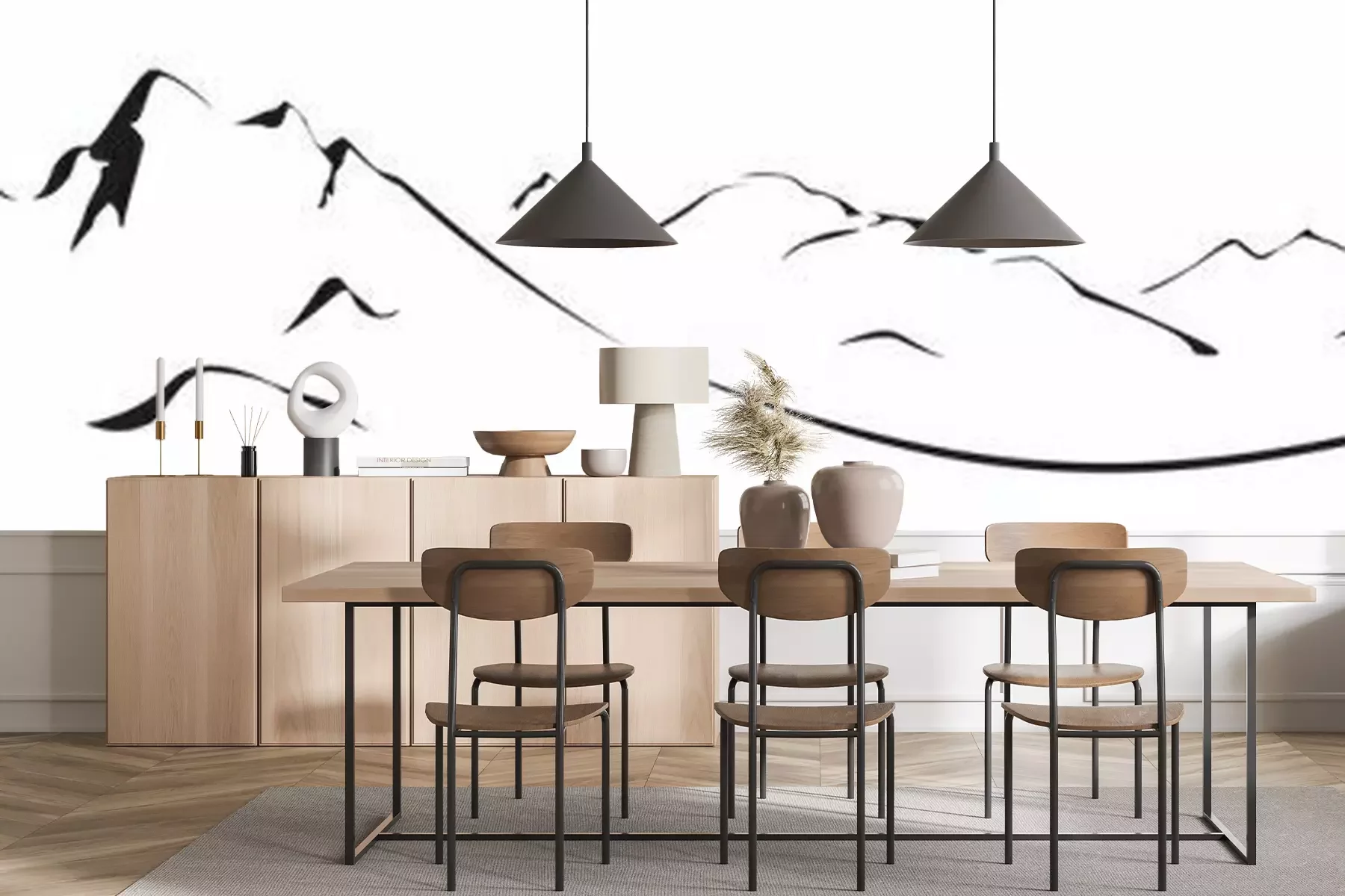 Sticker Schwarz-Weiß-Zeichnung minimalistische Berglandschaft