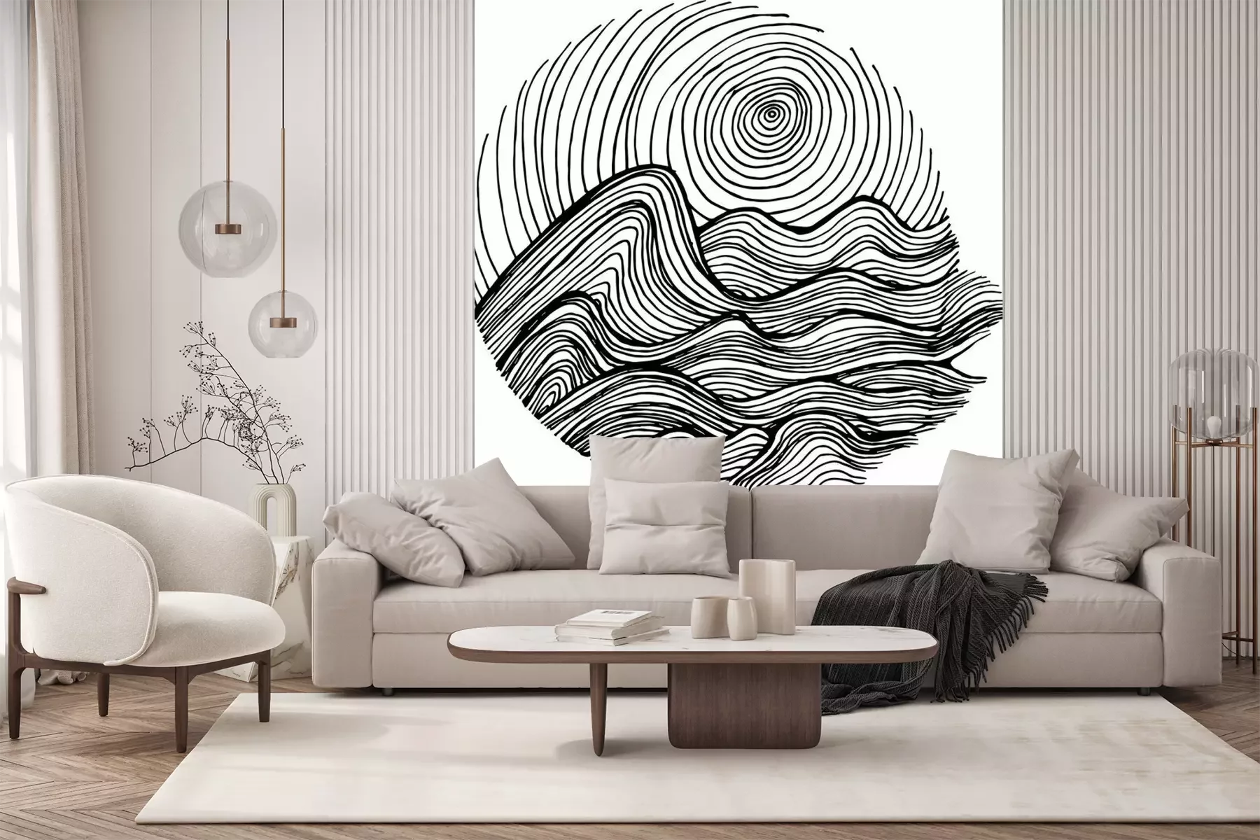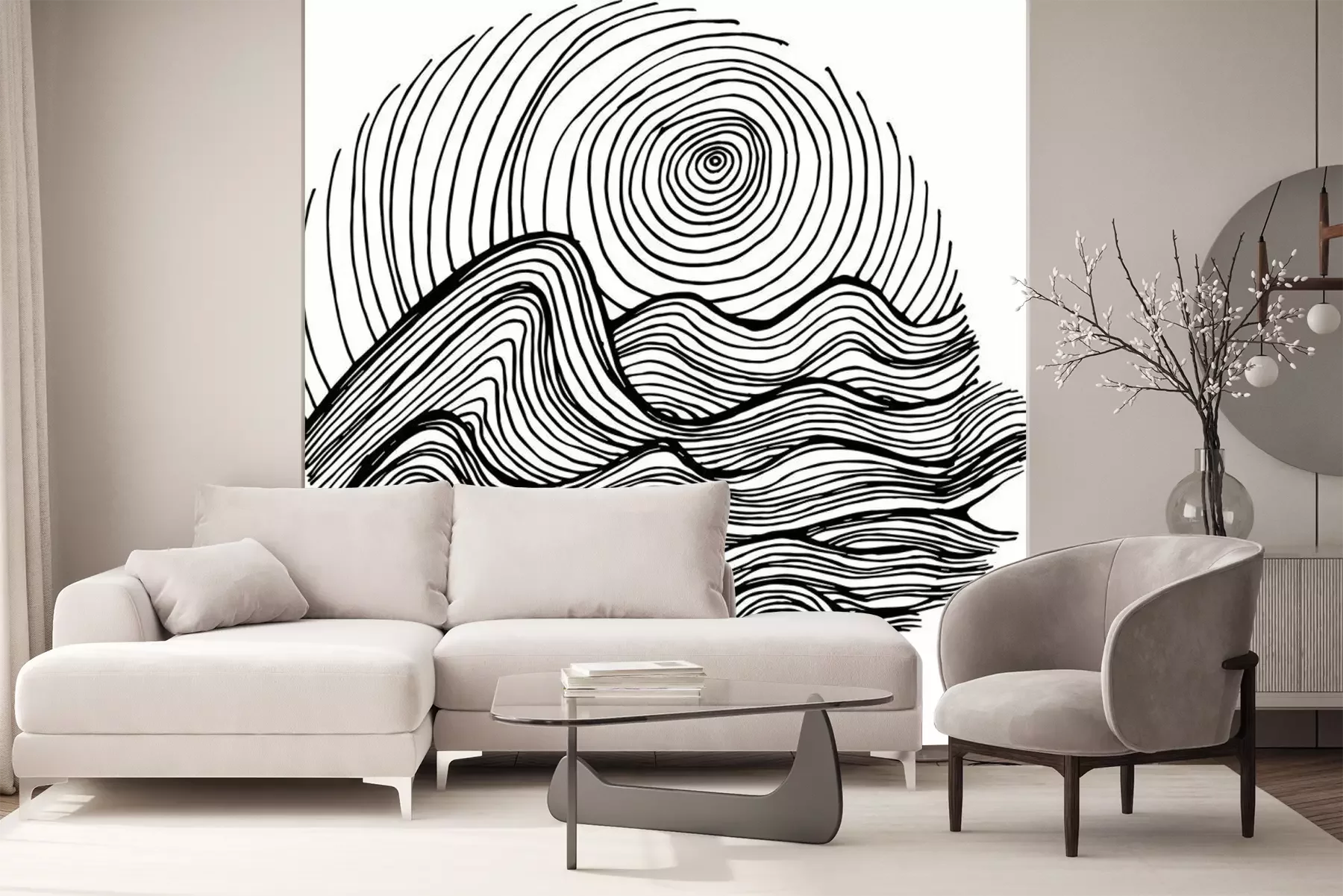 Sticker Schwarz-Weiß-Zeichnung raue Meereswellen