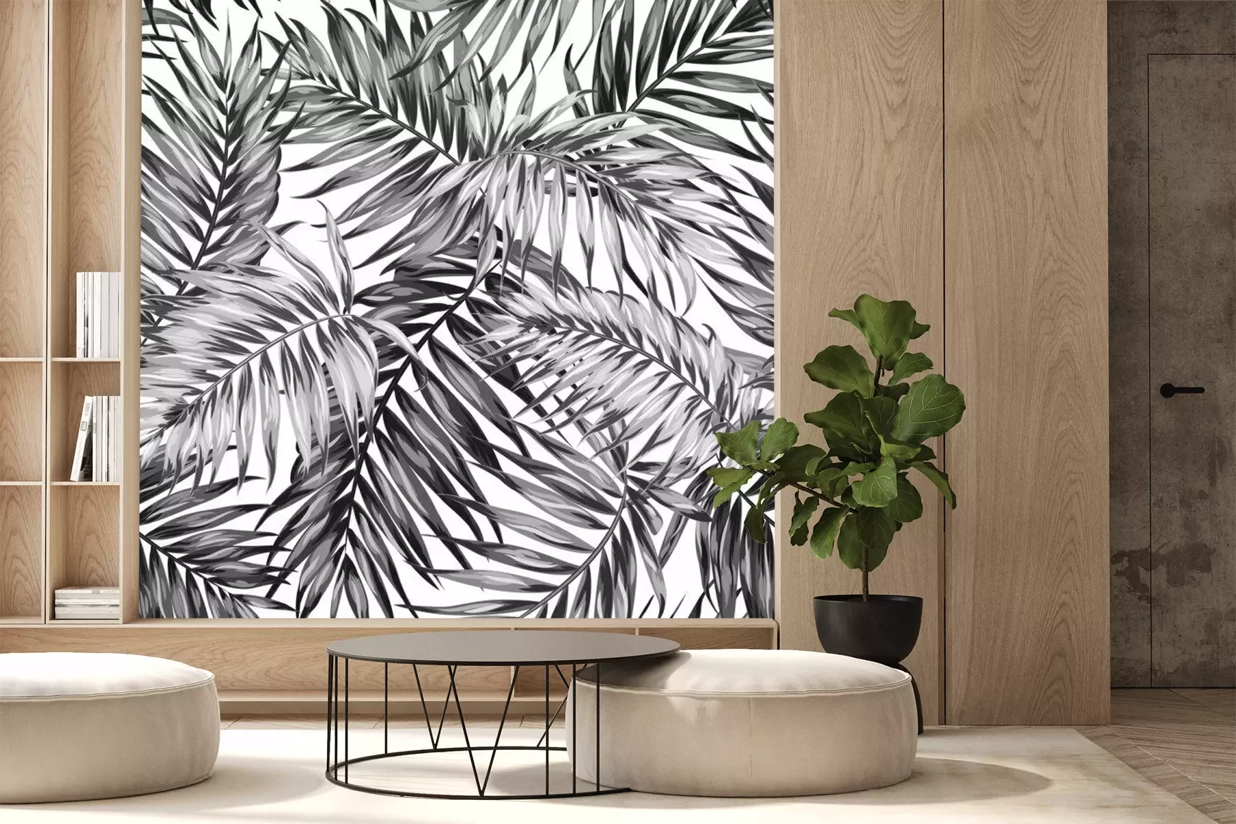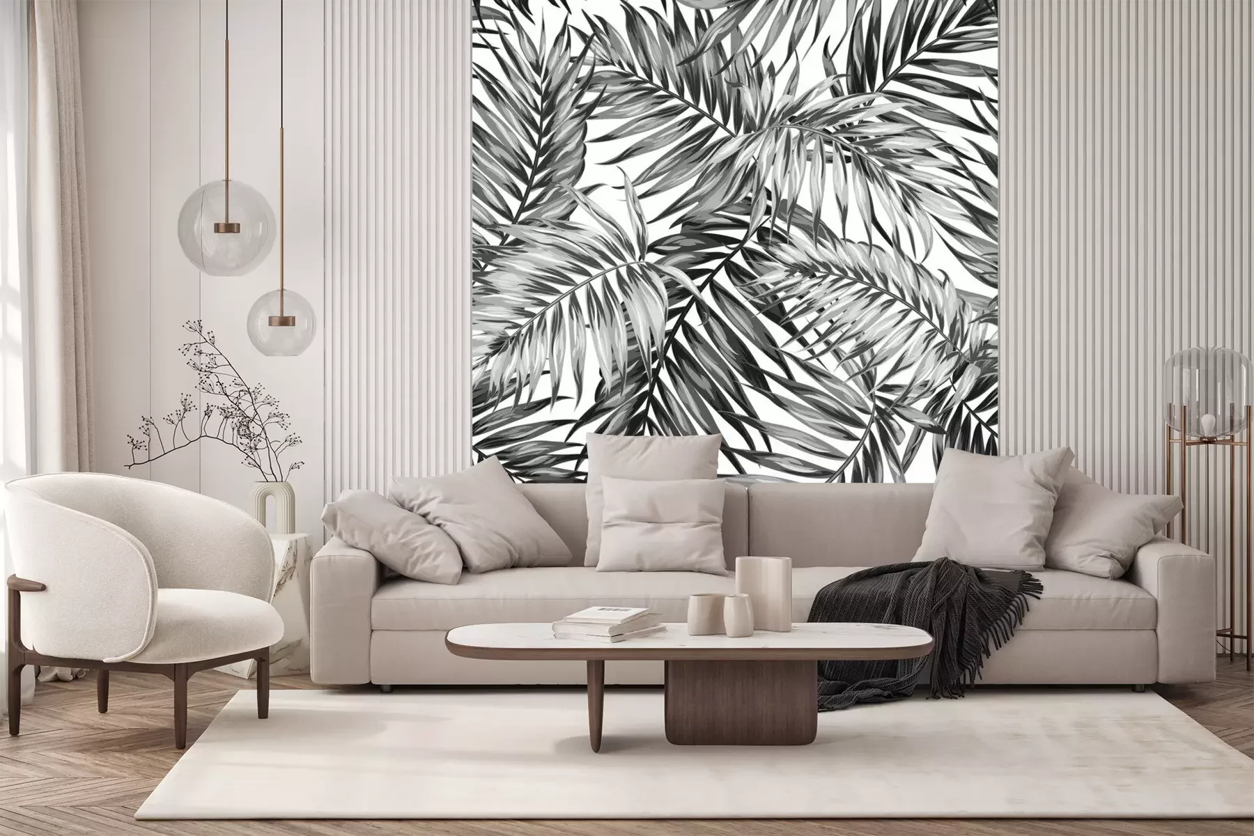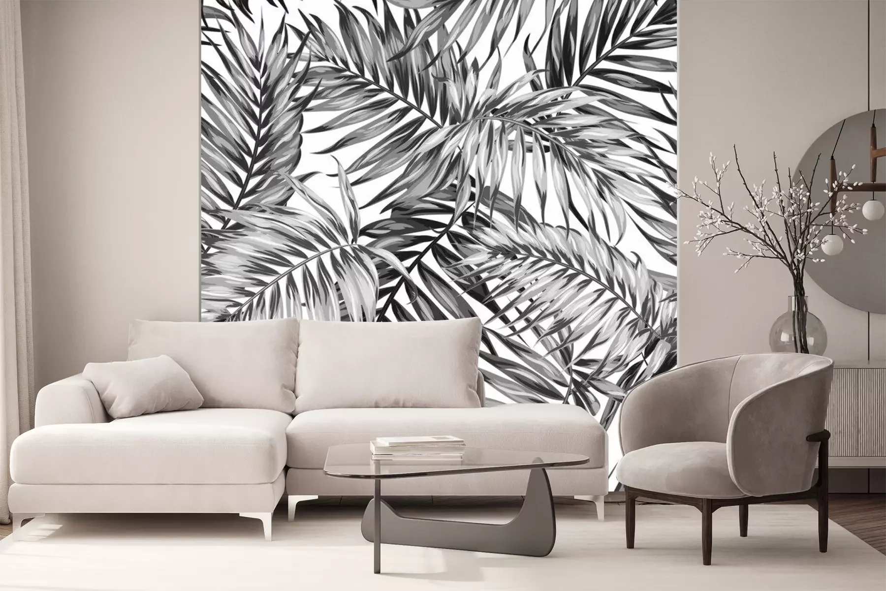Sticker Schwarz-Weiß-Zeichnung von Palmenblättern