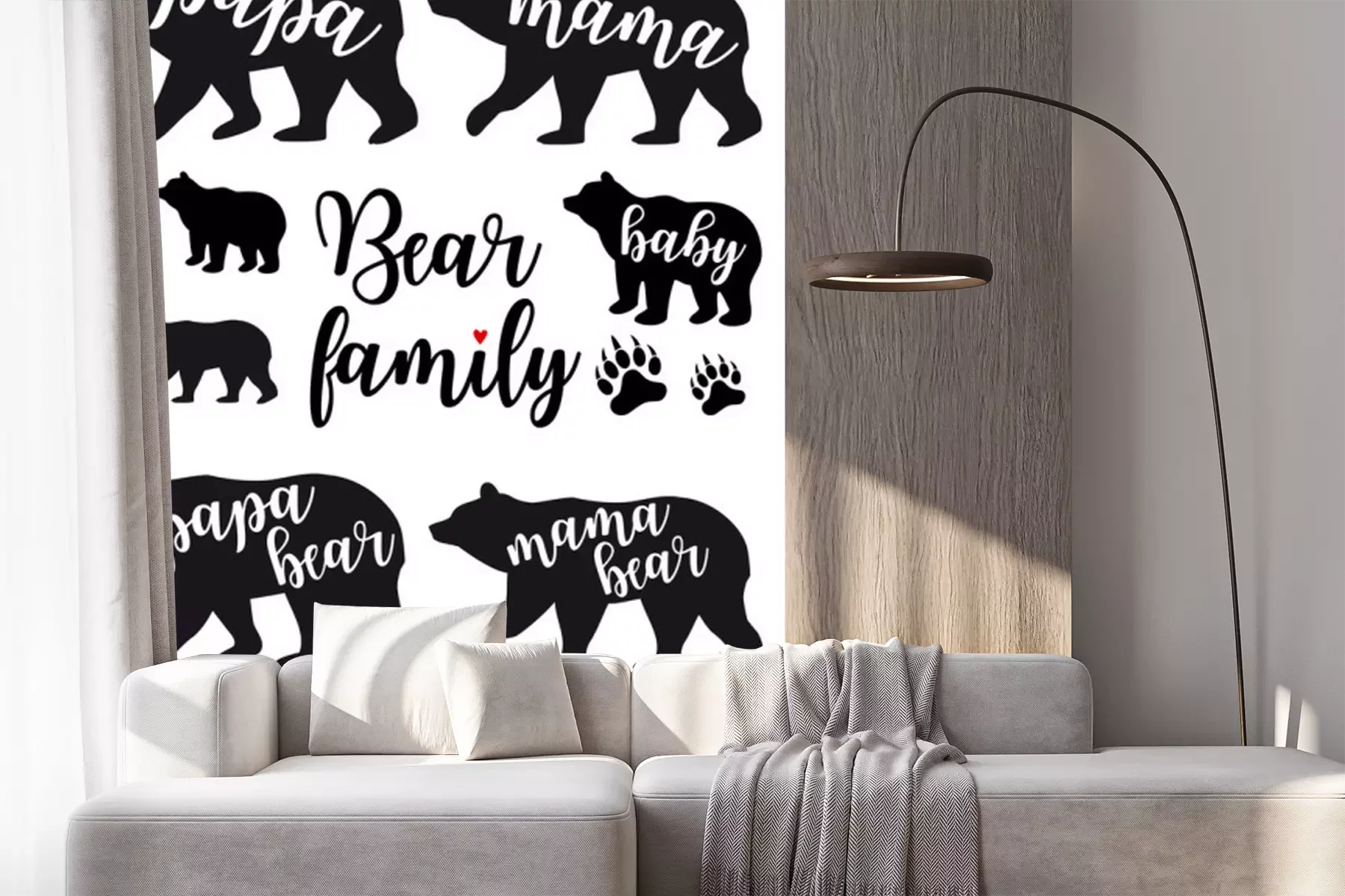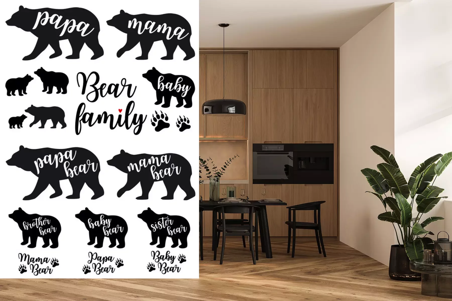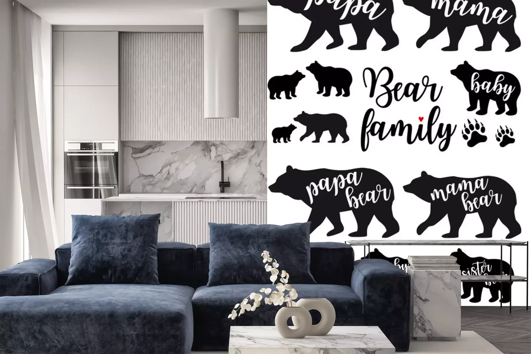 Sticker Schwarz-Weiß-Zeichnungen von Bären mit Beschriftung