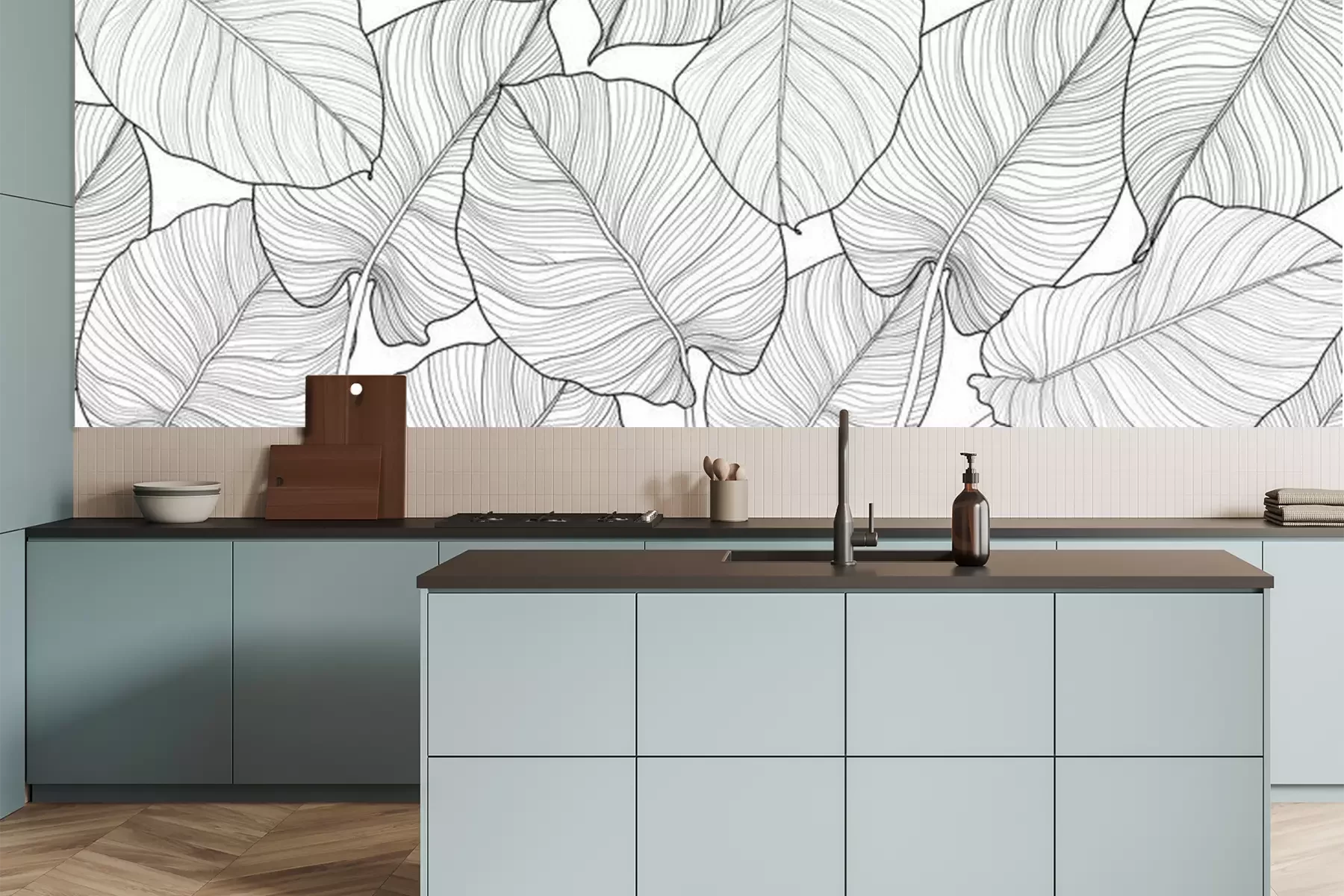 Sticker Schwarz-weiße Blätter in einer minimalistischen Ästhetik