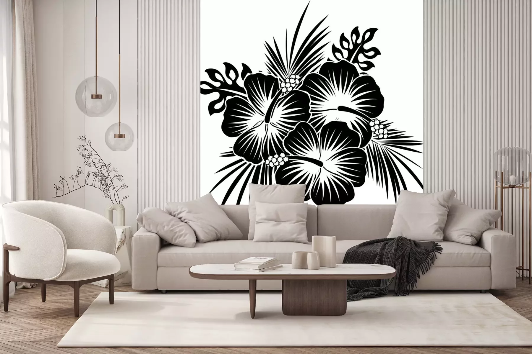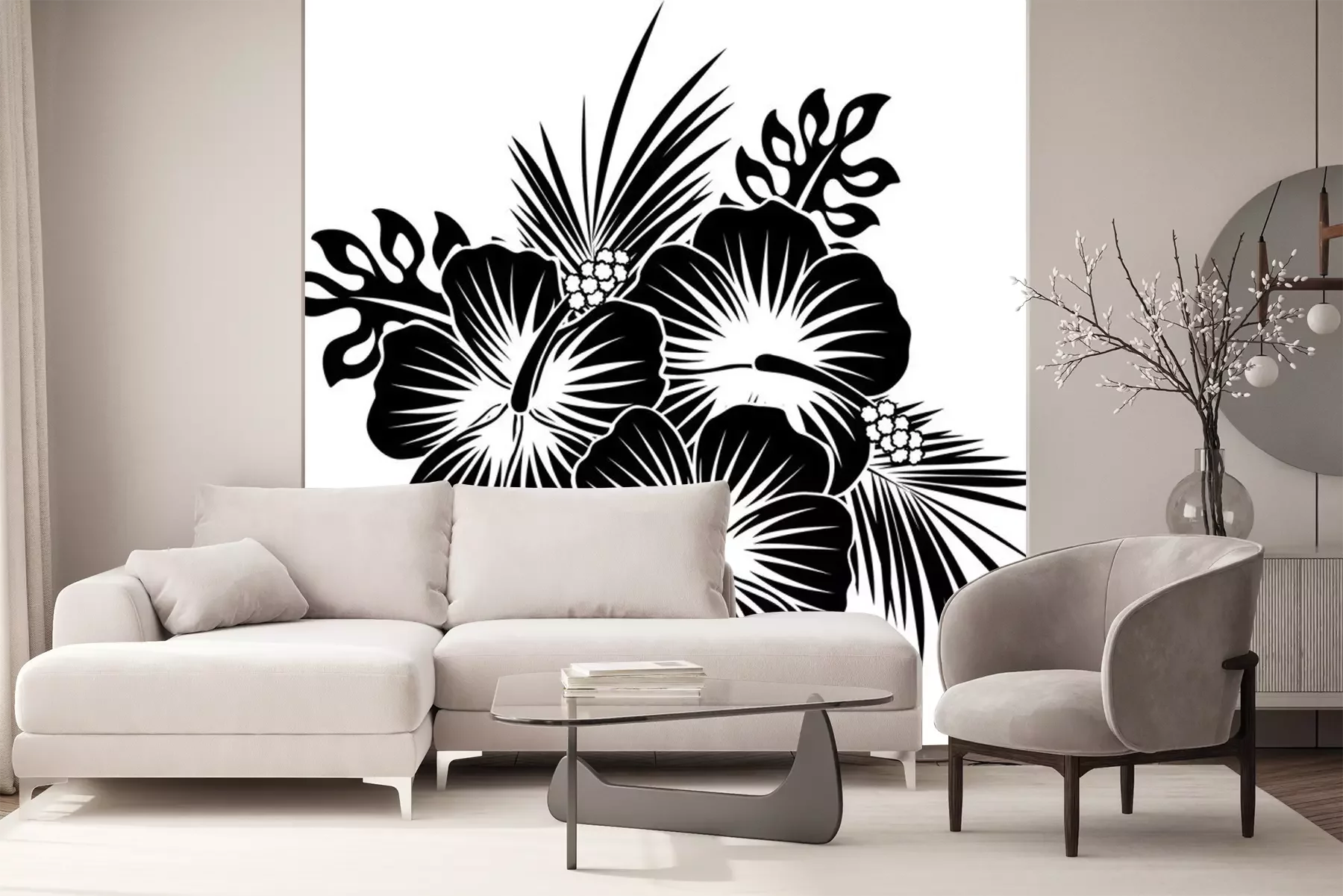 Sticker Schwarz-weiße Blumen florale Zusammensetzung
