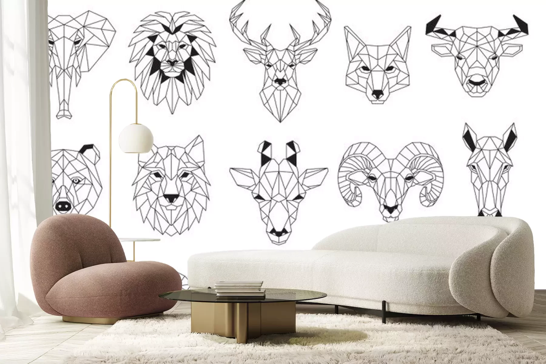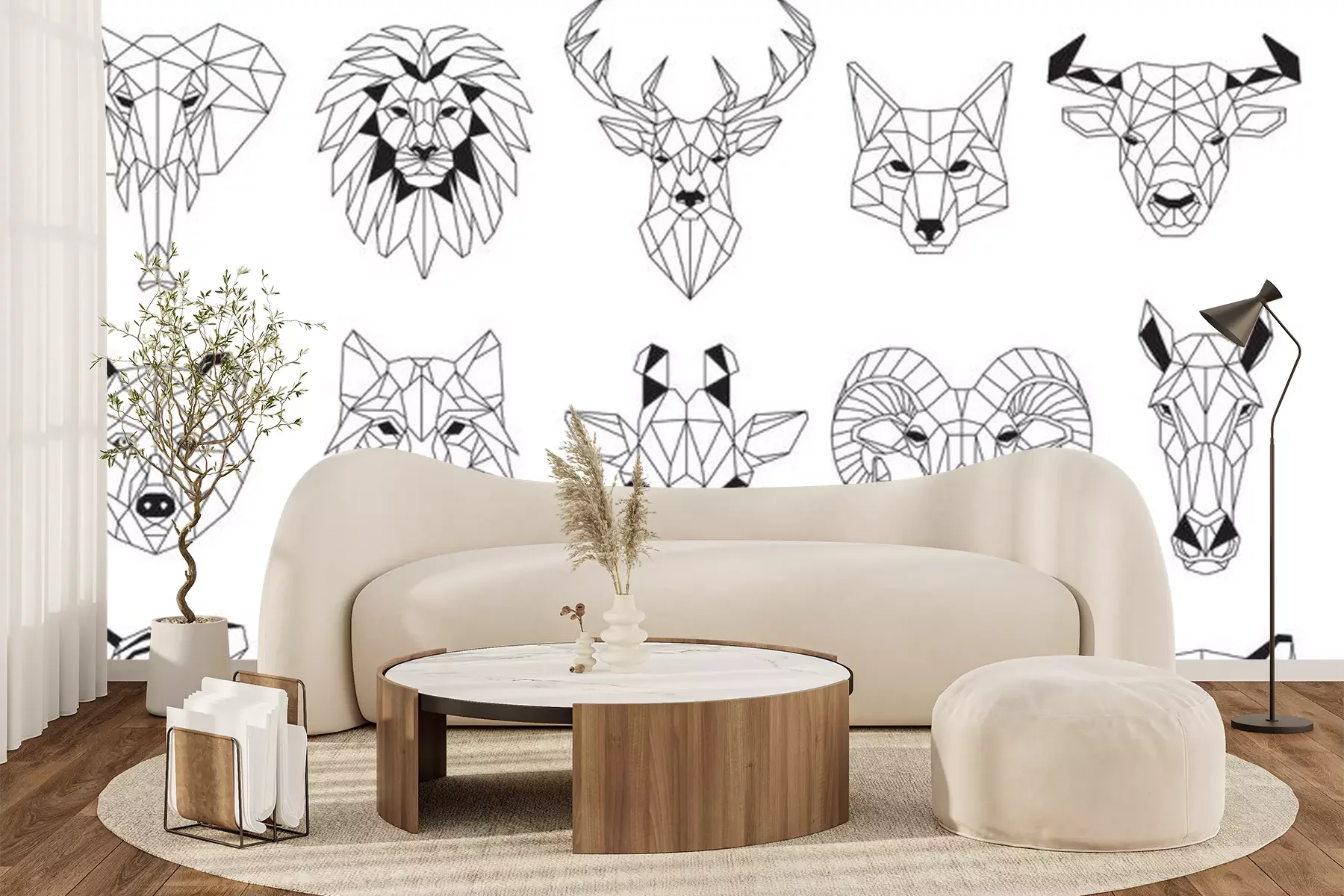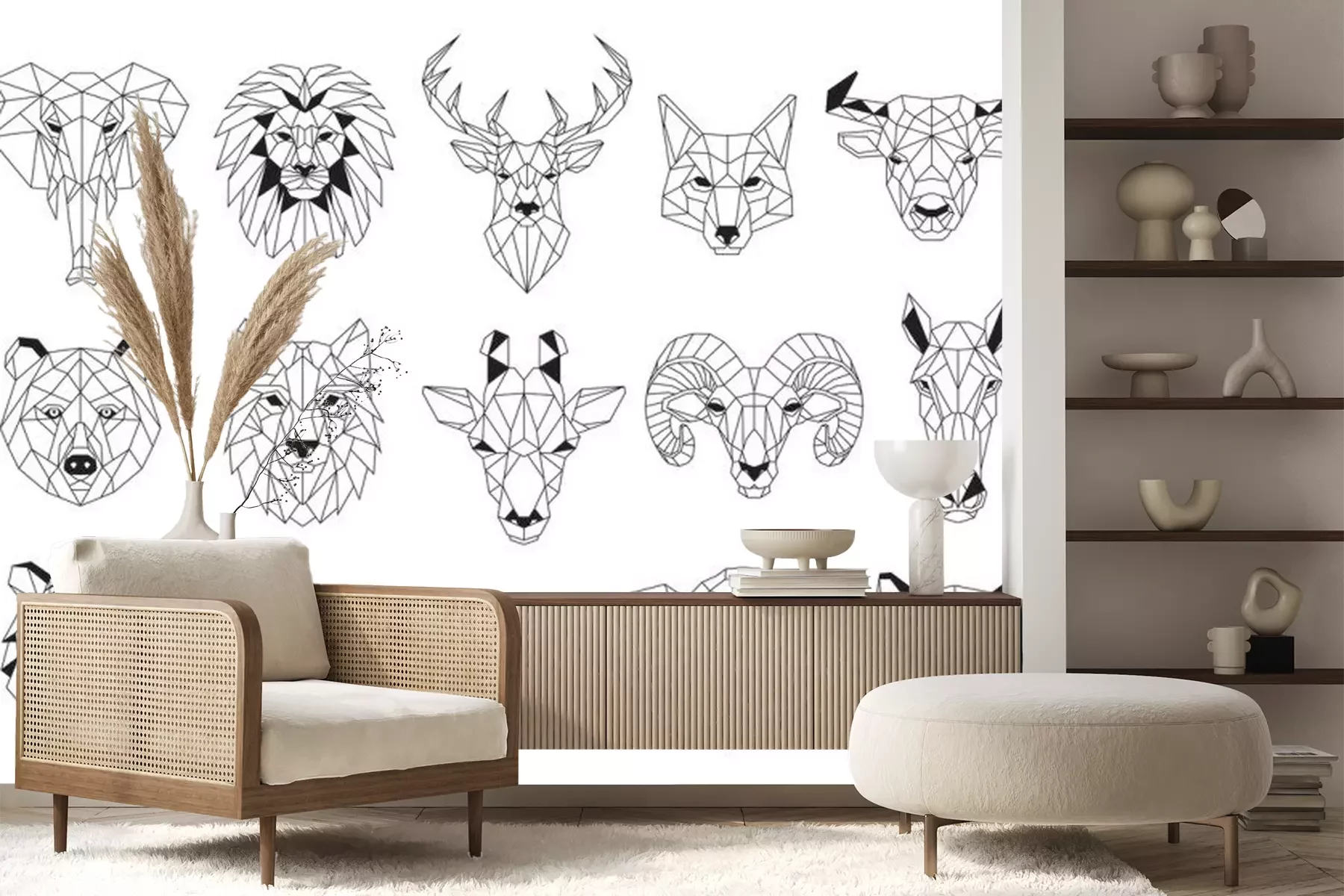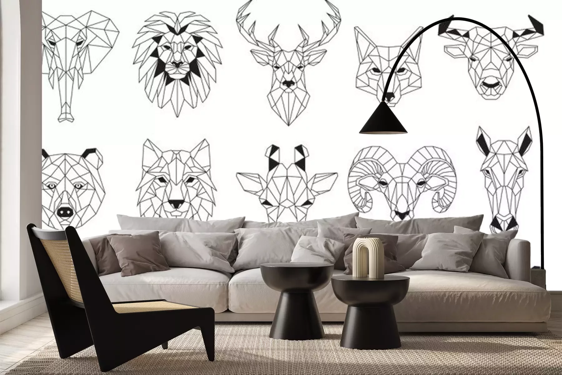 Sticker Schwarz-weiße geometrische Tierköpfe