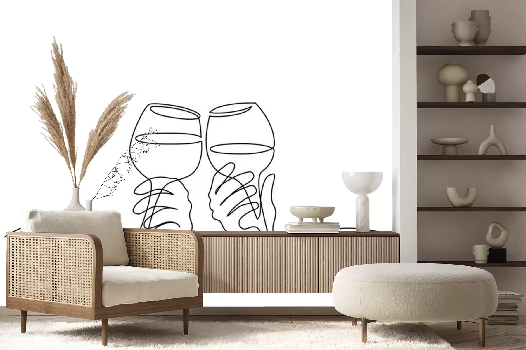 Anstoßen mit Weißwein ZeichnungProblemlose Lieferung durch vertrauenswürdige Spediteure