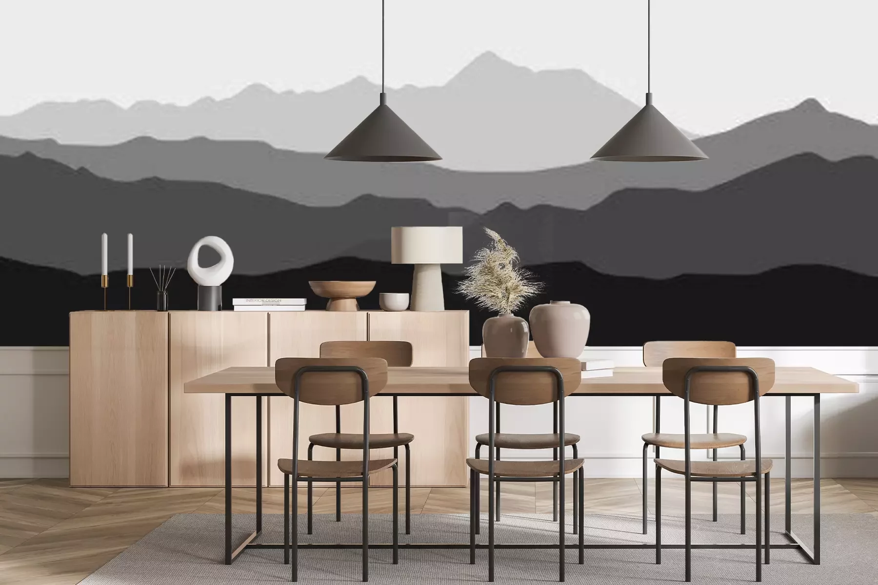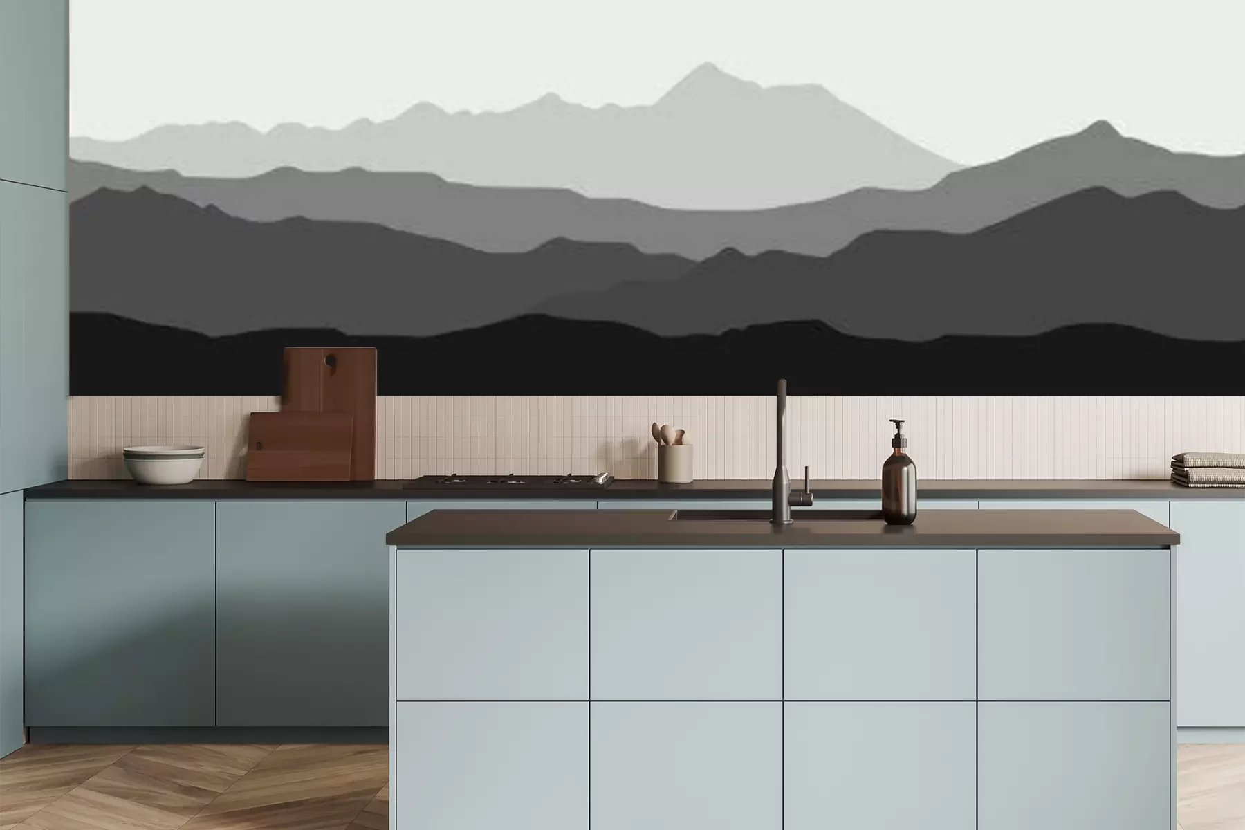 Sticker Schwarz-weiße Landschaft Umriss einer Bergkette