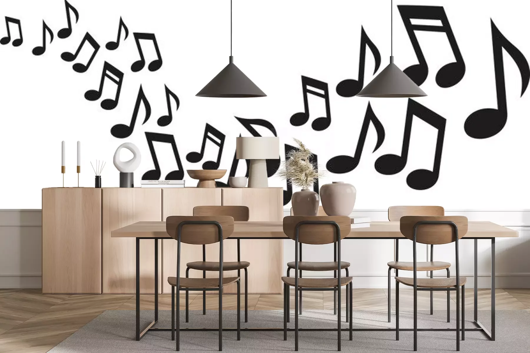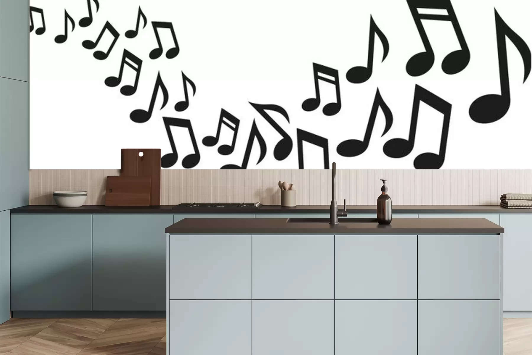 Sticker Schwarz-weiße Noten in einer Wellenlinie