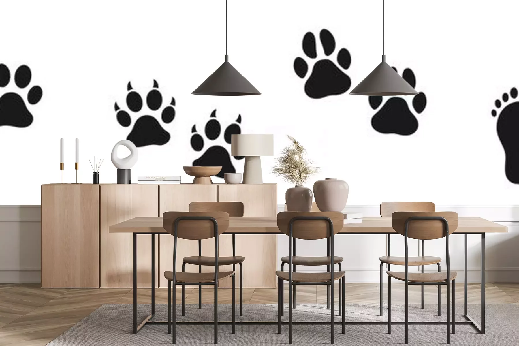 Sticker Schwarz-weiße Tier- und Menschenspuren