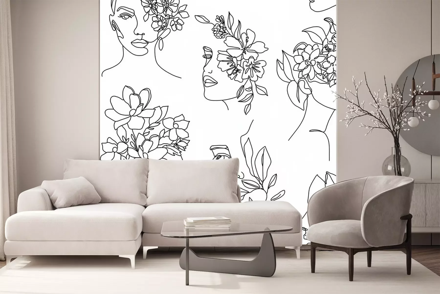 Sticker Schwarz-weiße weibliche Gesichter mit Blumen