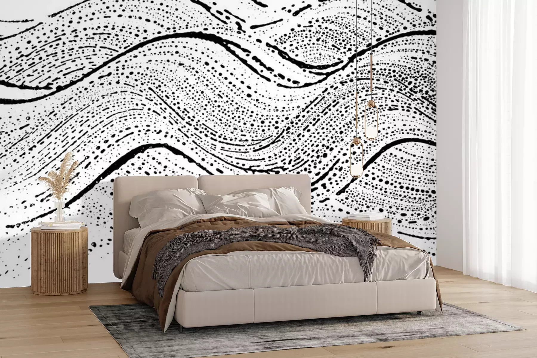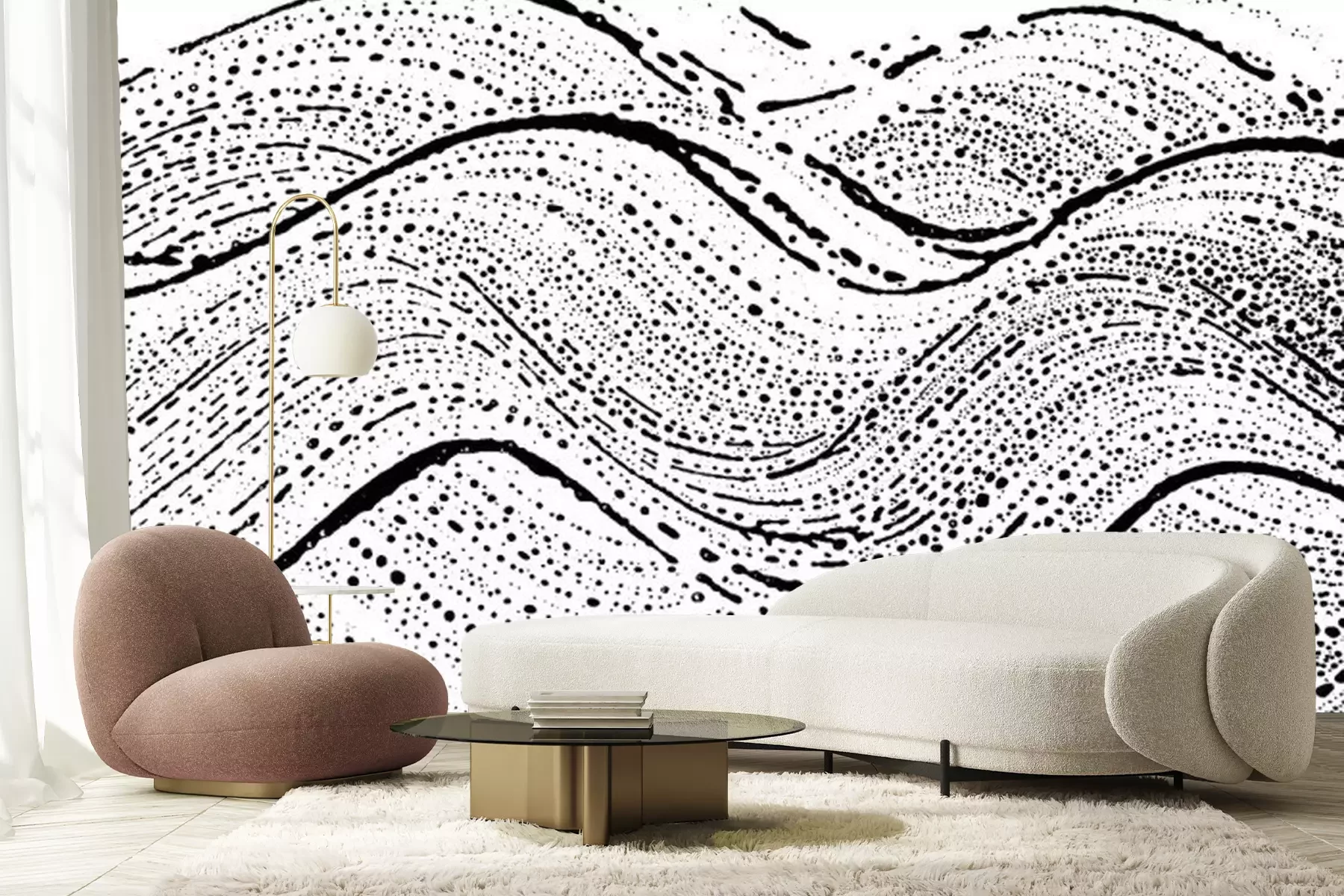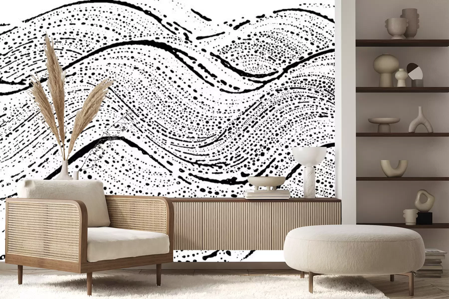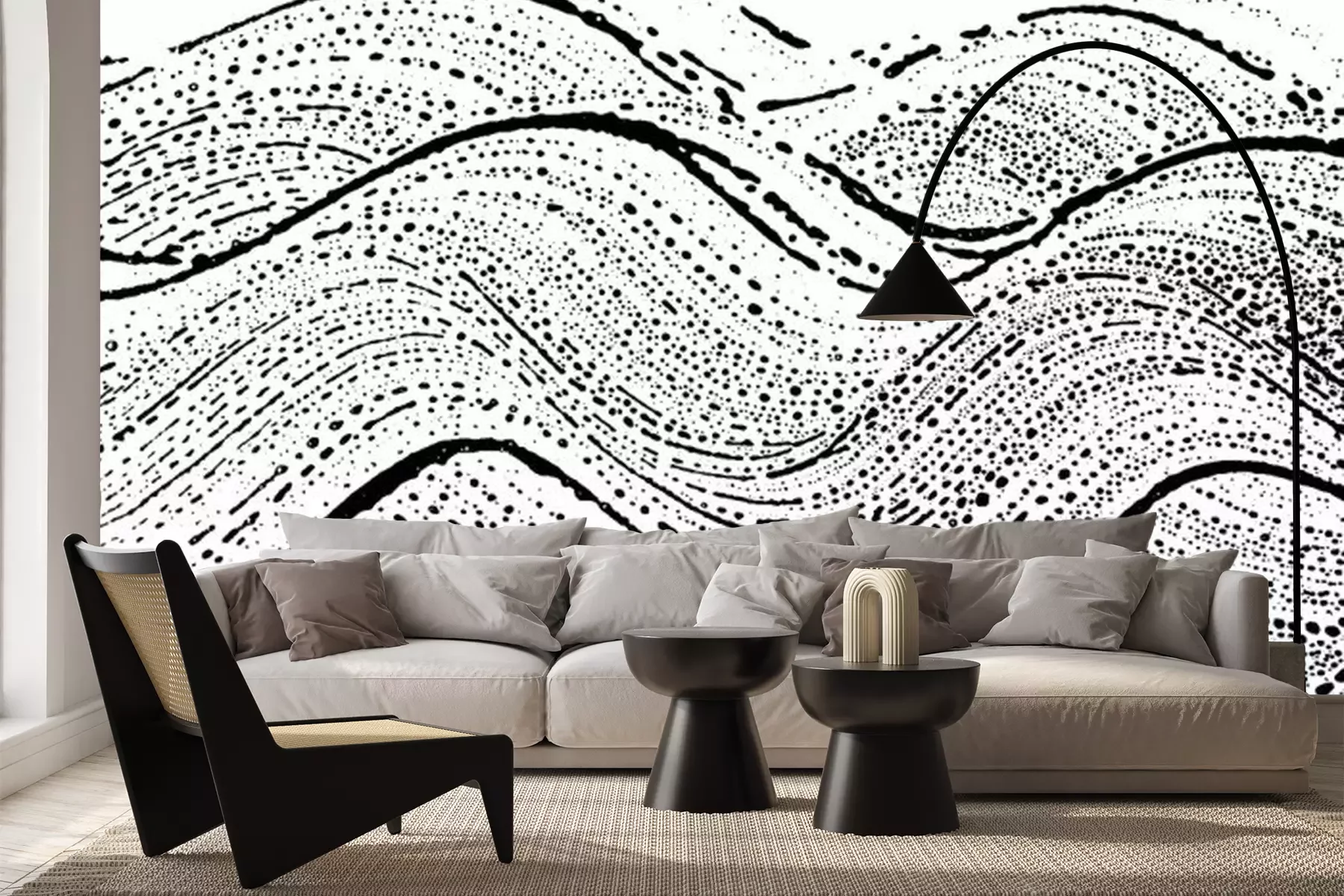 Sticker Schwarz-weiße Wellenlinien und Punkte