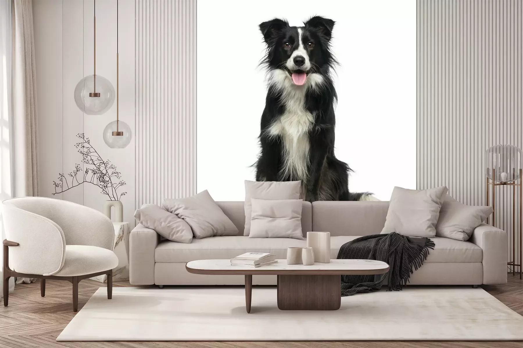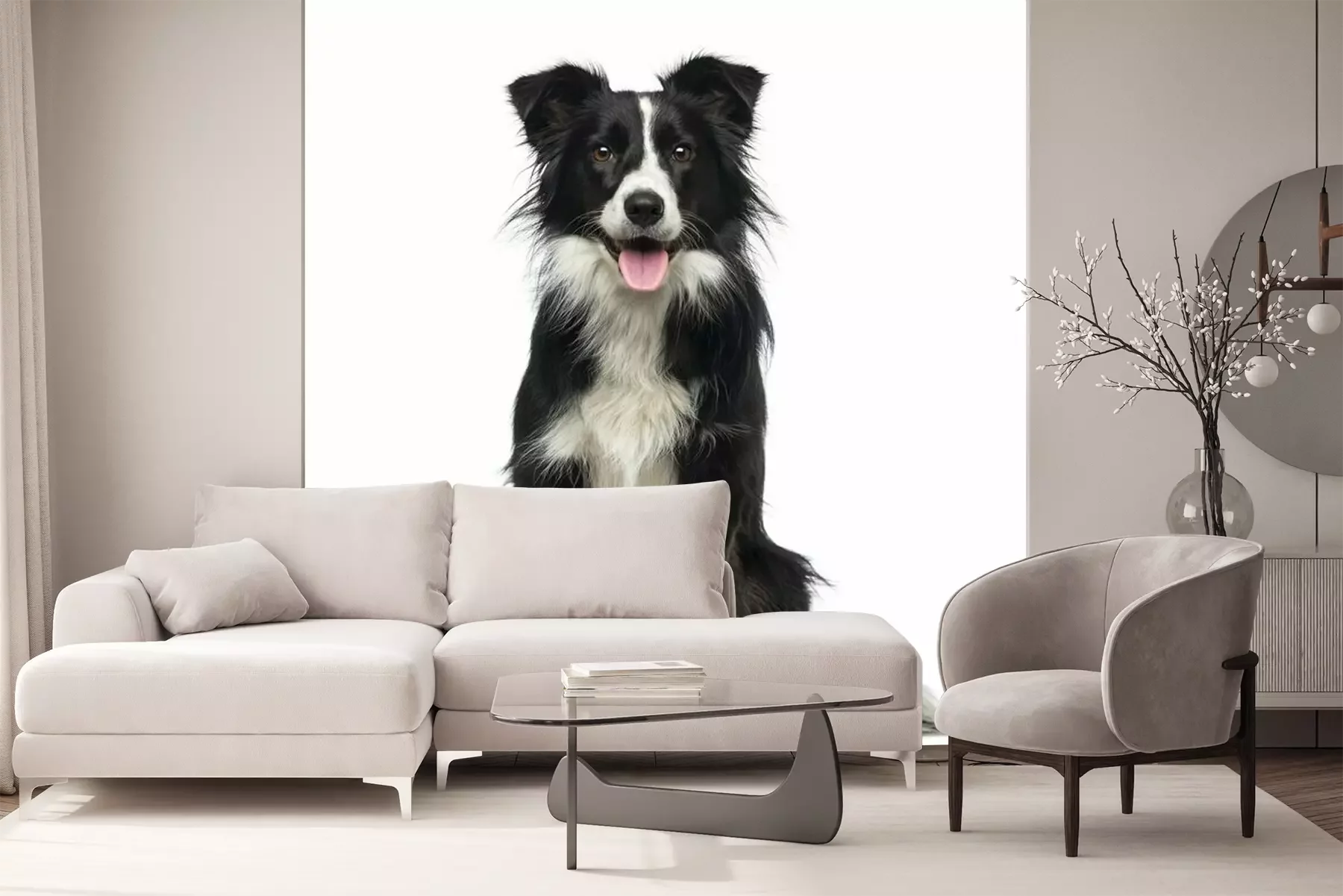 Sticker Schwarz-weißer Collie-Hütehund mit herausgestreckter Zunge