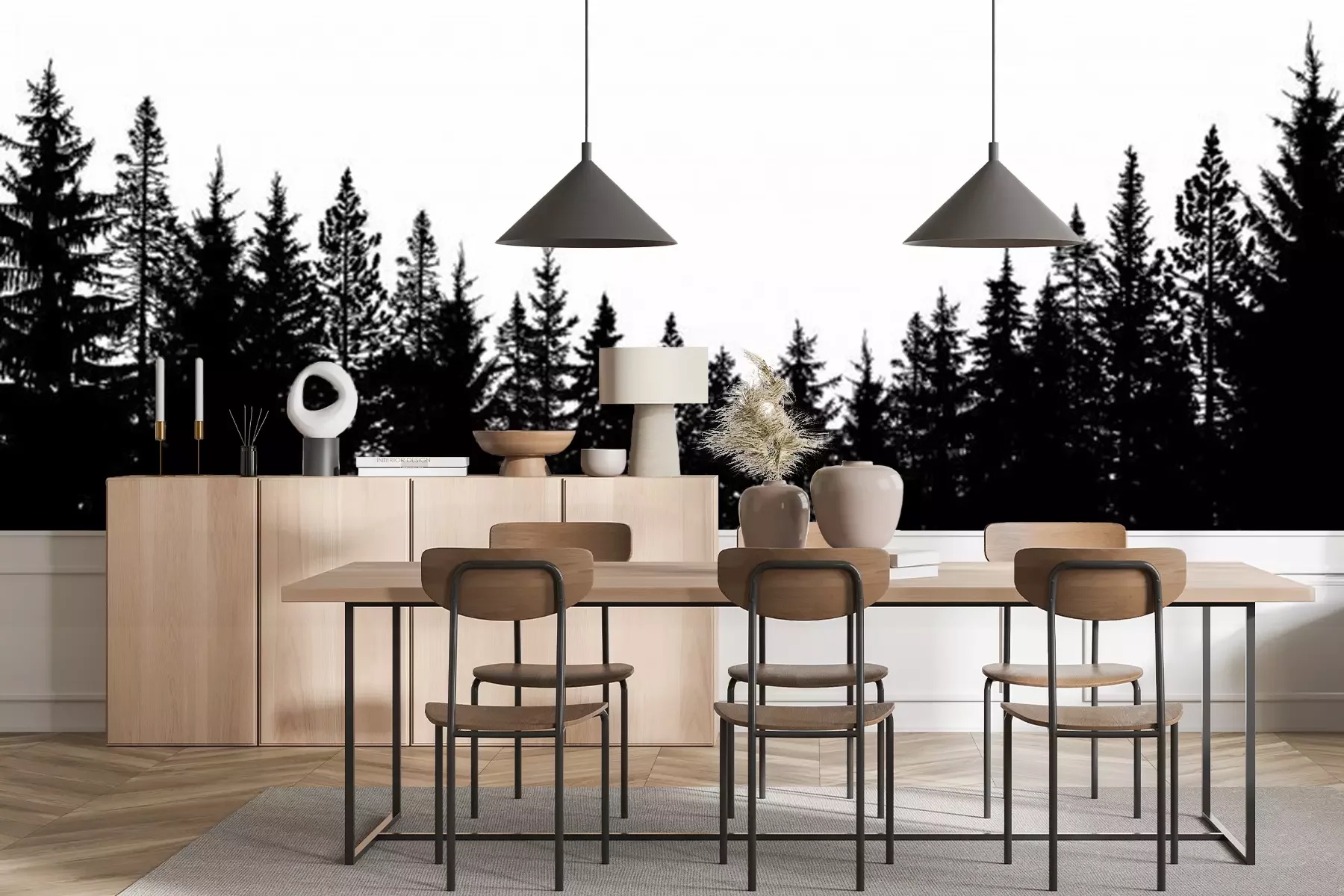 Sticker Schwarz-weißer Nadelwald