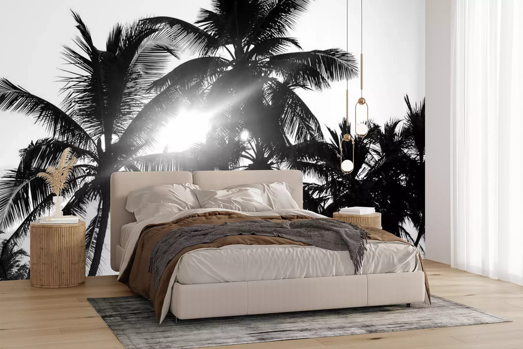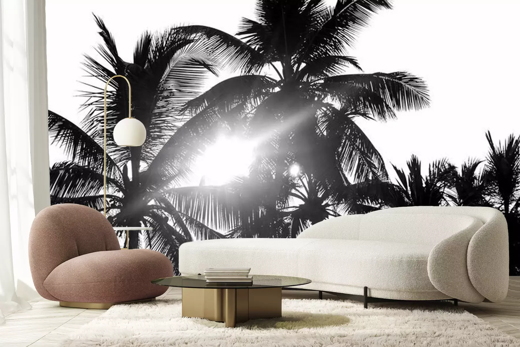 Sticker Schwarze Palmen auf weißem Hintergrund