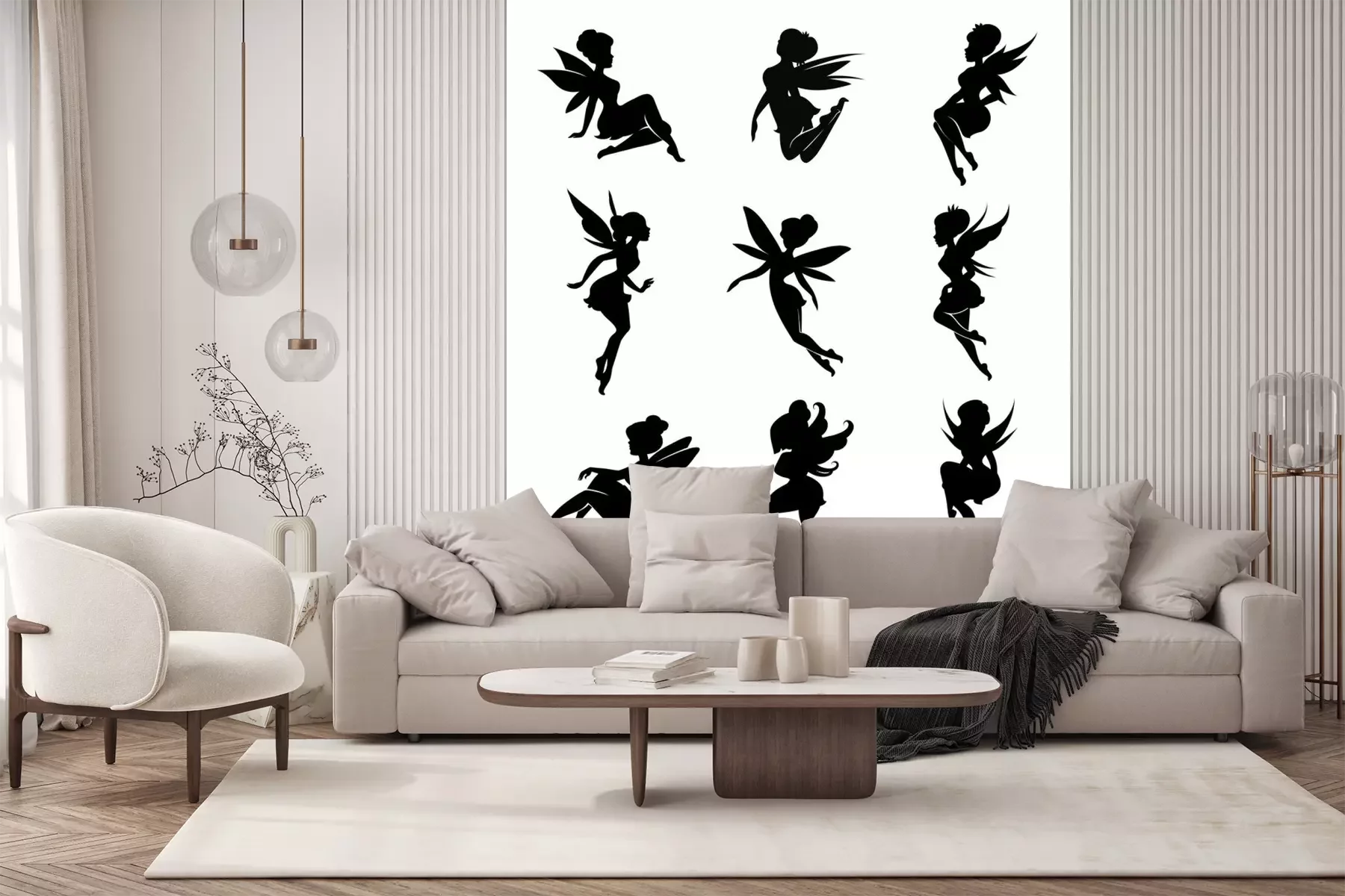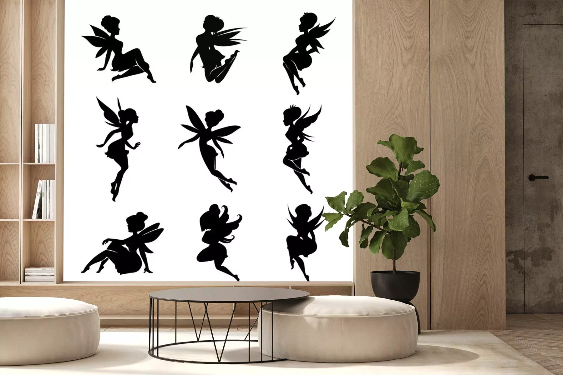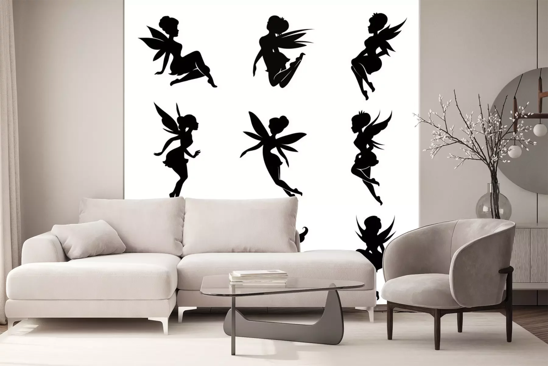 Sticker Schwarze Silhouetten von Feen mit Flügeln