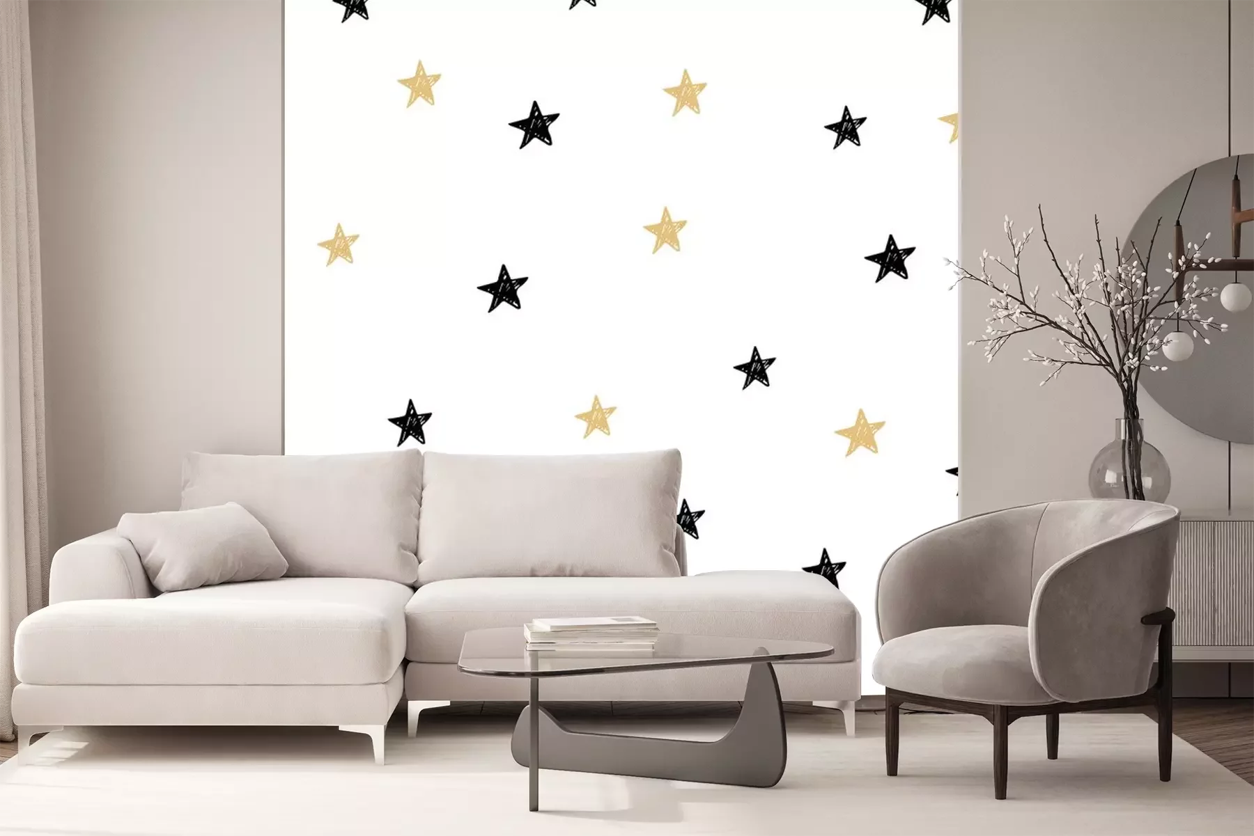 Sticker Schwarze und gelbe Sterne mit Filzstift gemalt
