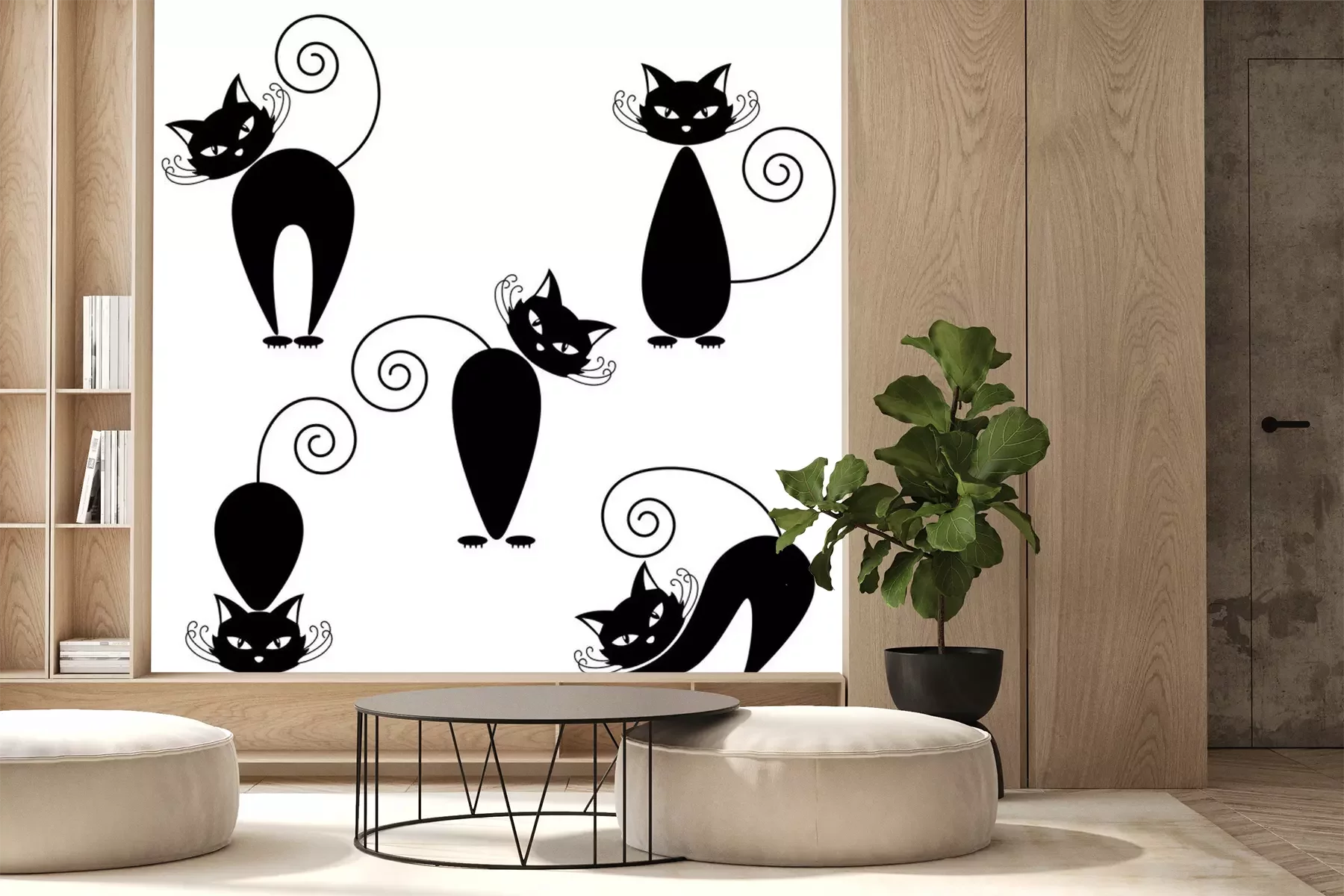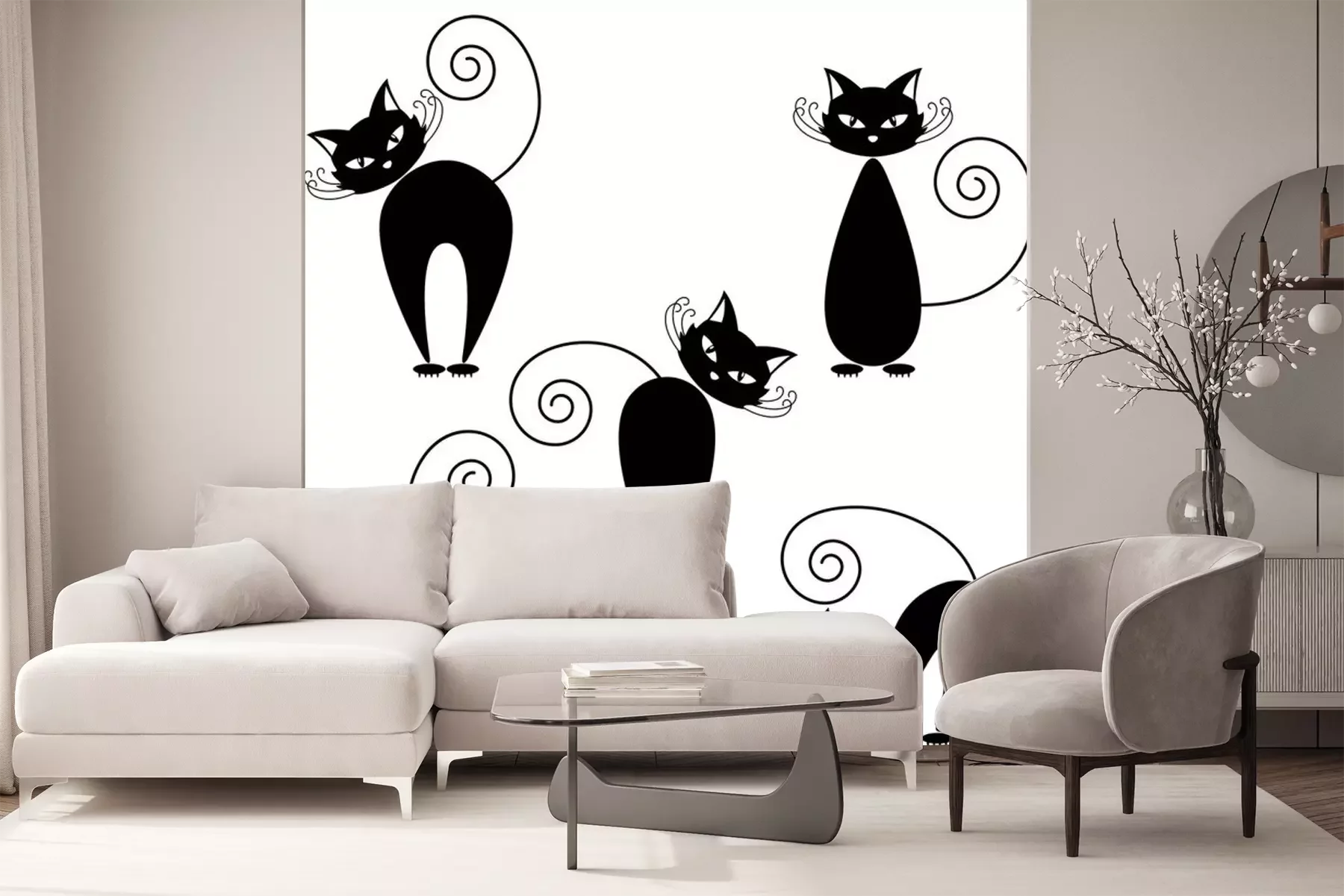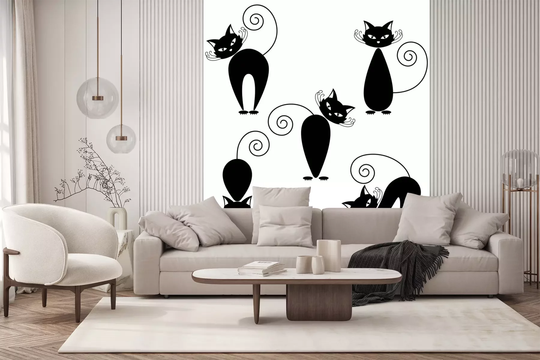 Sticker Schwarze Zeichnung Katzen mit gewelltem Schwanz