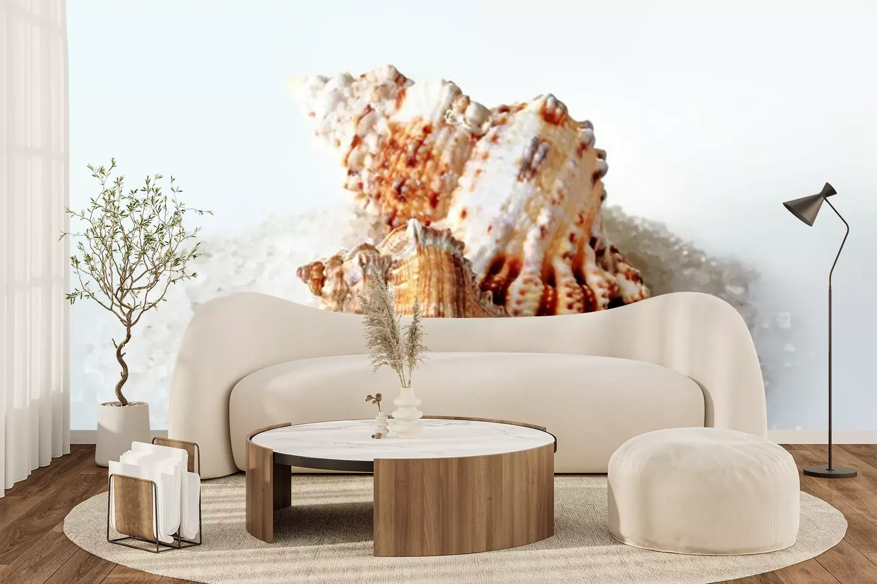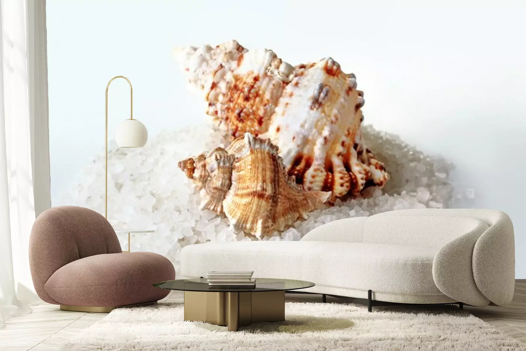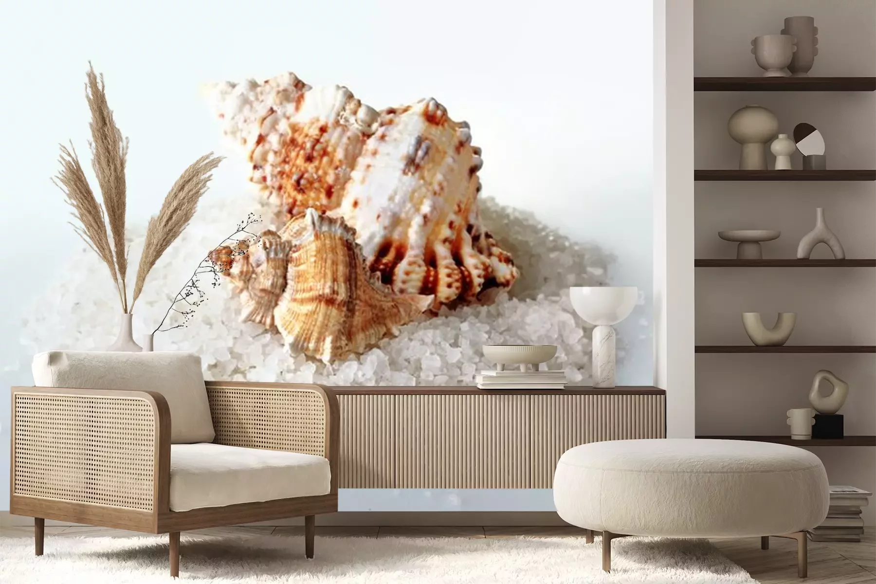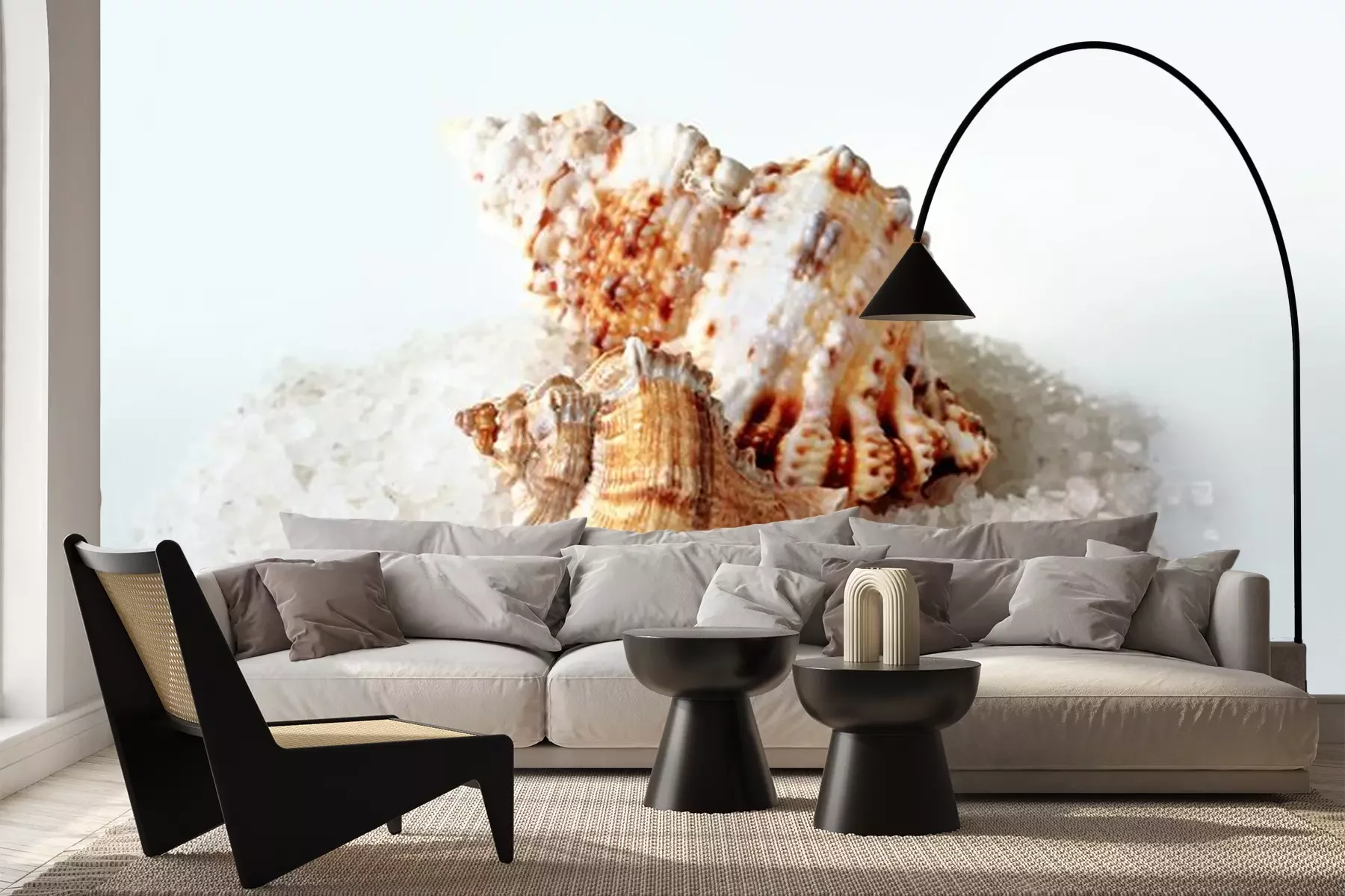 Sticker Seashell auf dem Hügel von Meersalz isoliert auf weißem Hintergrund