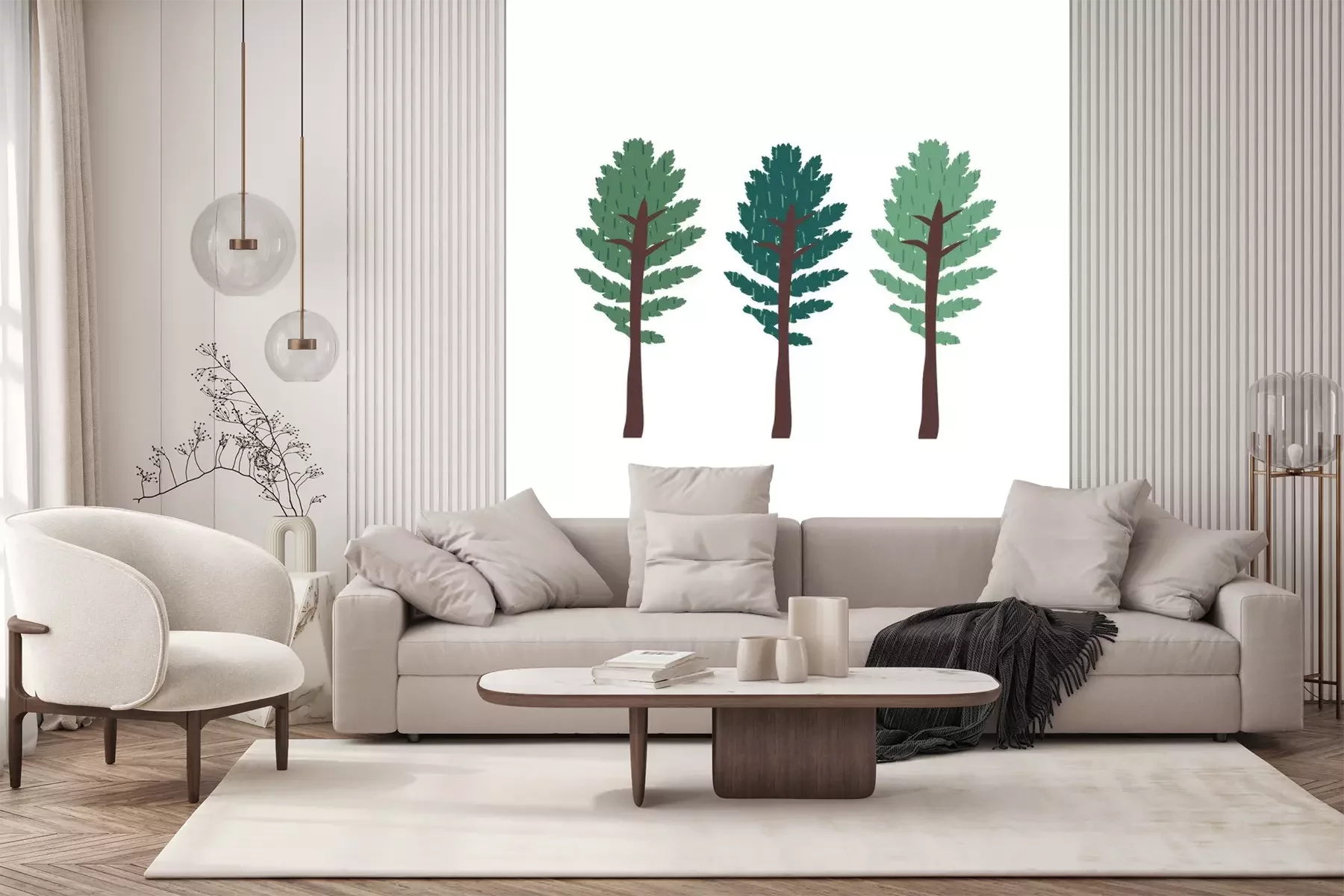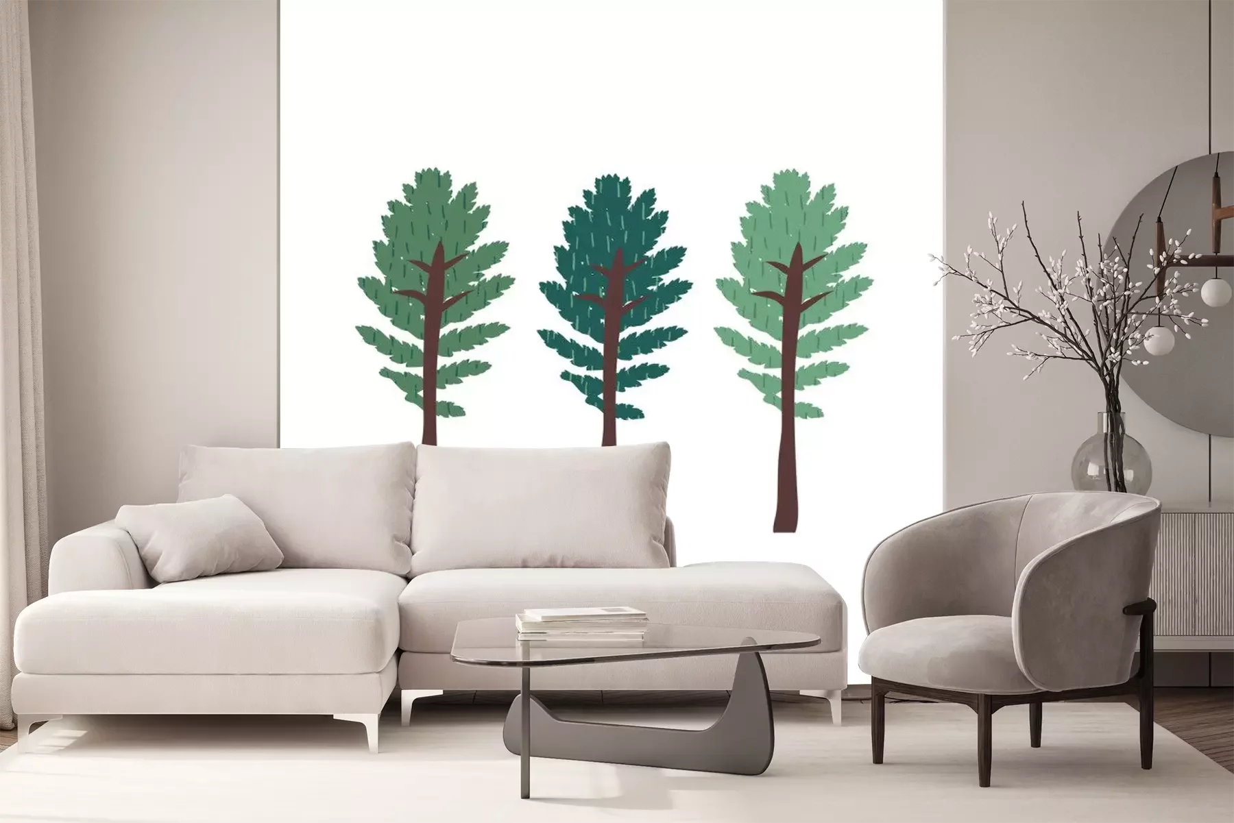 Sticker Set of green trees doodle drawing. Minimal concept of sustainable living, eco forest. Cute plants with texture. Hand drawn flat vector illustration in cartoon style isolated on white background