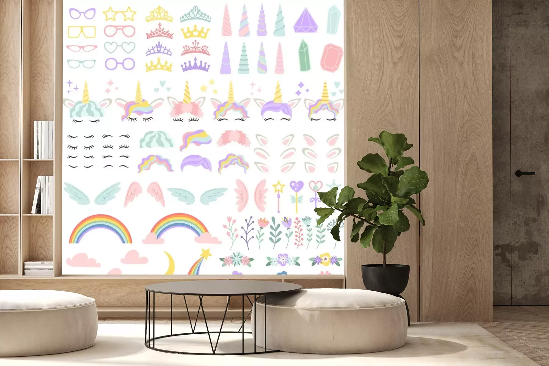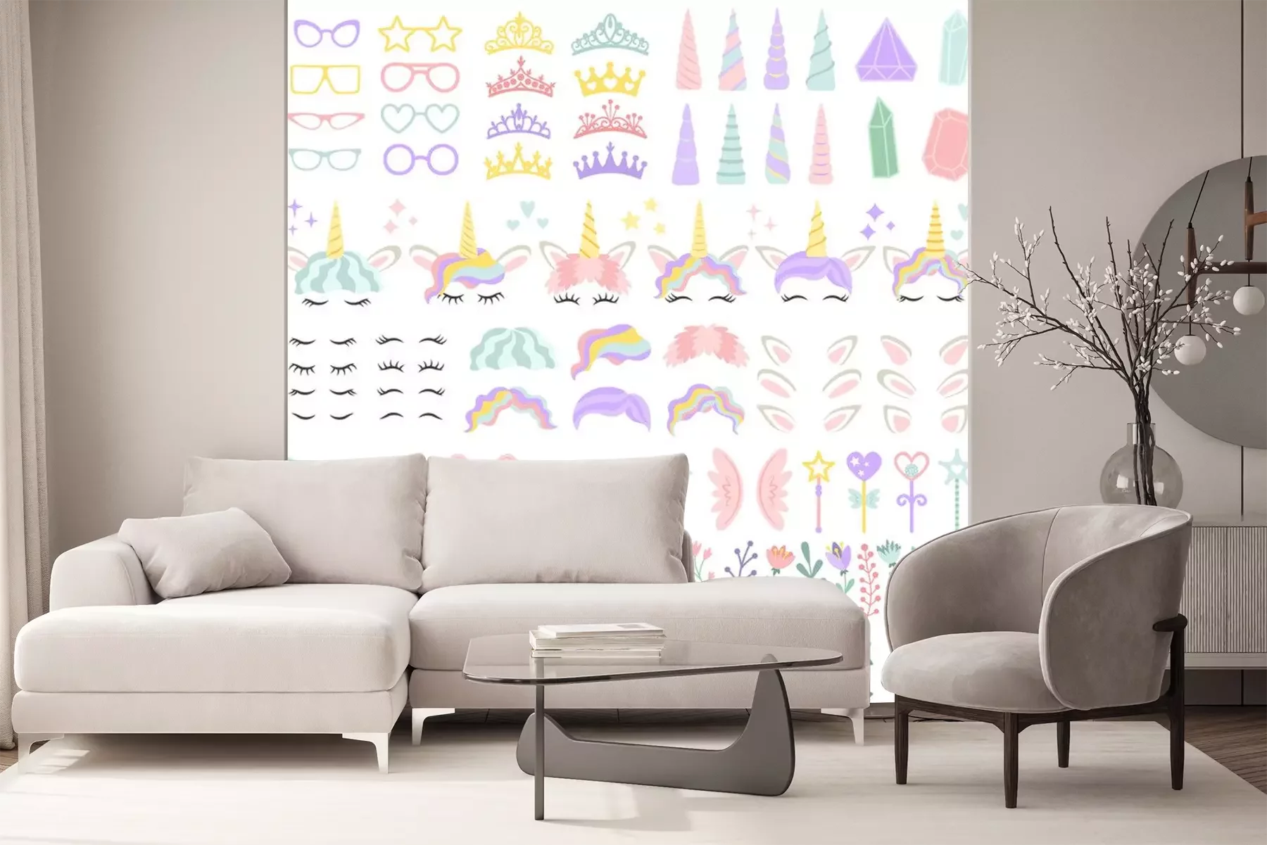 Sticker Set von Grafiken im Geiste der magischen Einhörner