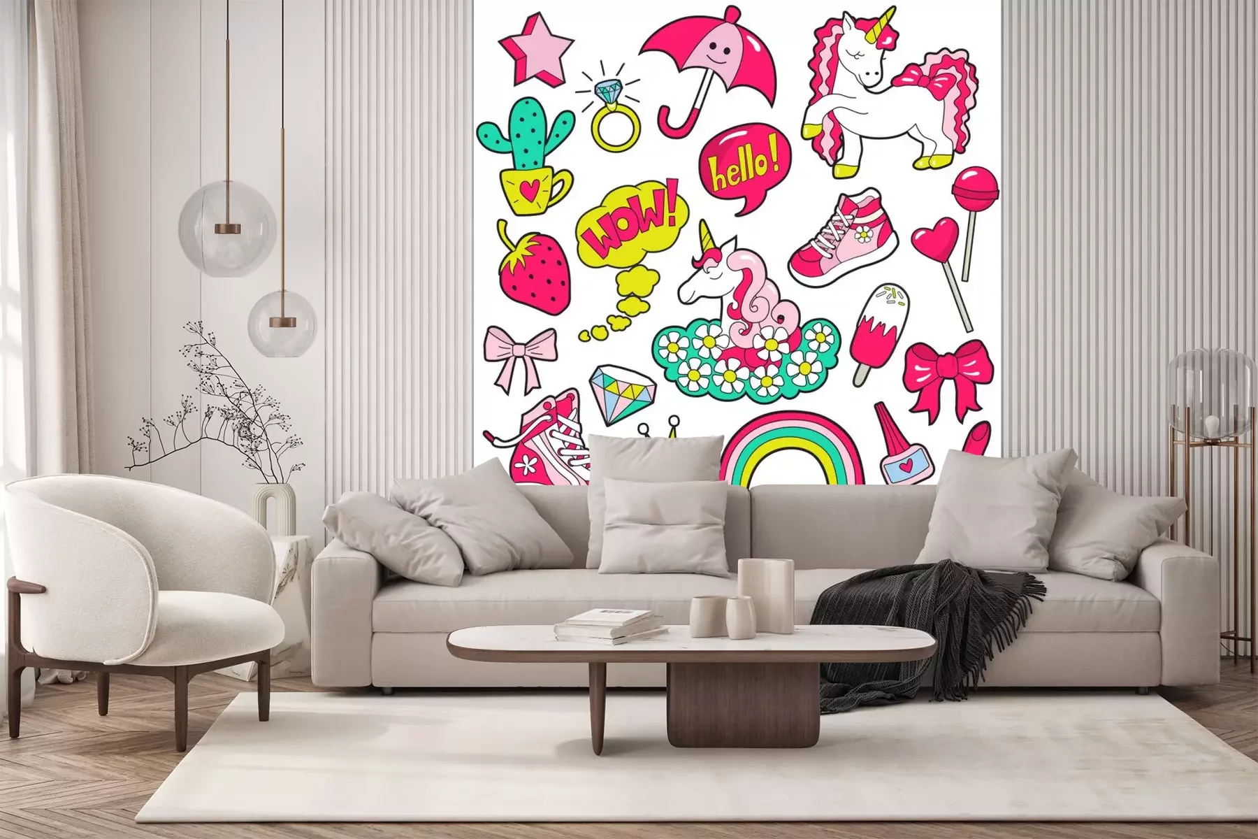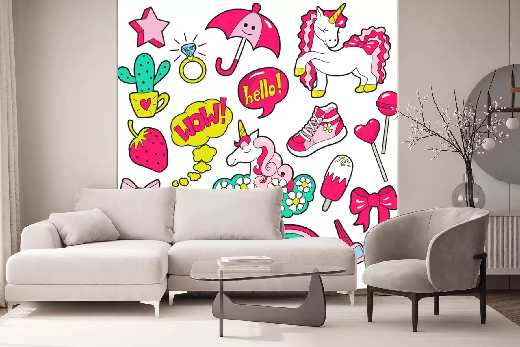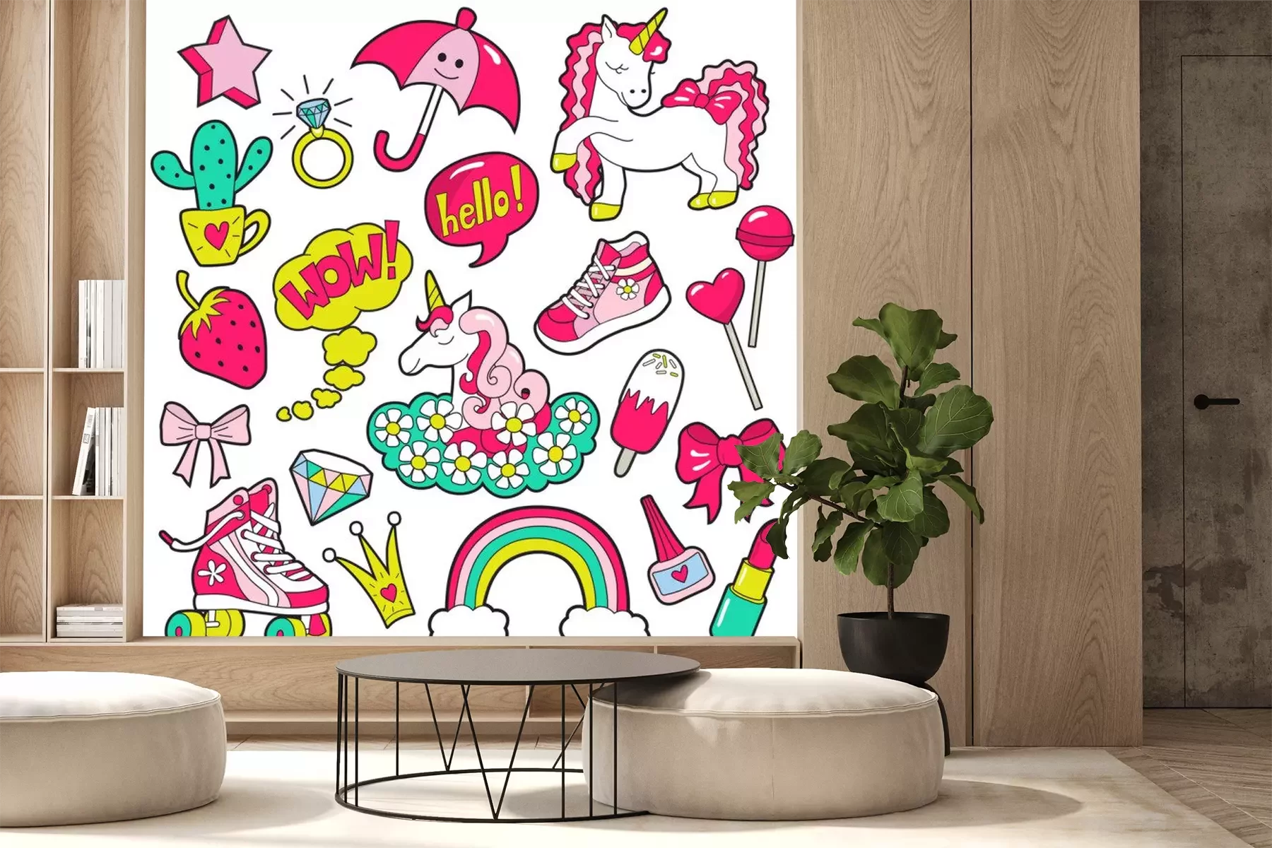 Sticker Set von Grafiken mit bunten Mädchenmotiven