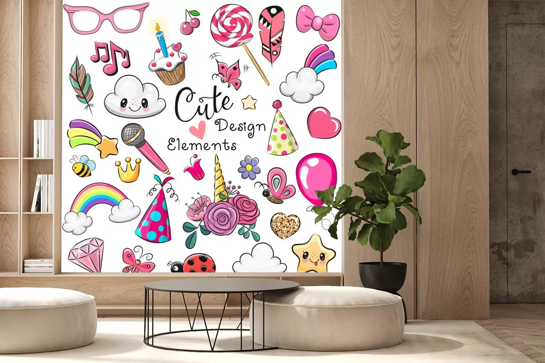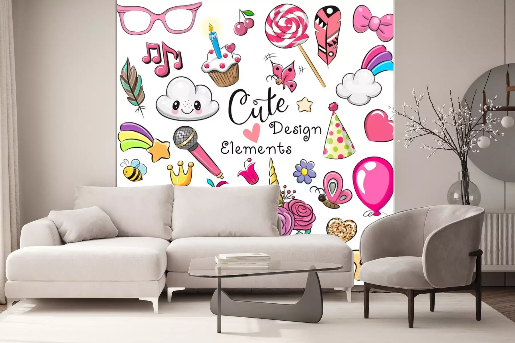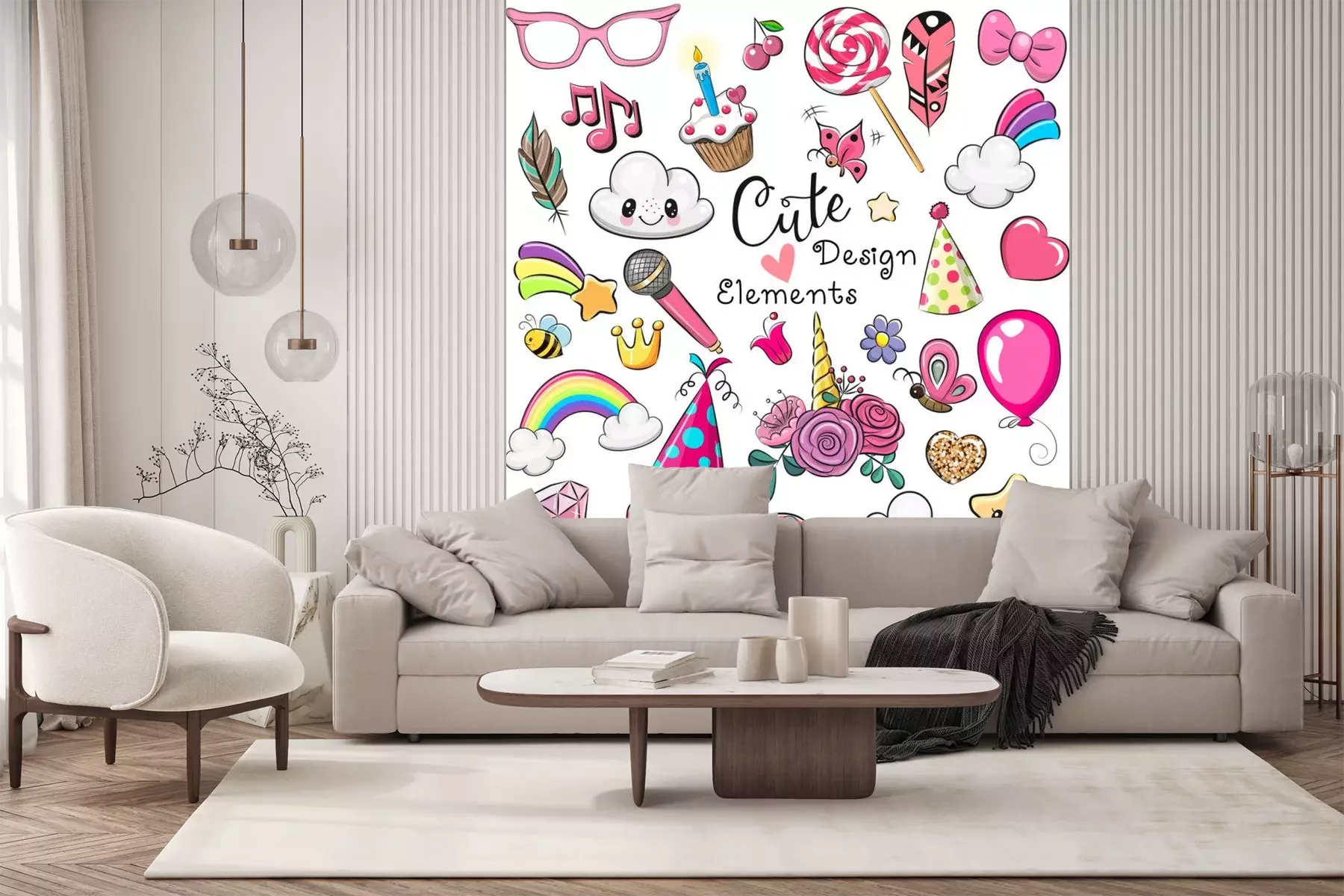 Sticker Set von Regenbogengrafiken mit einer fröhlichen Ästhetik