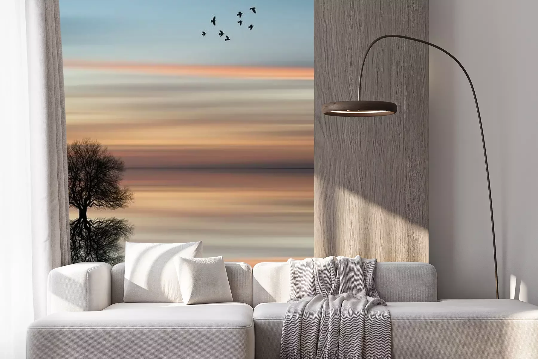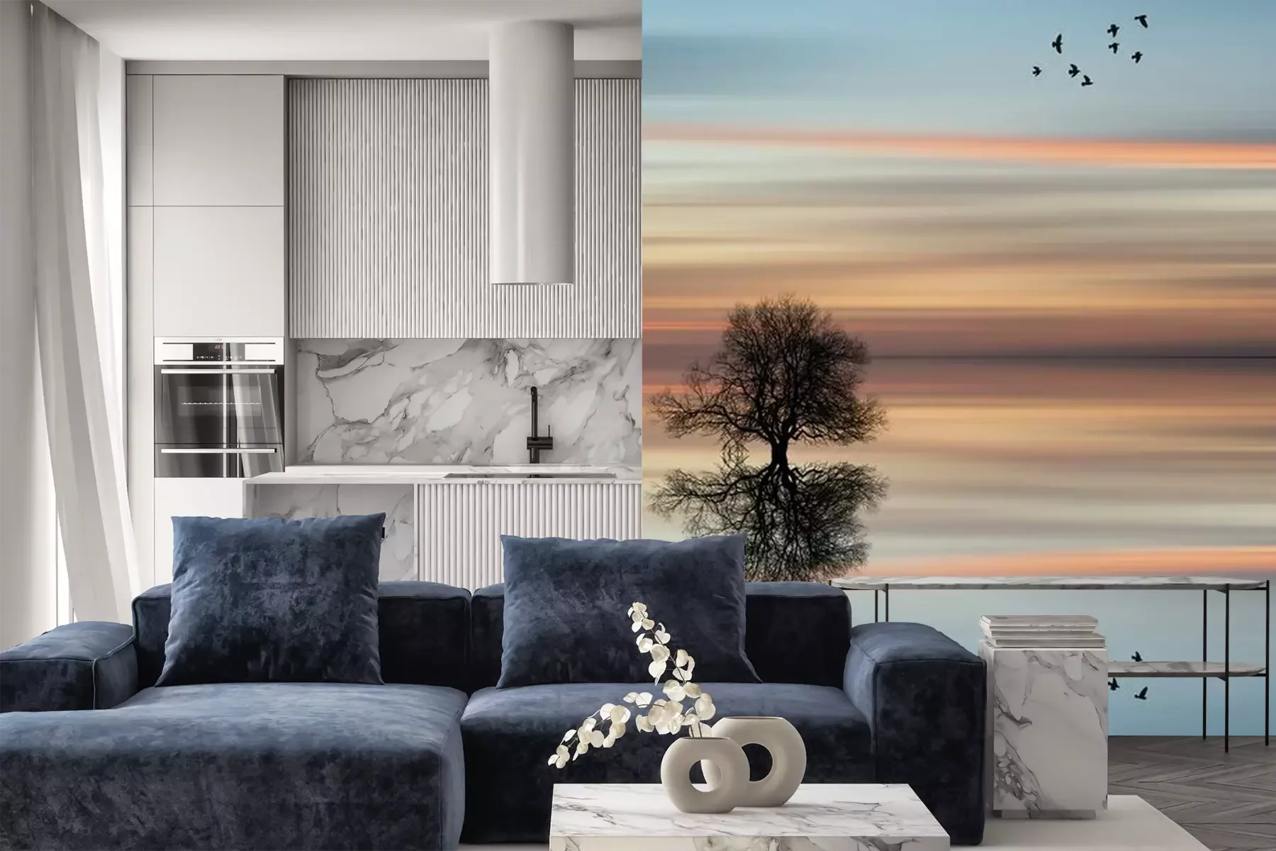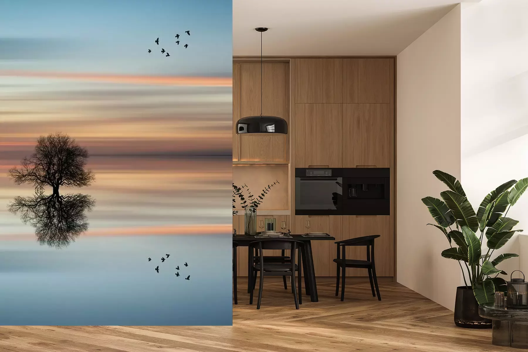 Sticker Silhouette eines Baumes im Wasser bei Sonnenuntergang