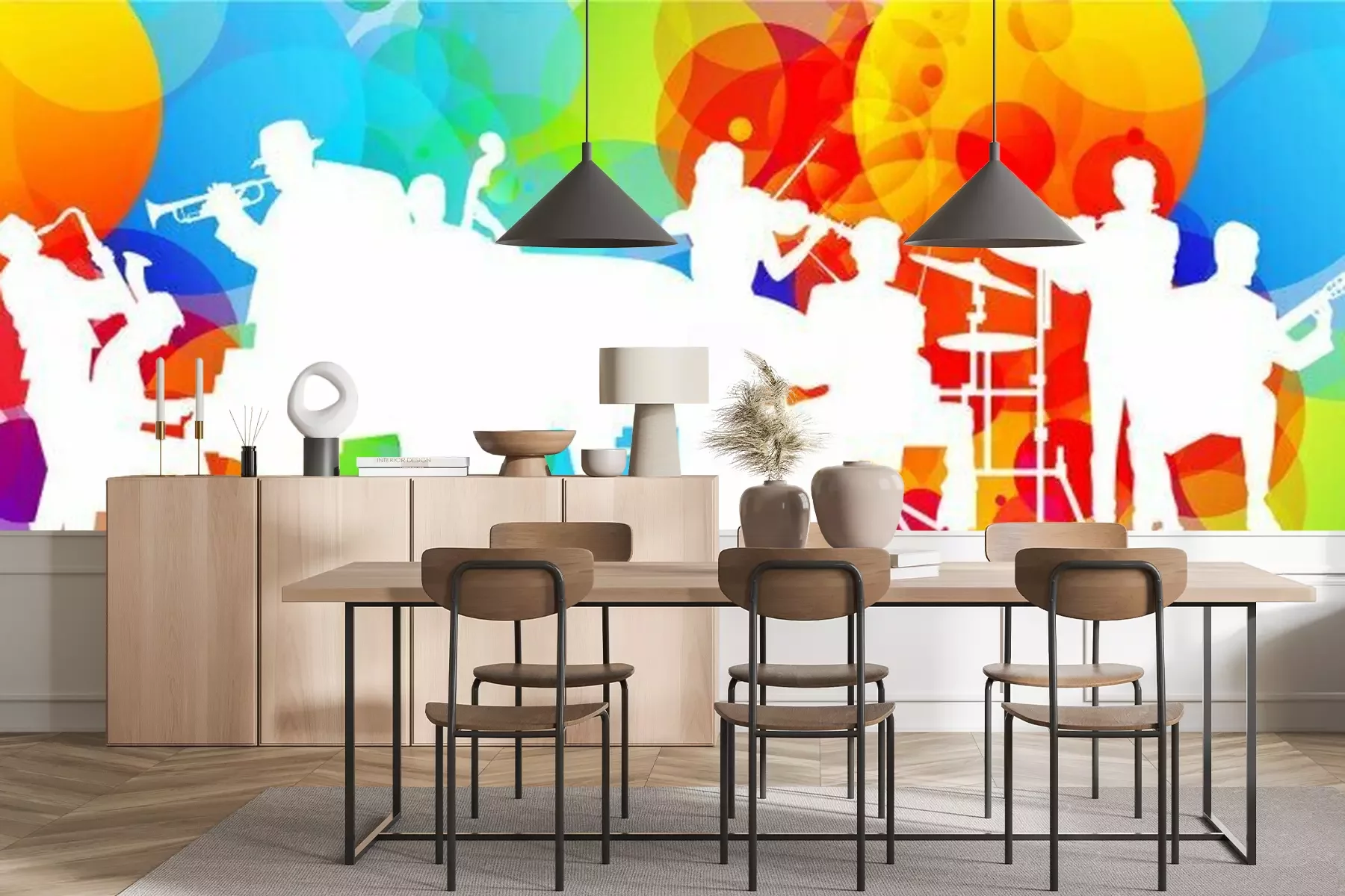 Sticker Silhouetten von Musikern auf regenbogenfarbenem Hintergrund