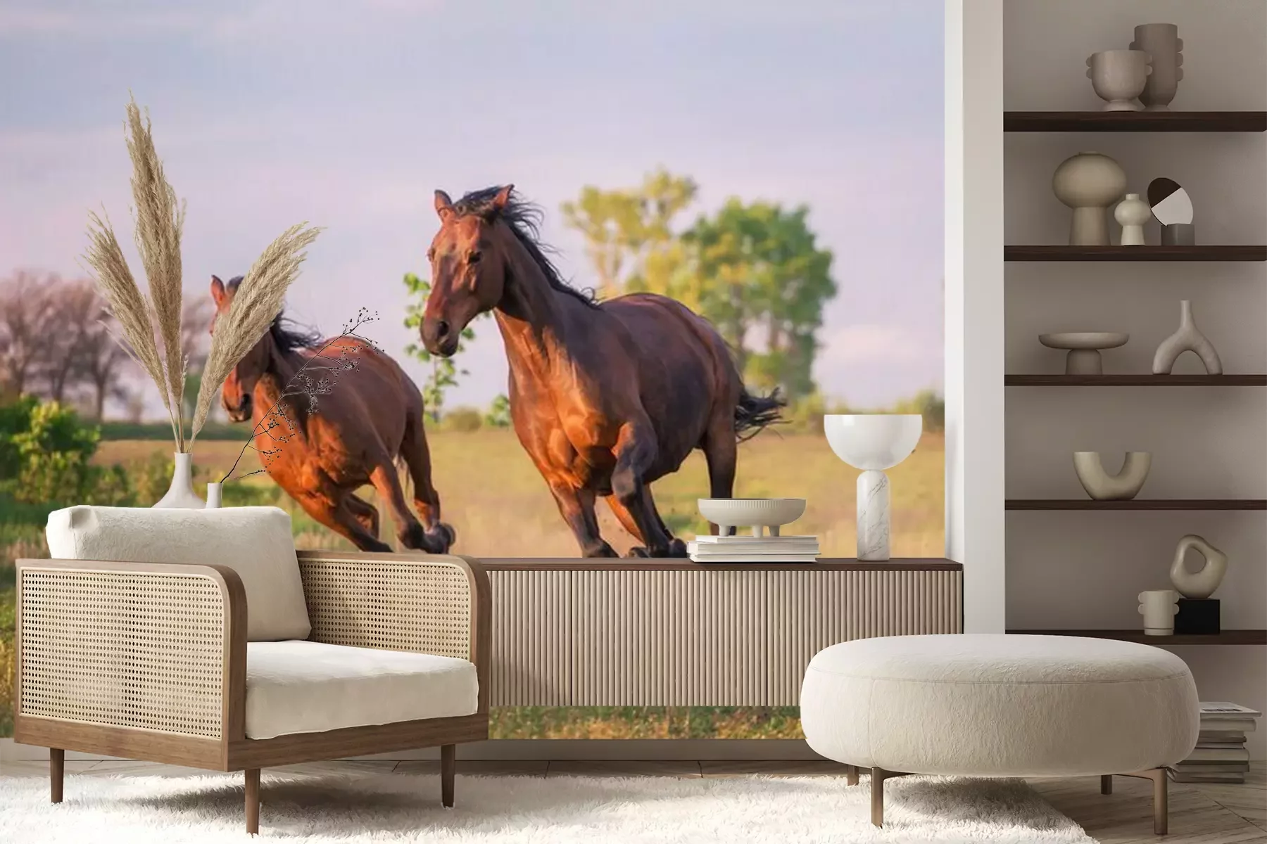 Sticker Silhouetten von Pferden beim Laufen mit wehender Mähne