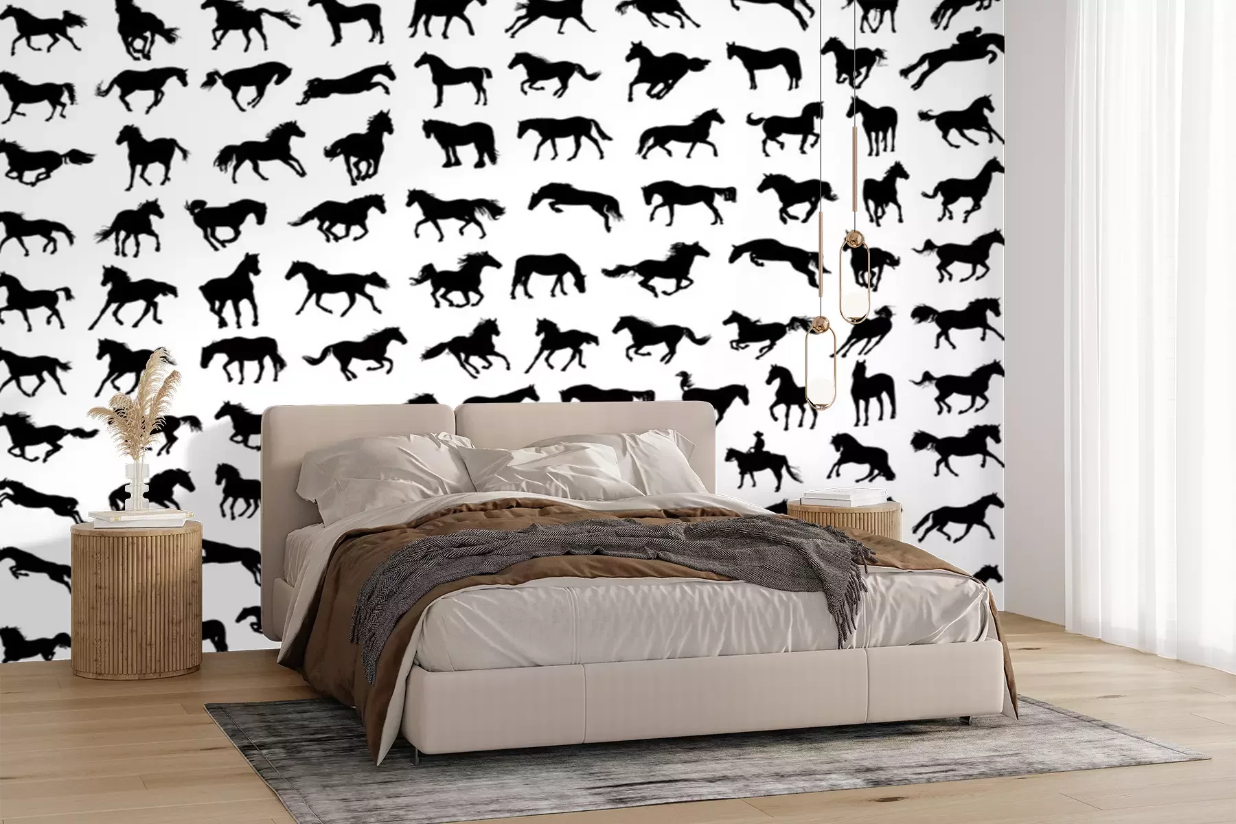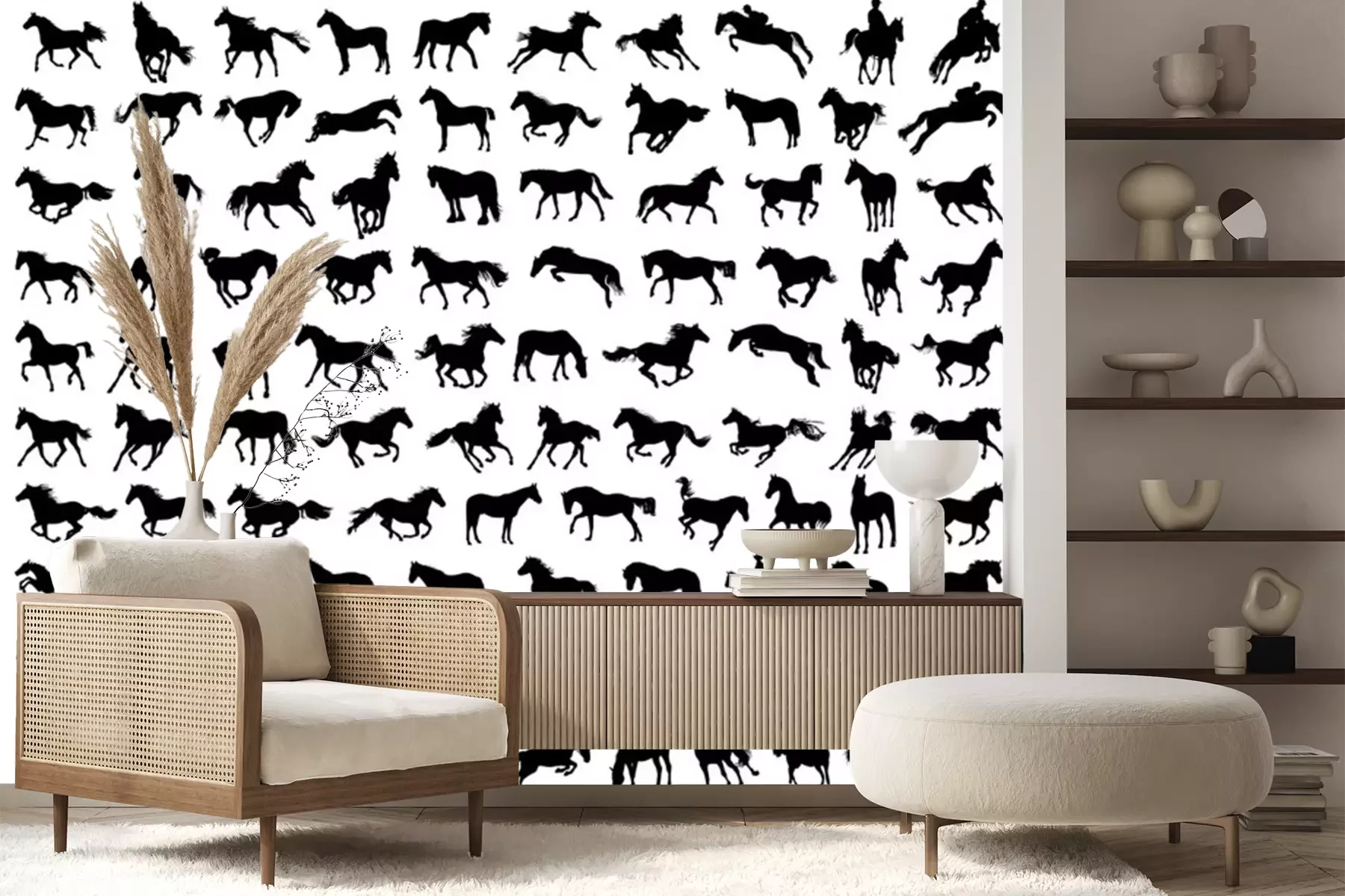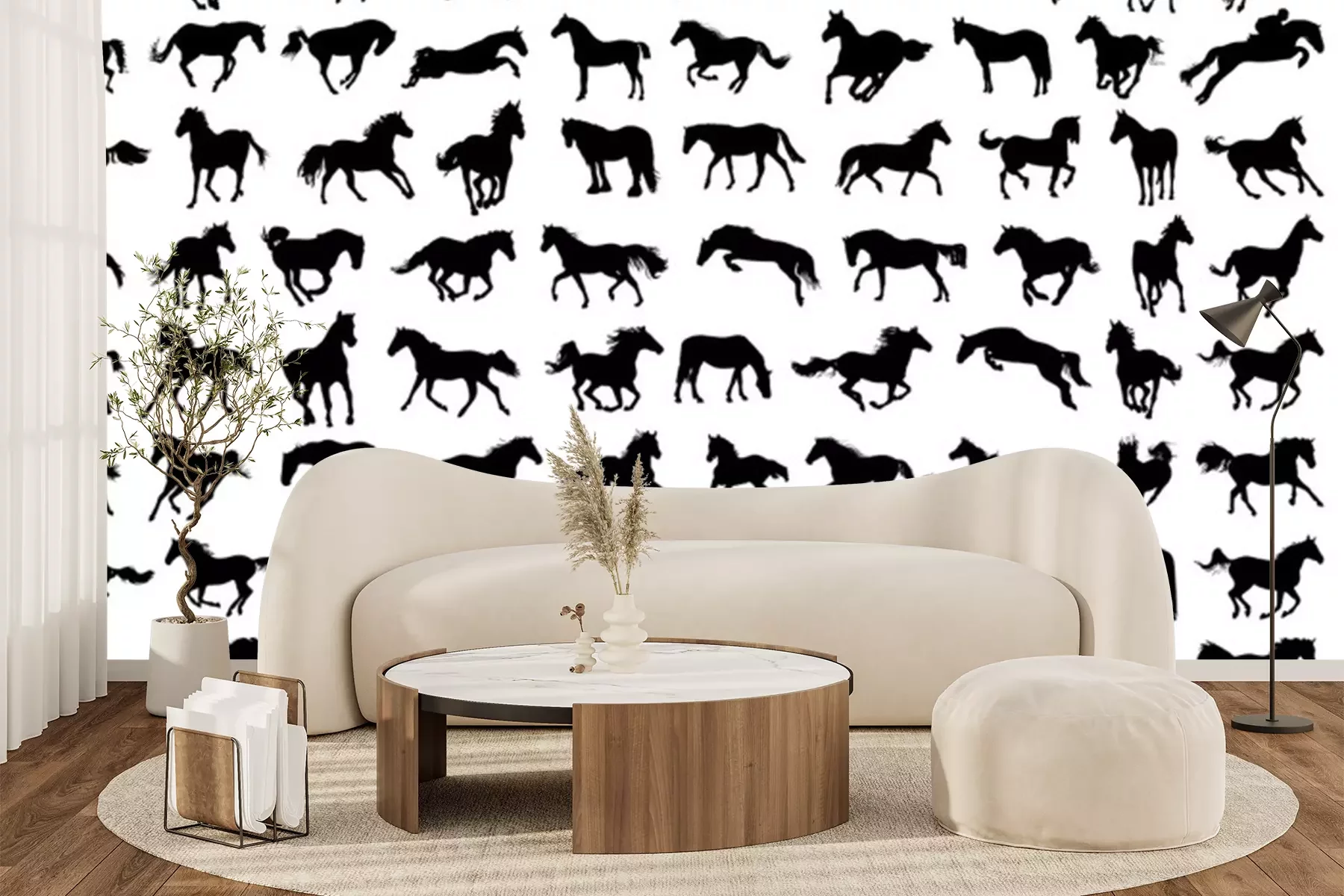 Sticker Silhouetten von Pferden in verschiedenen Stellungen Grafik
