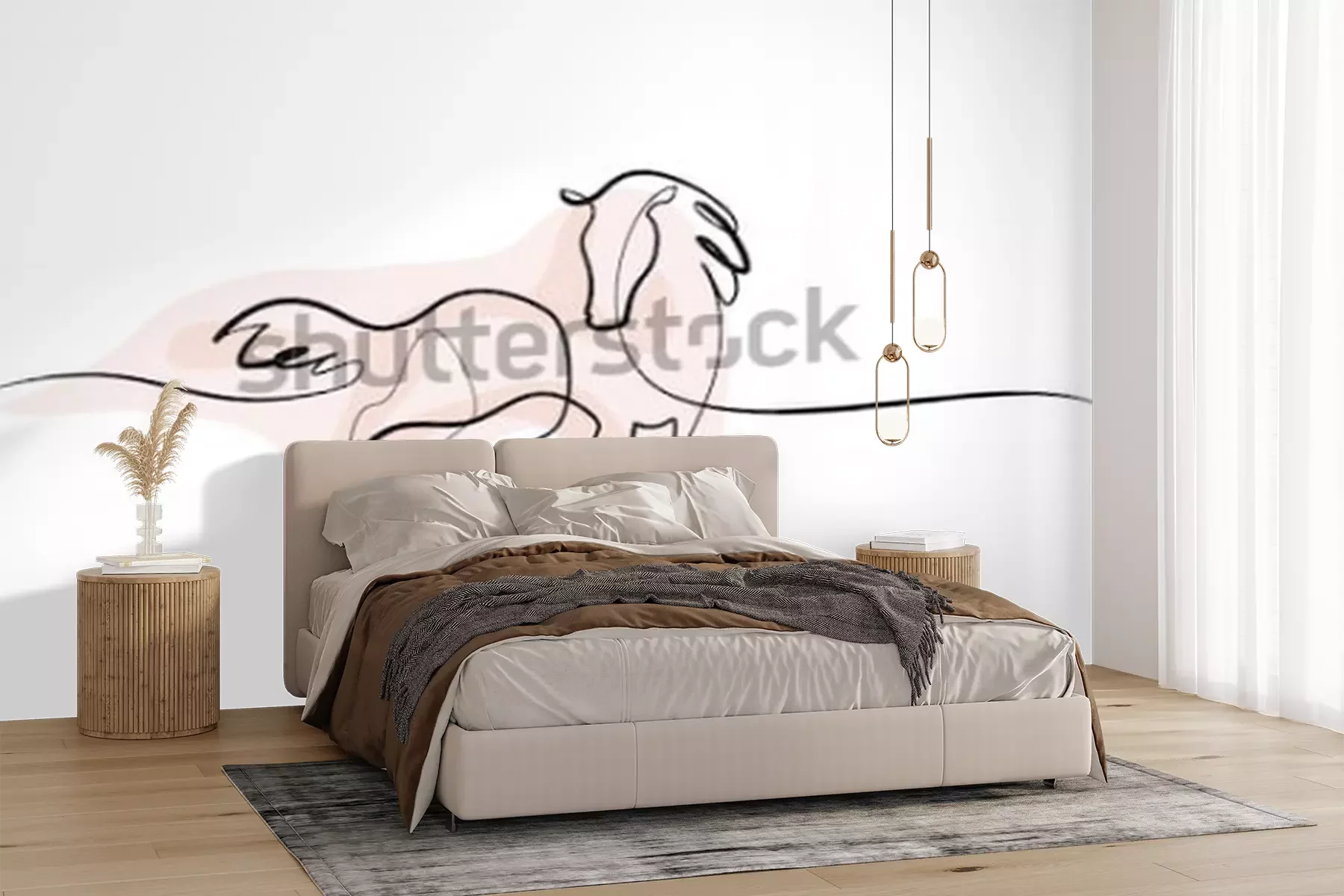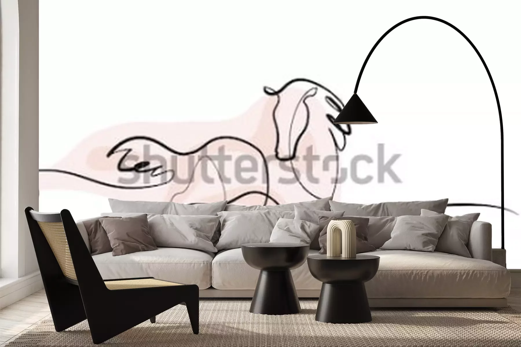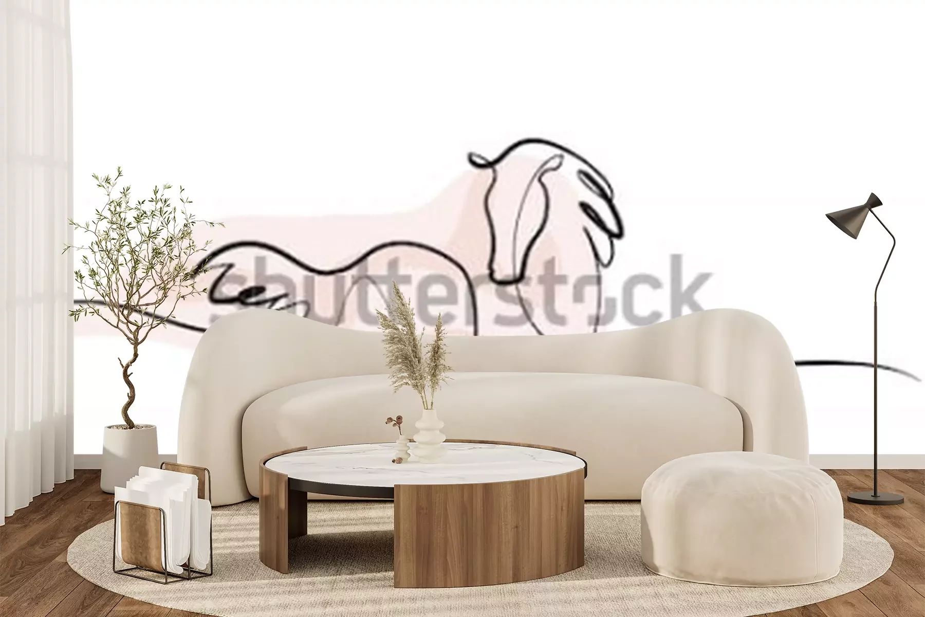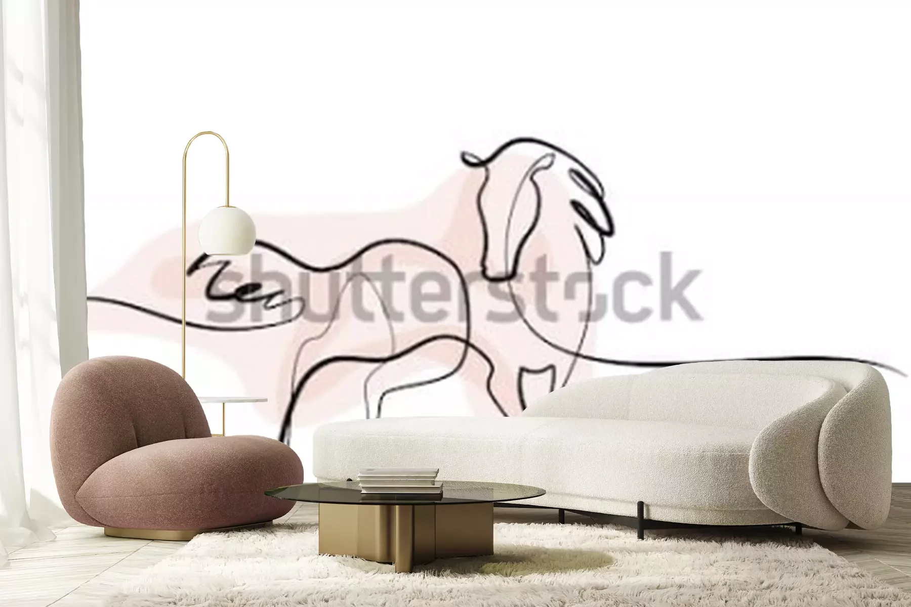 Sticker Silhouetten von Pferden Line Art und rosa Fleck als Hintergrund