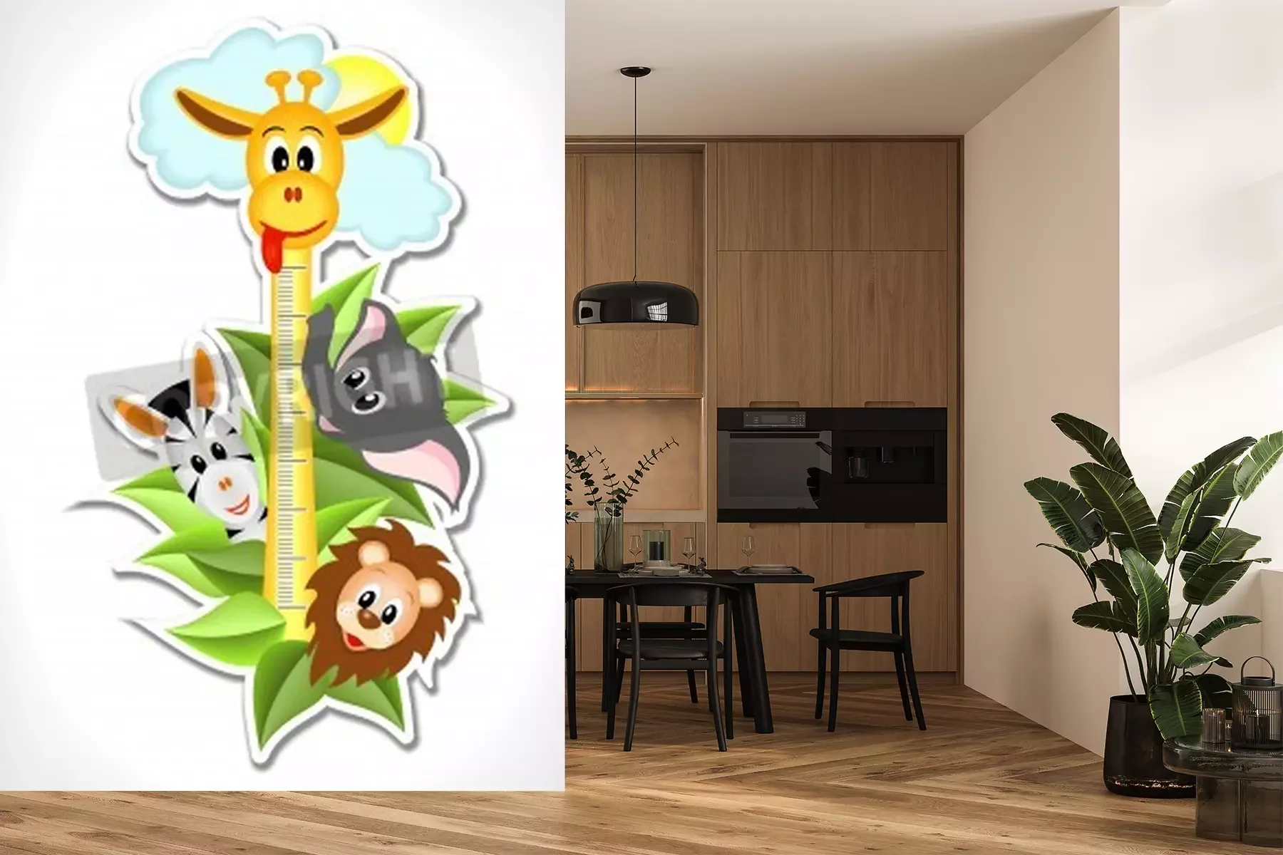 Sticker Skala für Kinder mit vier afrikanischen Tiere - Zebras, Giraffen, Löwen und Elefanten - kid Vektor-Illustration