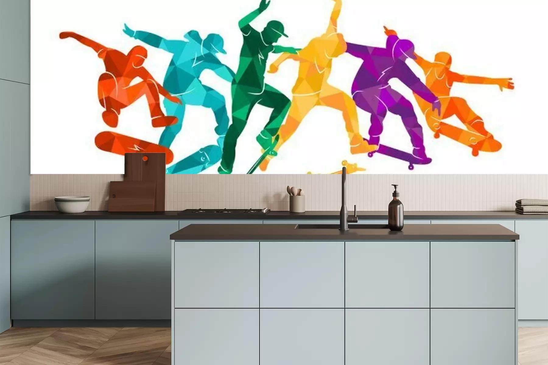 Sticker Skate people silhouettes skateboarders colorful vector illustration background extreme