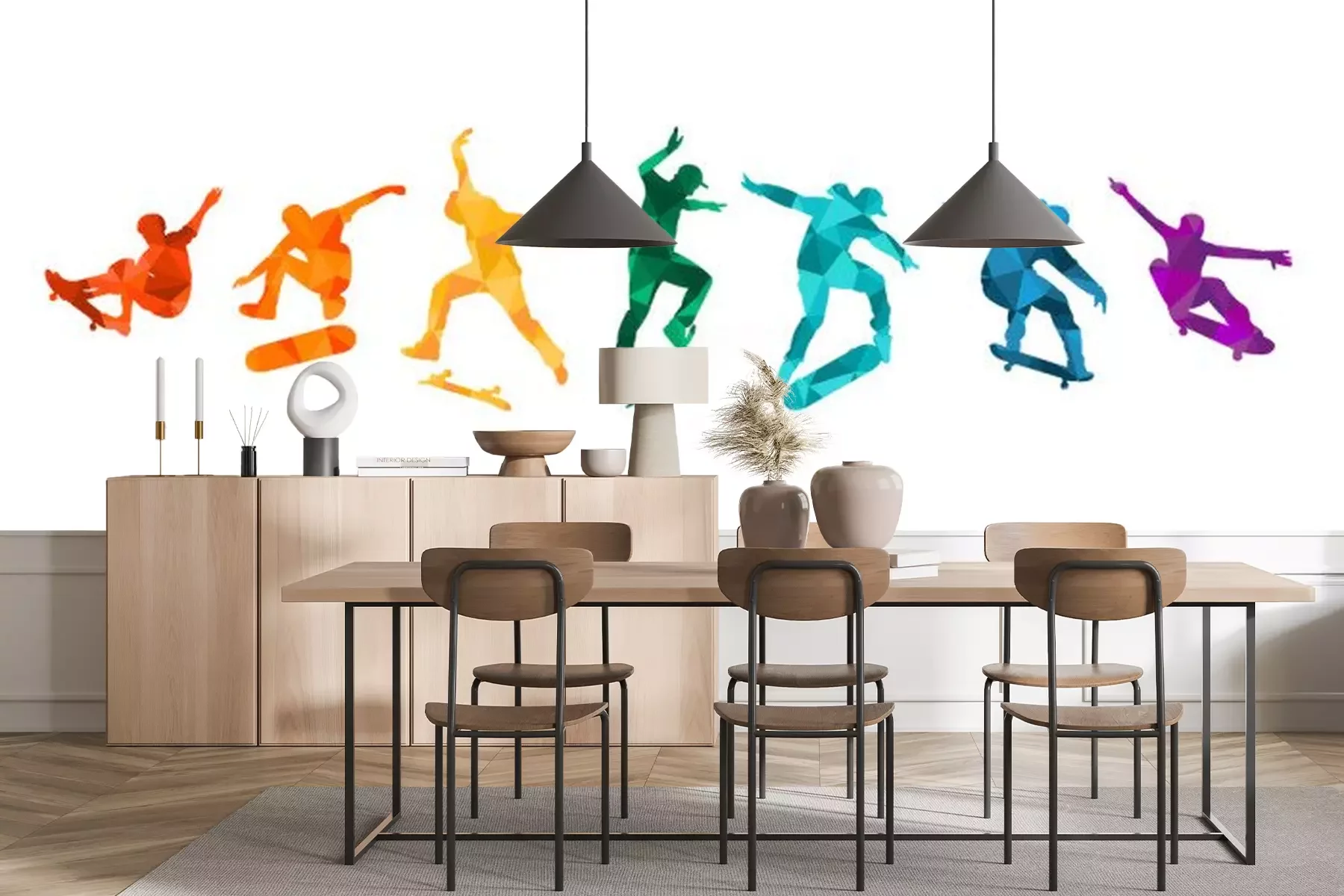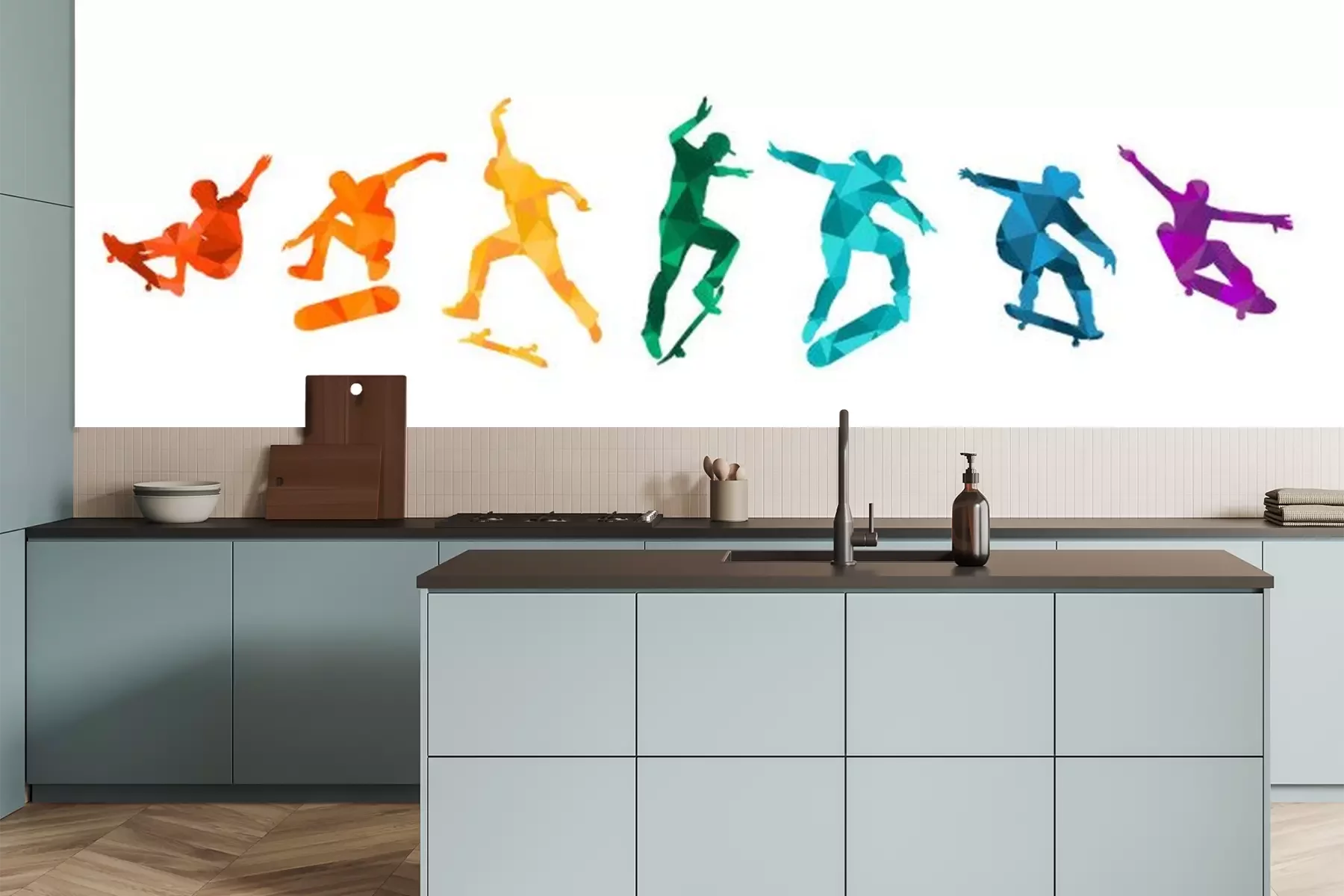 Sticker Skate people silhouettes skateboarders colorful vector illustration background extreme skateboard, skateboarding